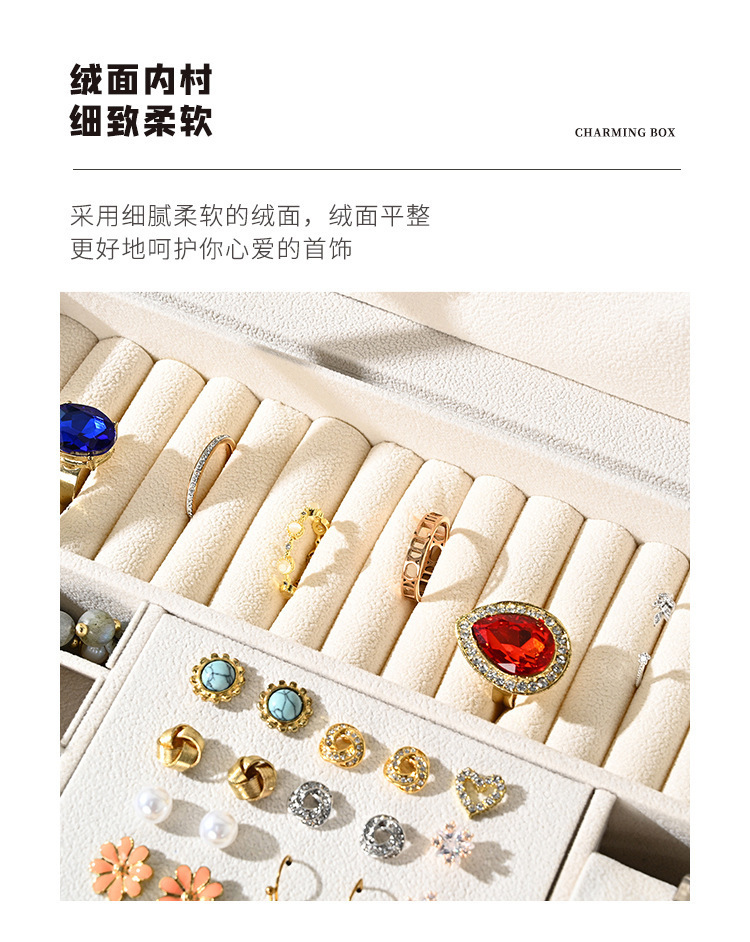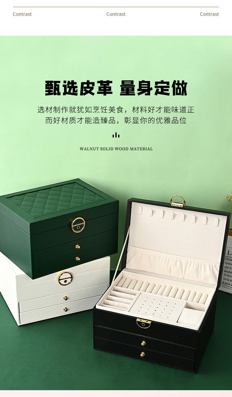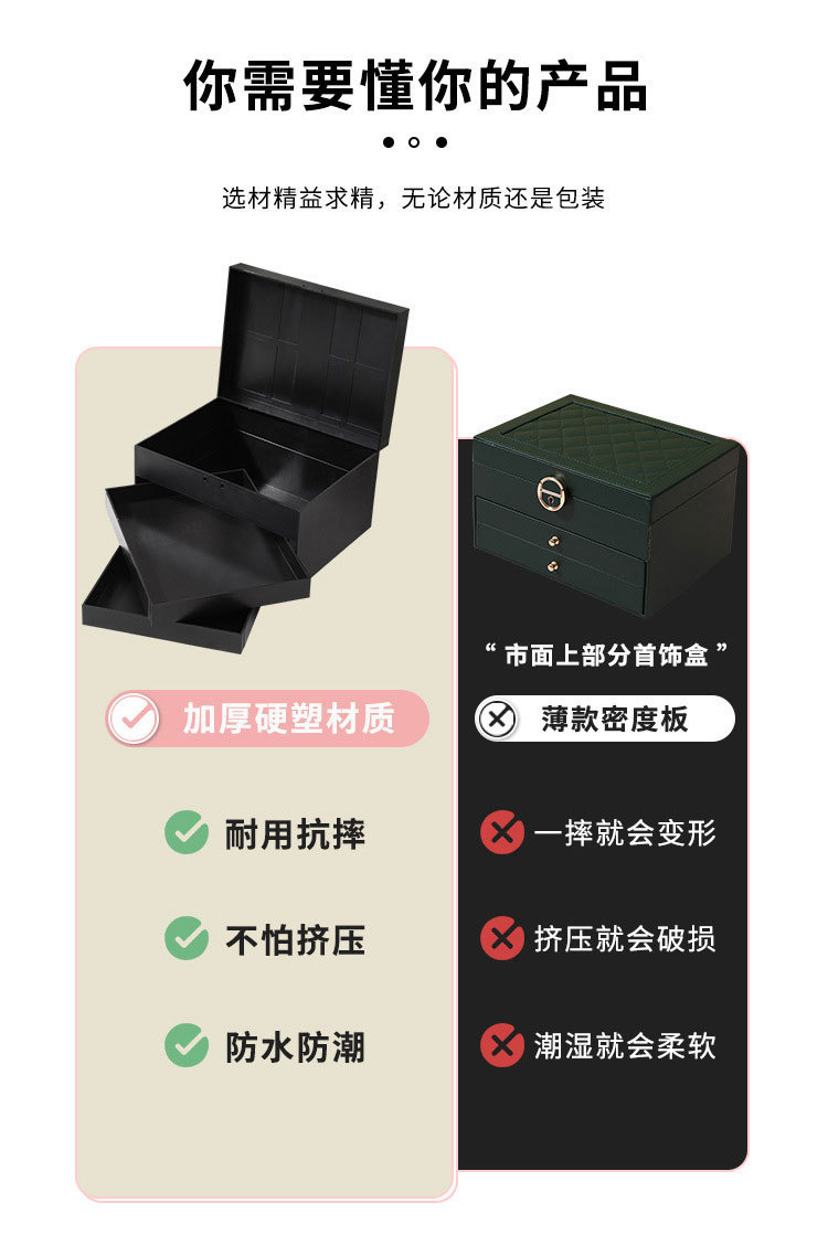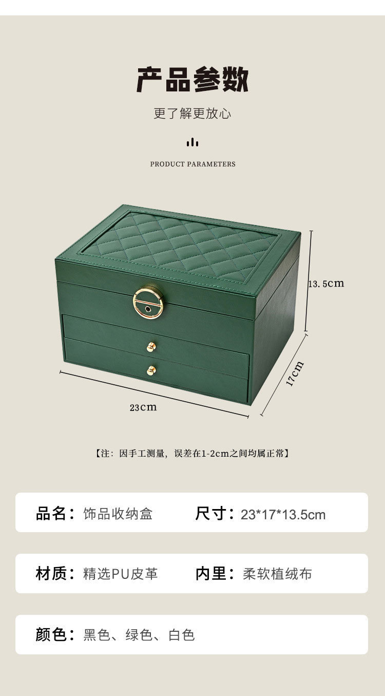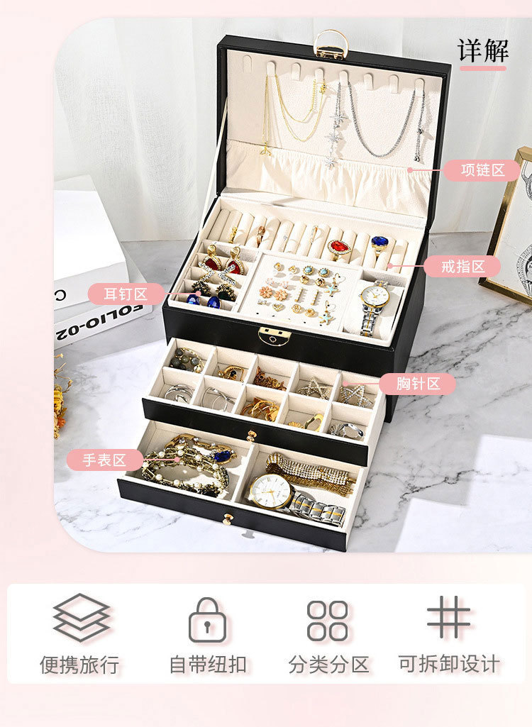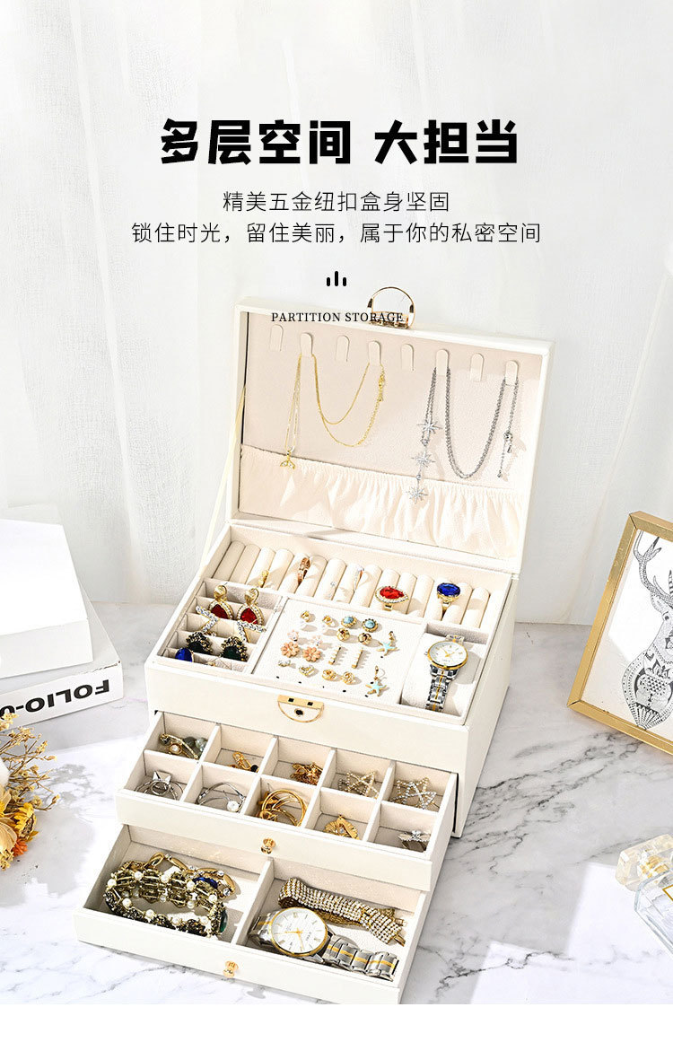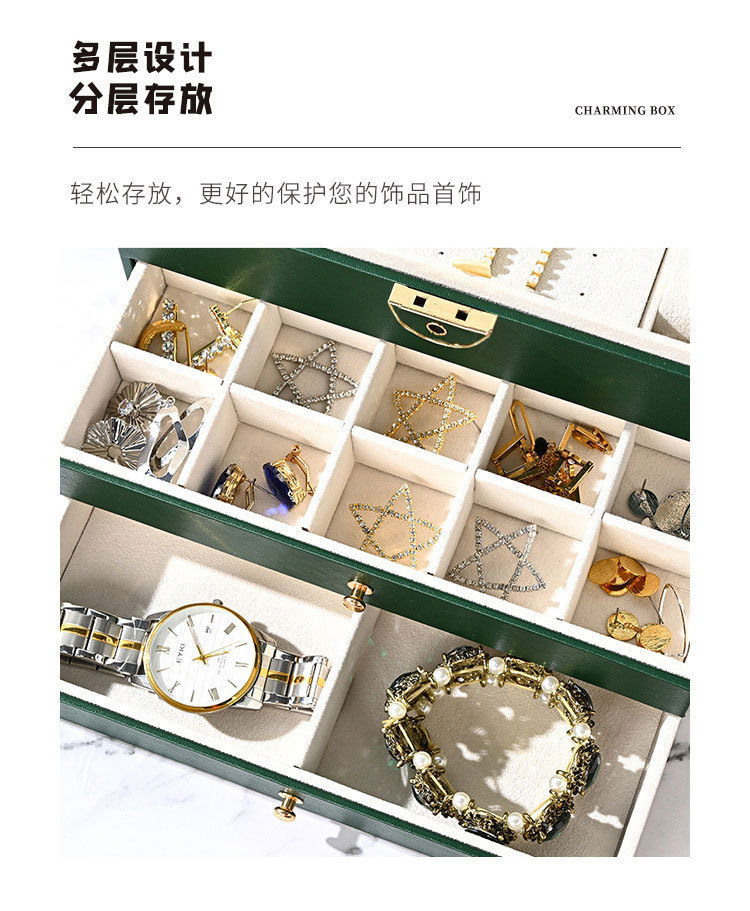 菱格款三层大容量首饰抽屉式收纳盒珠宝耳环项链手镯手表耳钉首饰