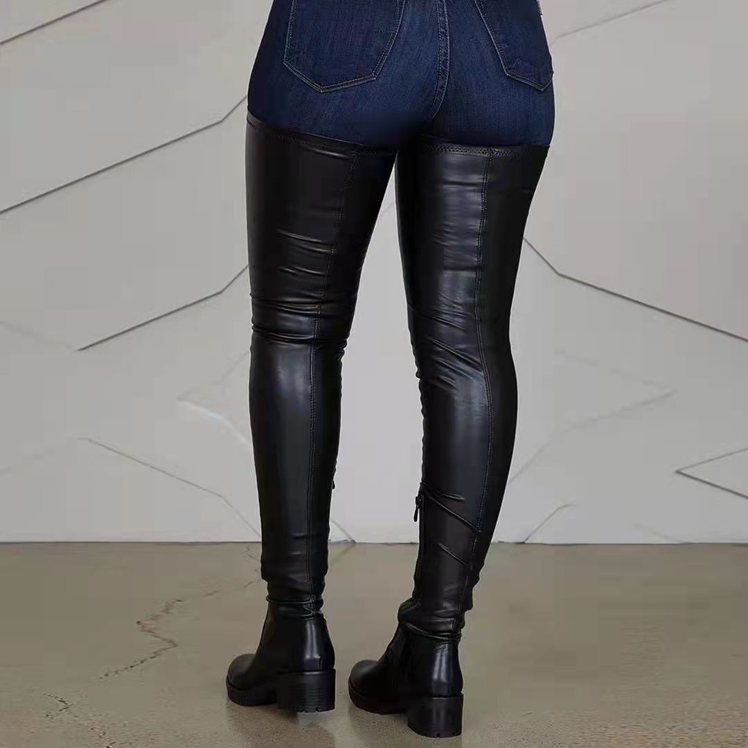 跨境春秋2023新款过膝靴女欧美圆头时装靴外贸大码粗跟长筒骑士靴