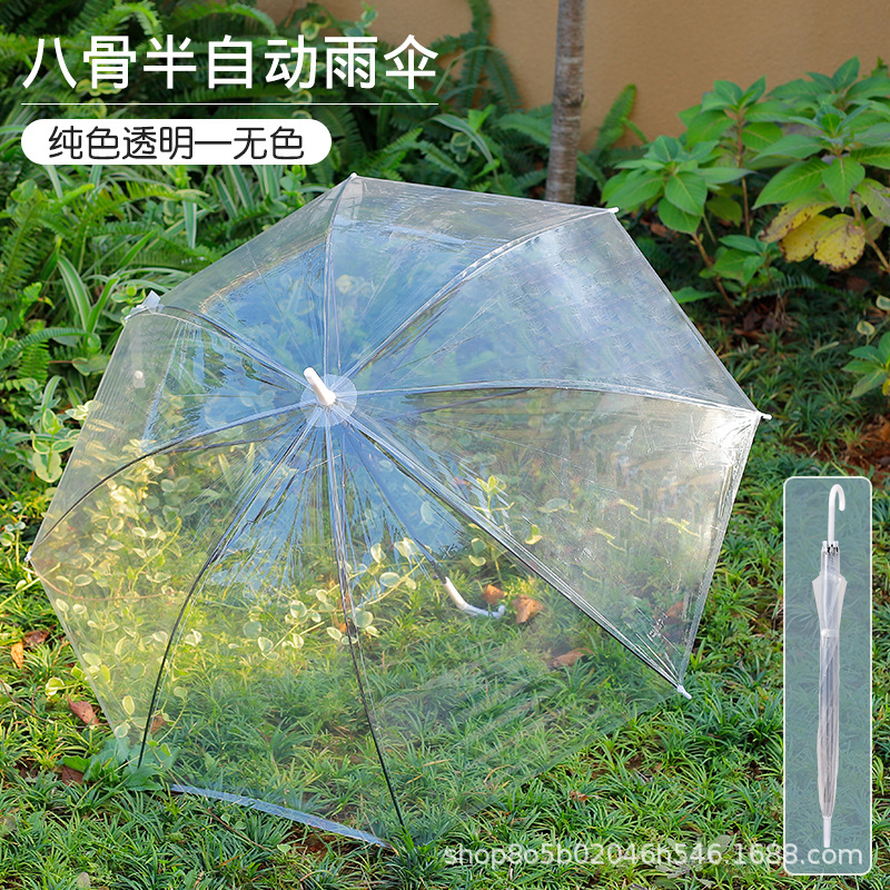 透明伞磨砂环保伞网红学生儿童透明伞直柄小清新雨伞广告伞印logo