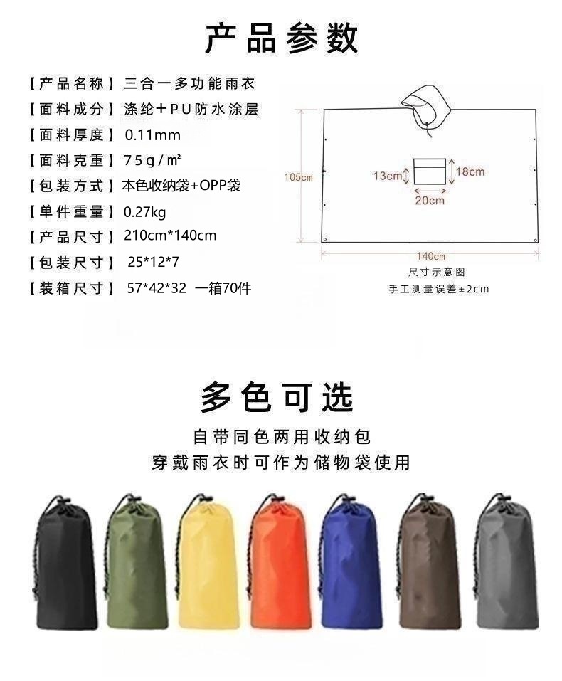 天幕多功能三合一户外雨披外贸款登山徙步斗篷雨衣地布骑行成人款