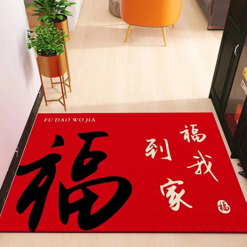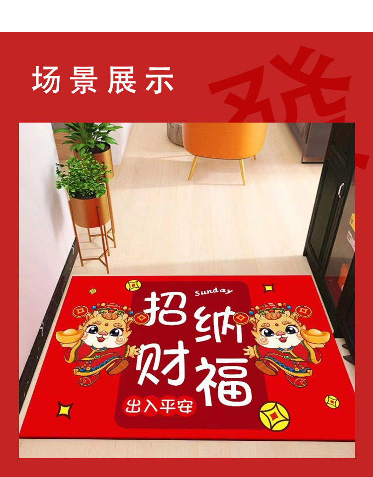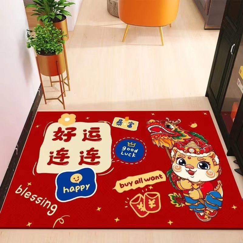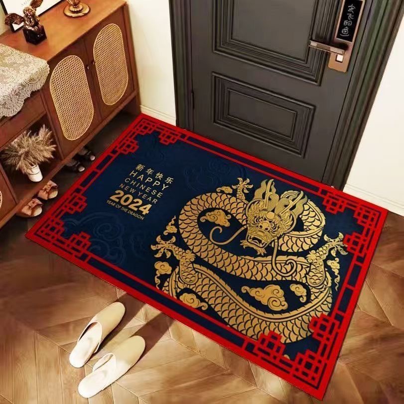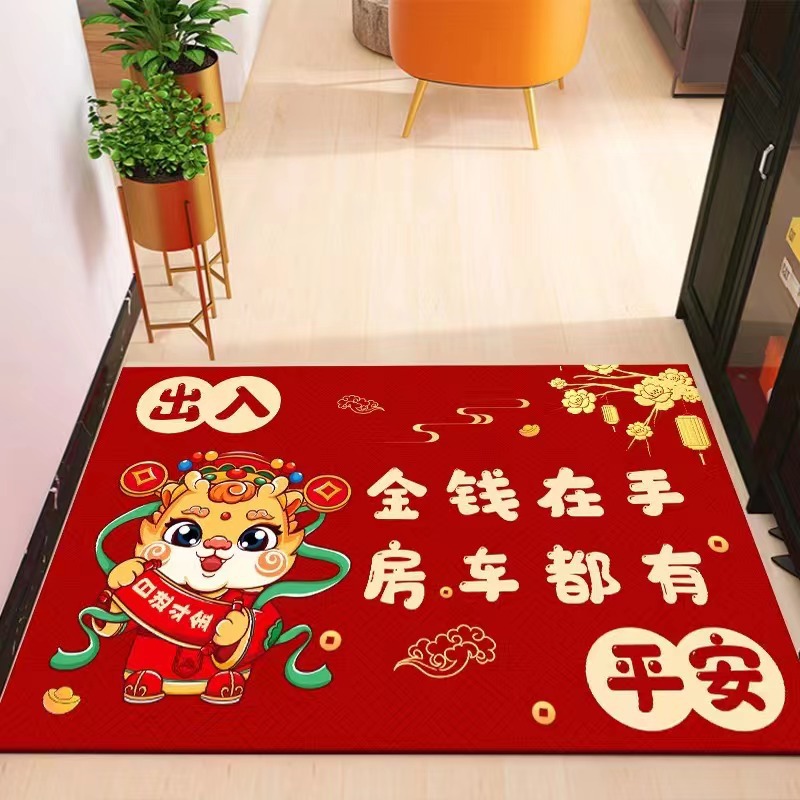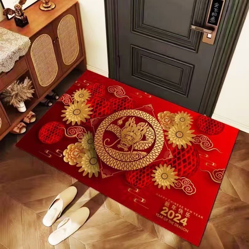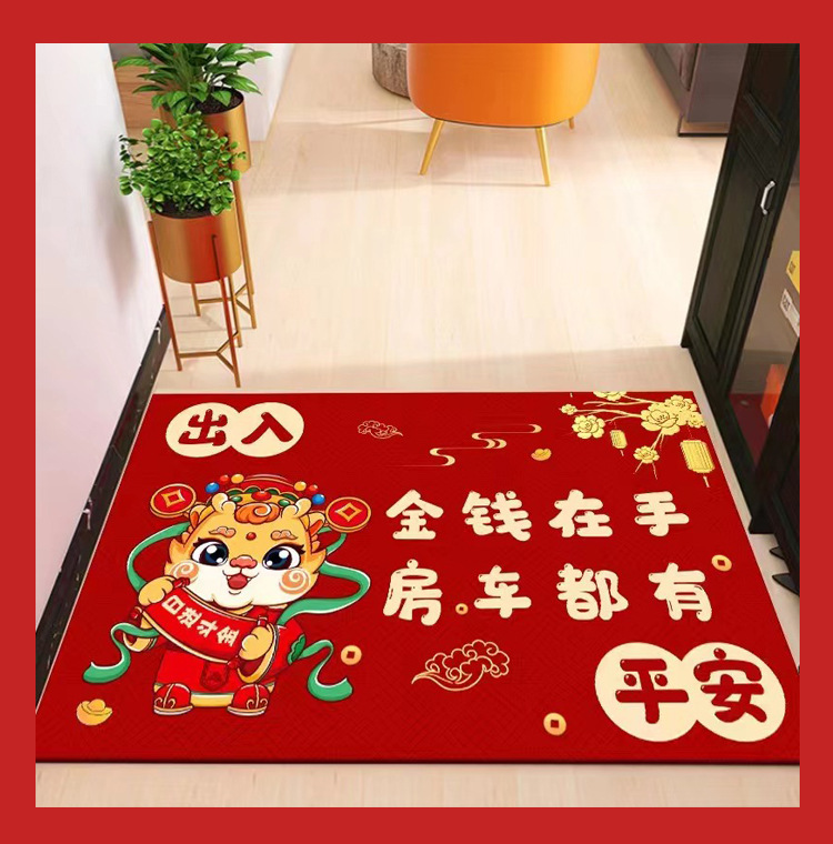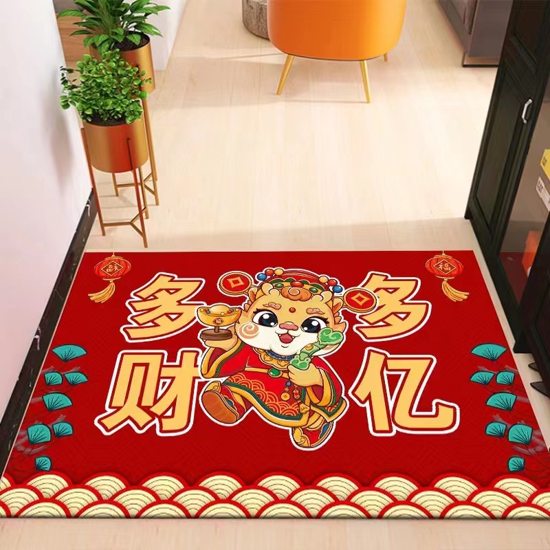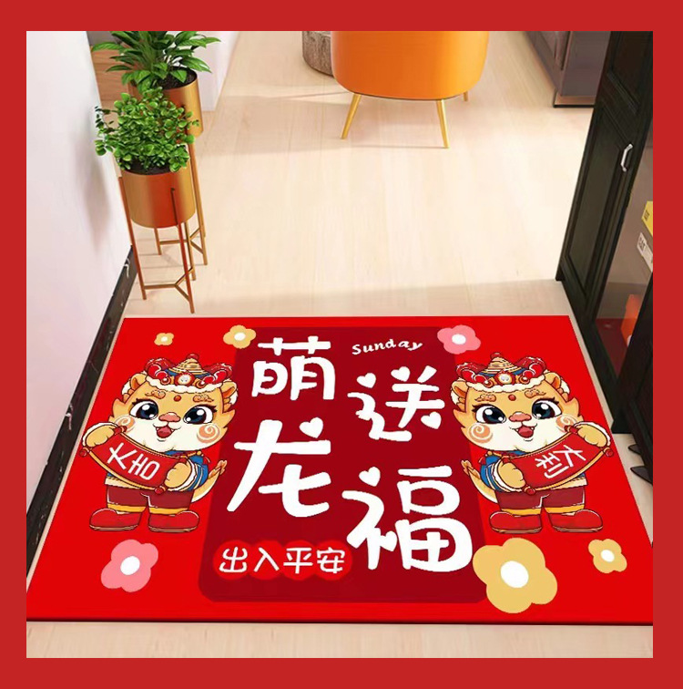 龙年入户门垫卡通喜庆进门脚垫新年装饰垫子2024年水晶绒地垫批发