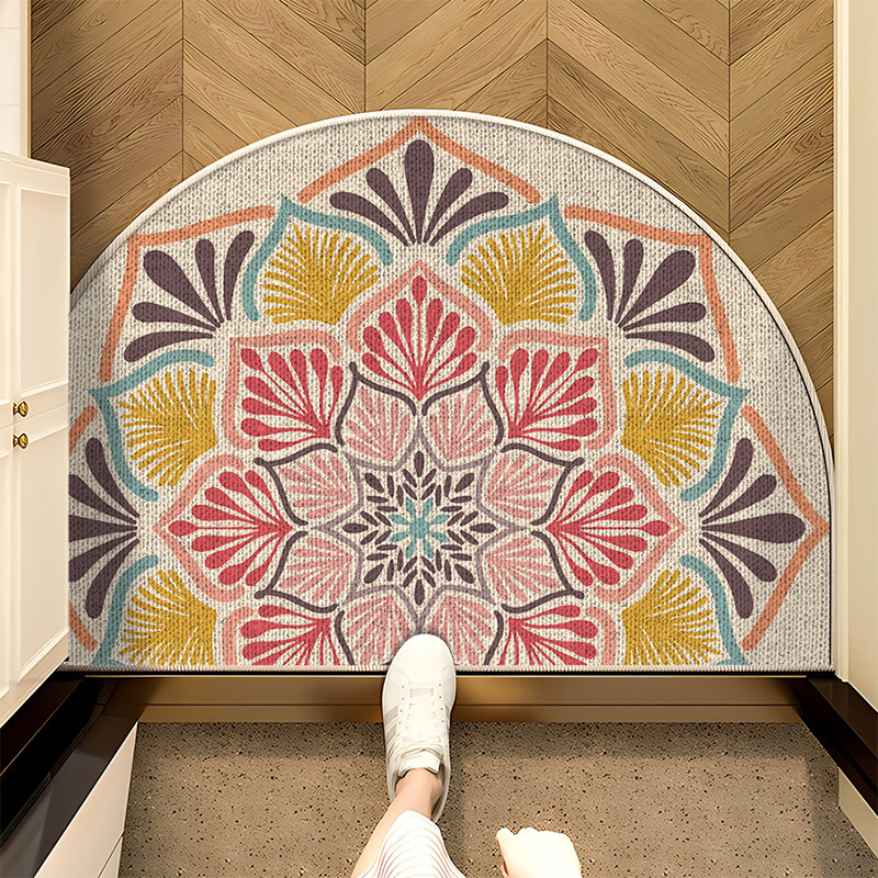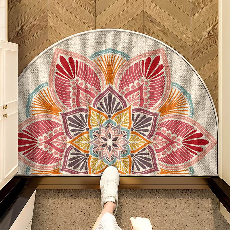 中式半圆地垫进门亚麻防滑垫客厅卧室吸水脚垫家用耐磨入户地垫