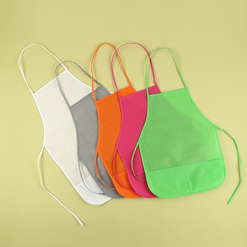 现货彩色一次性围裙无纺布儿童diy饭兜无袖防污宝宝围裙logo批发