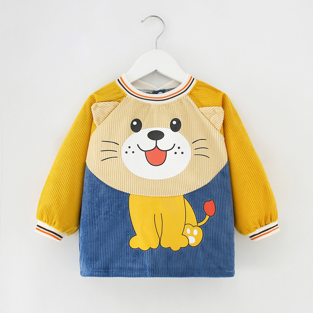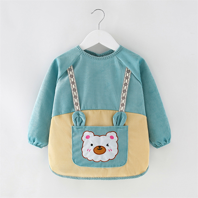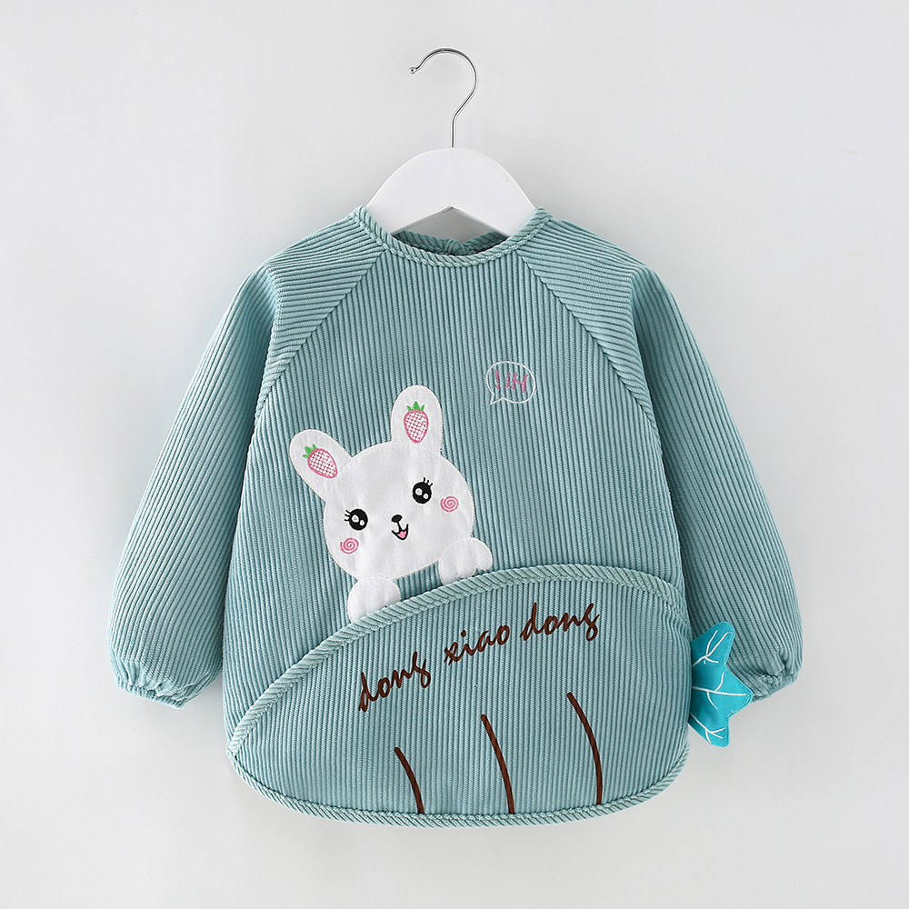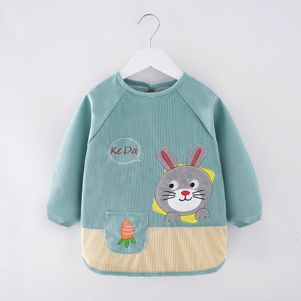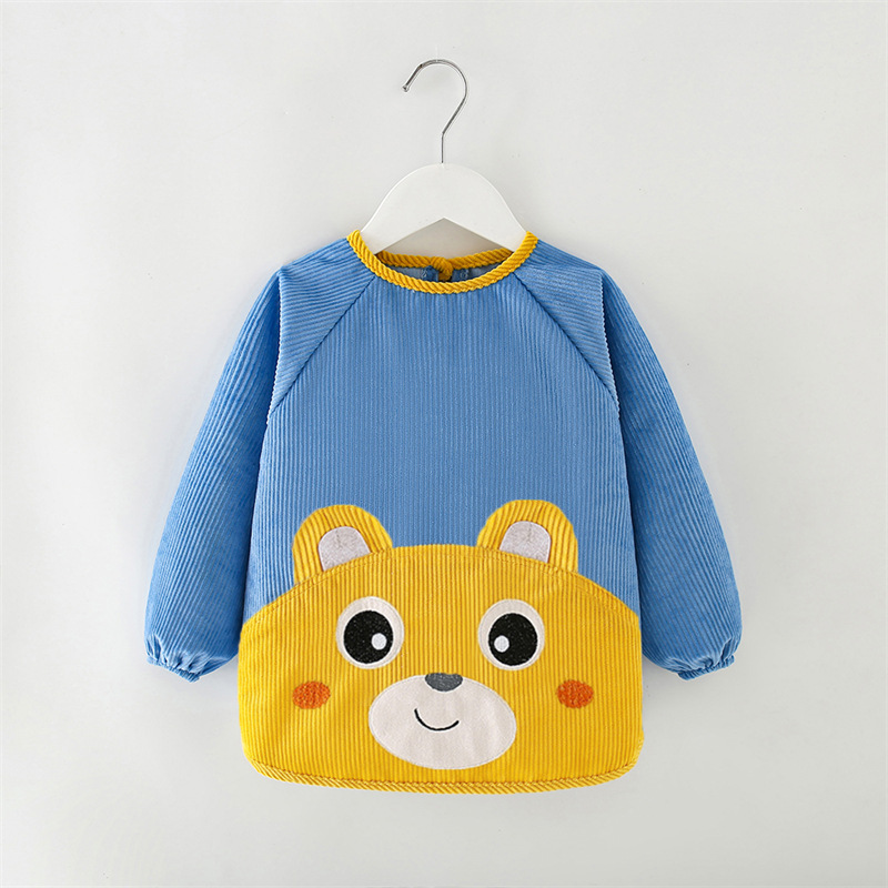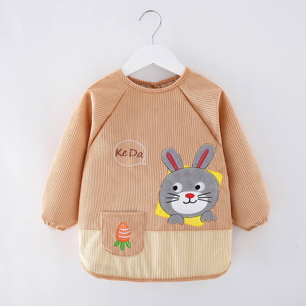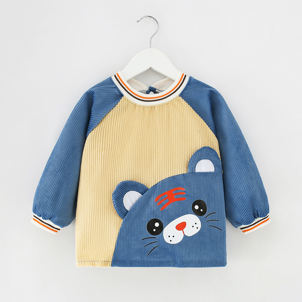 儿童罩衣秋冬长袖灯芯绒防水防脏外穿宝宝护衣婴儿围兜吃饭反穿衣