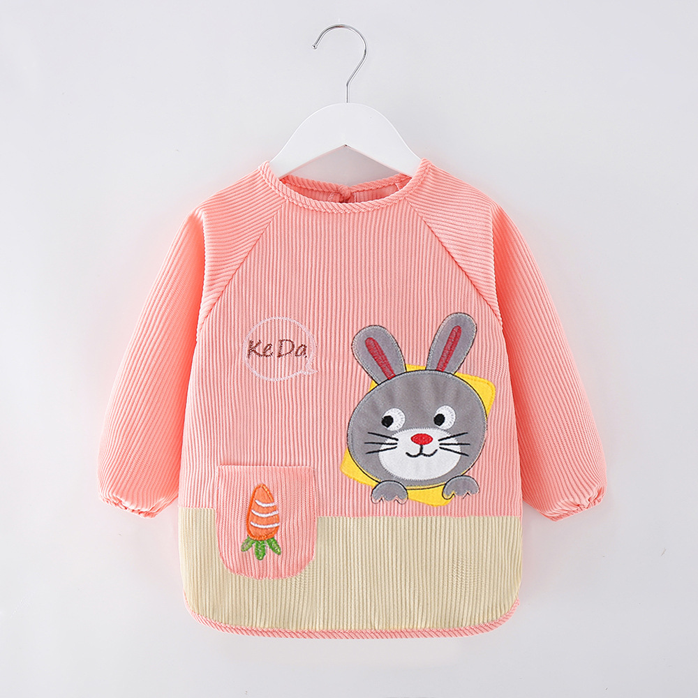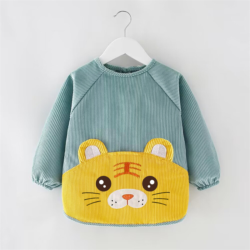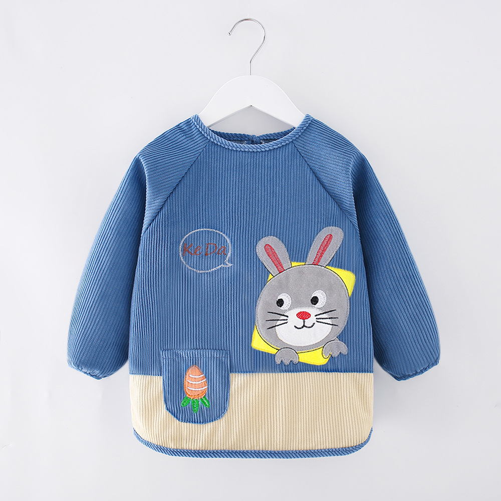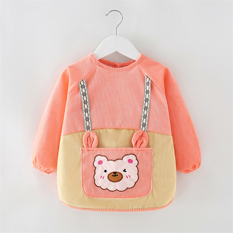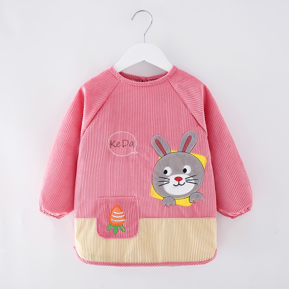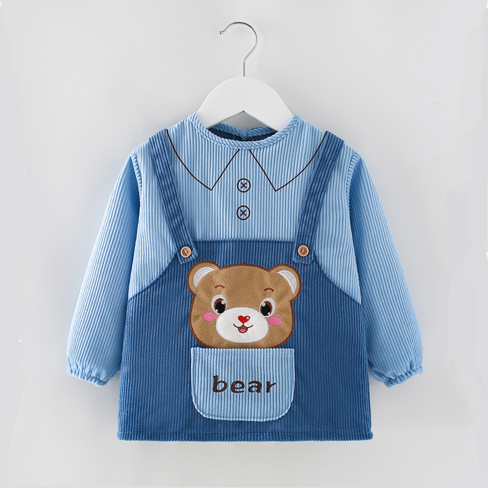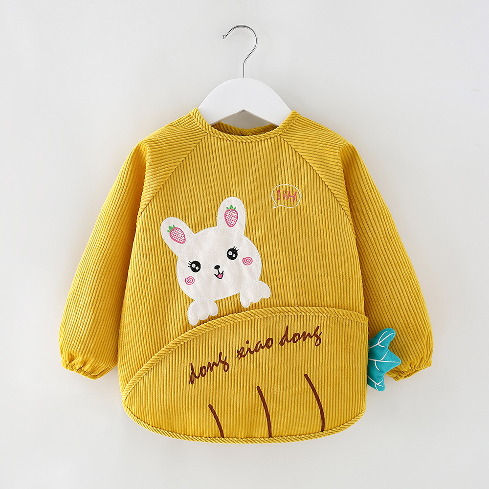 儿童罩衣秋冬长袖灯芯绒防水防脏外穿宝宝护衣婴儿围兜吃饭反穿衣
