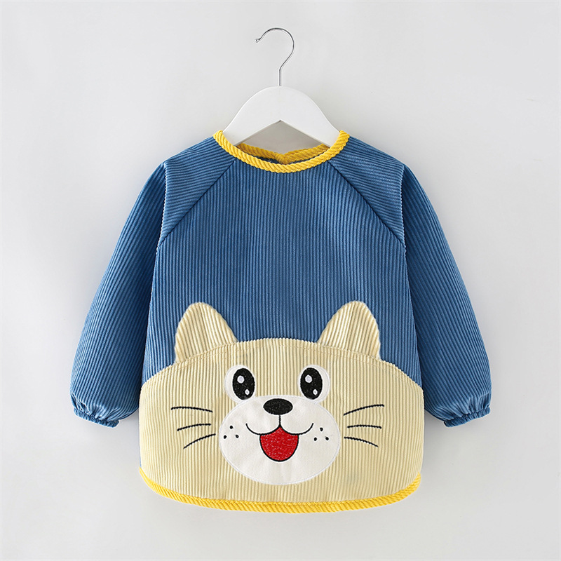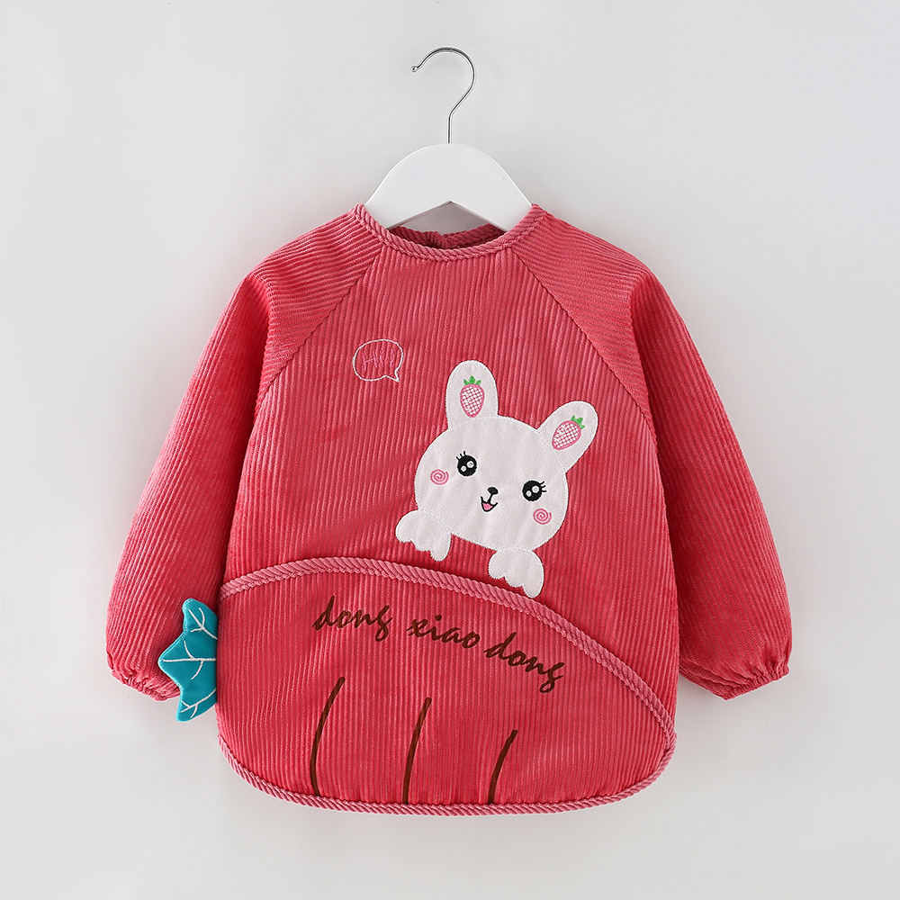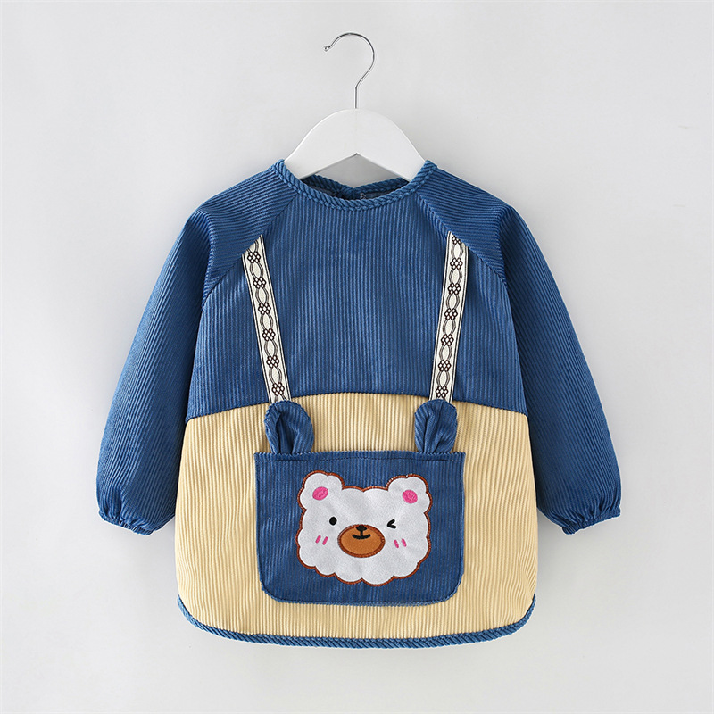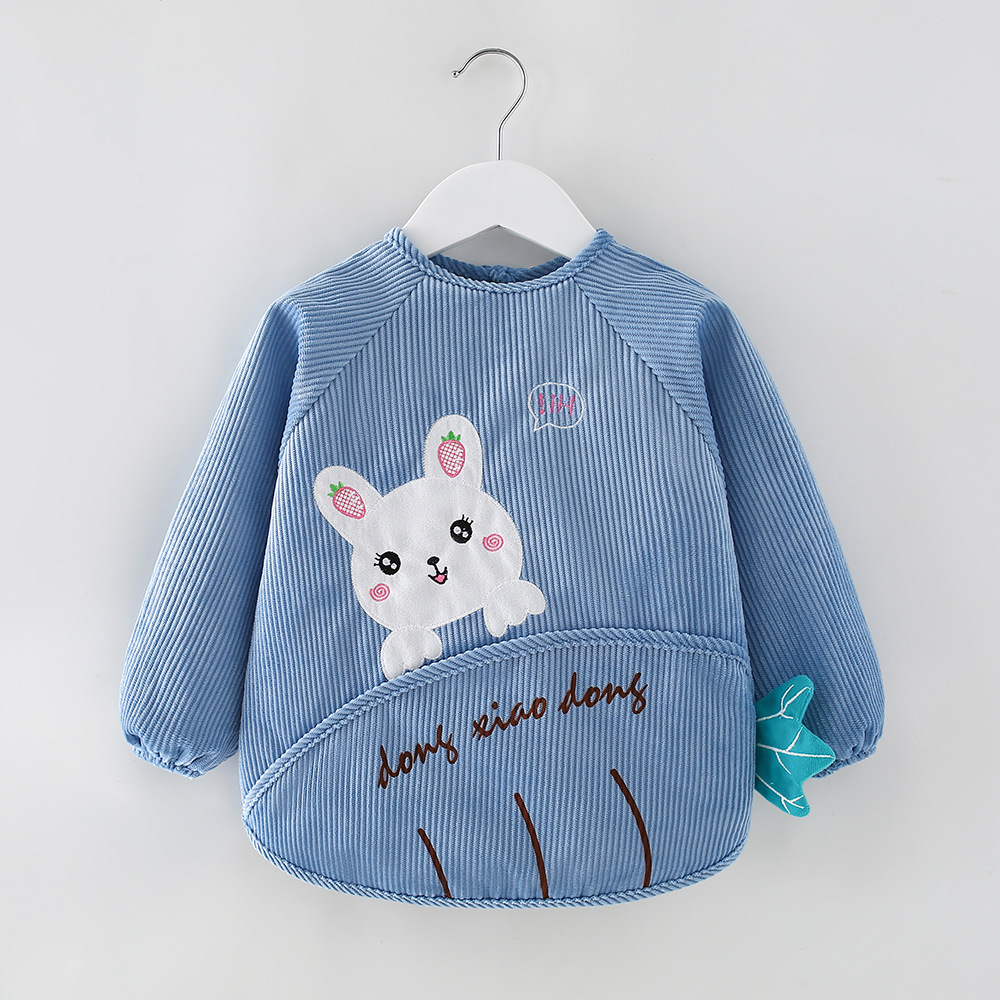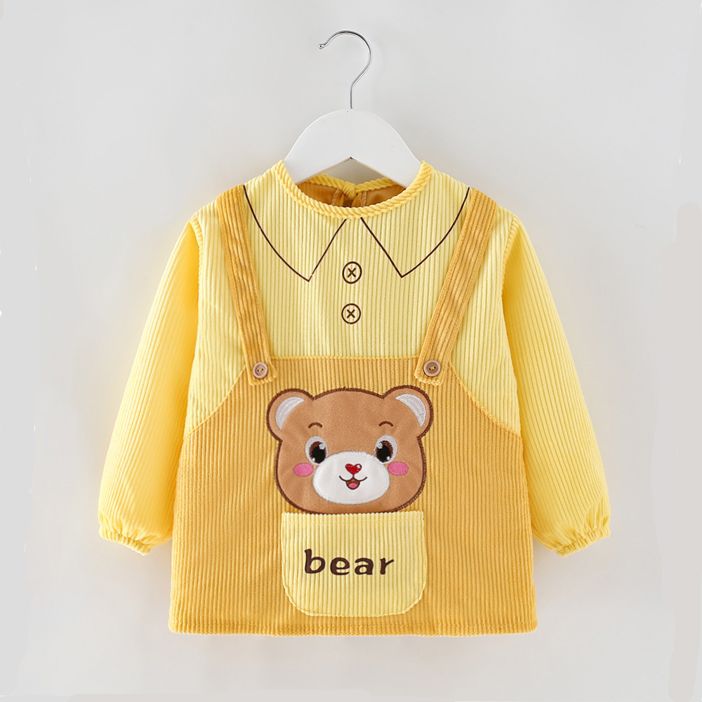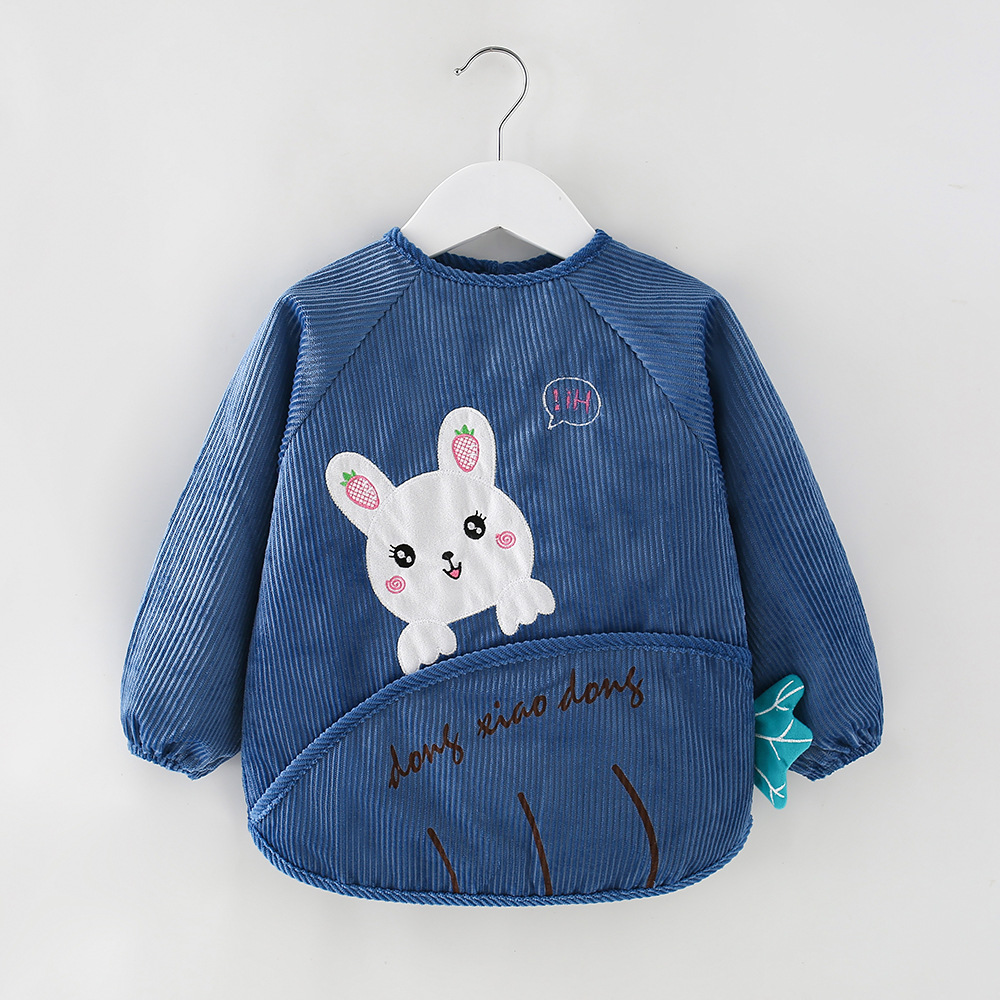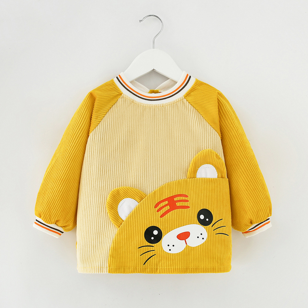 儿童罩衣秋冬长袖灯芯绒防水防脏外穿宝宝护衣婴儿围兜吃饭反穿衣
