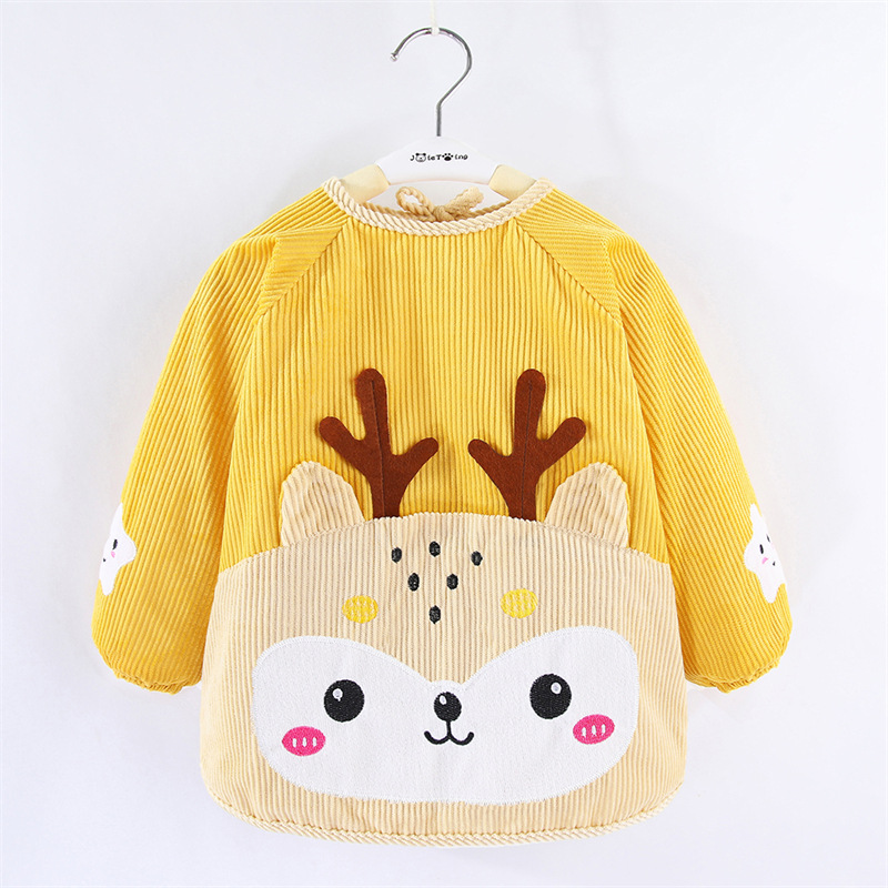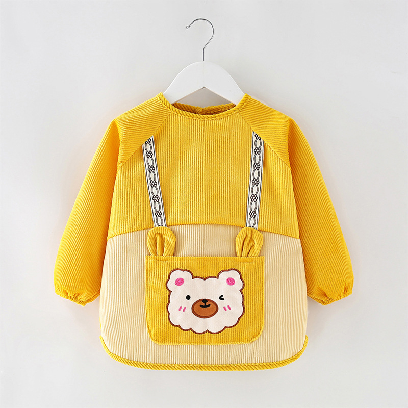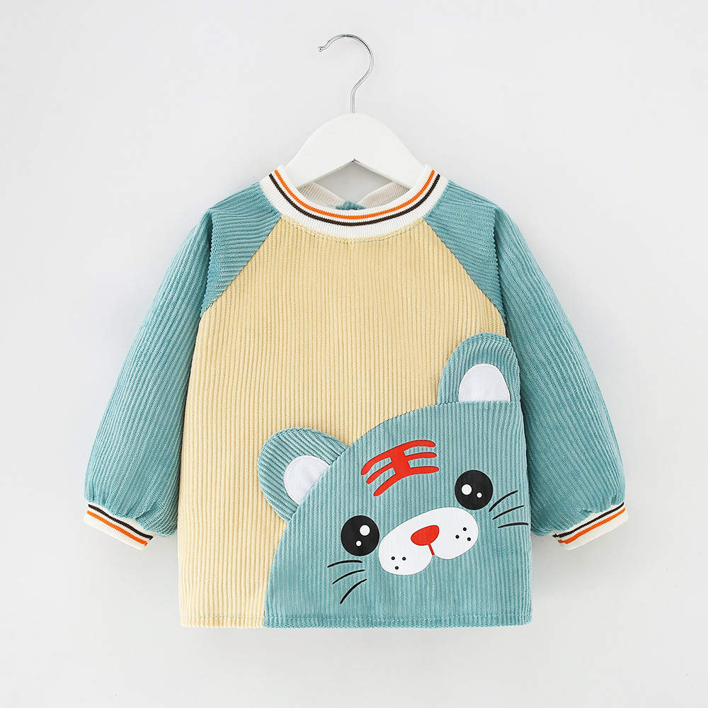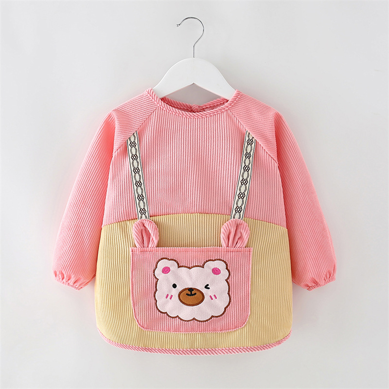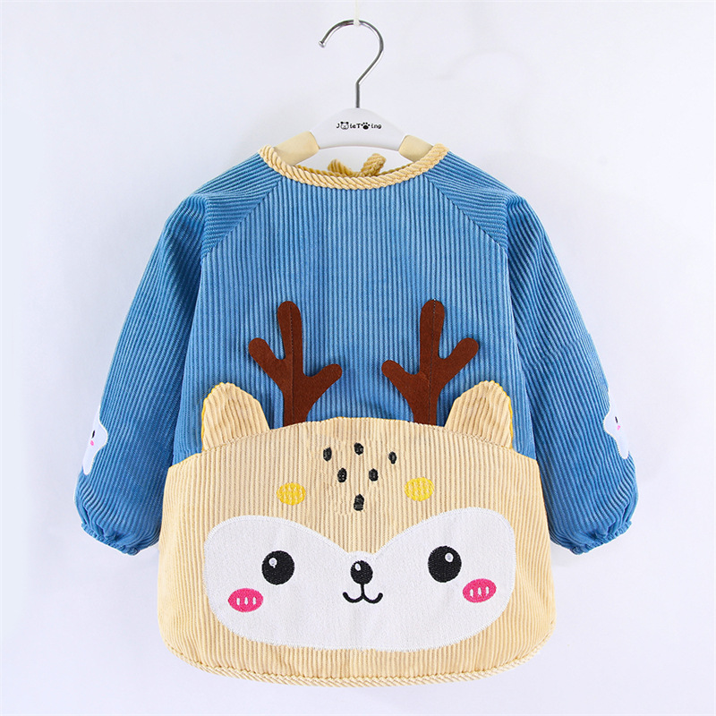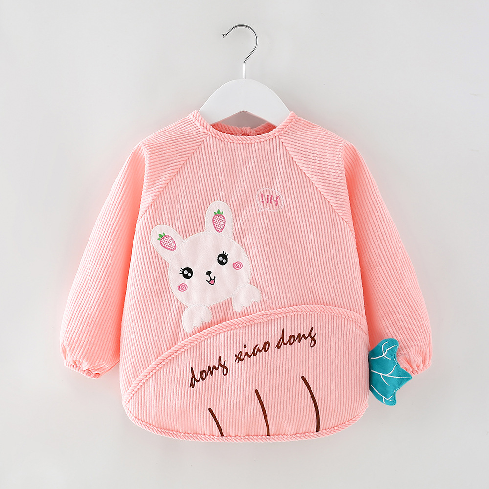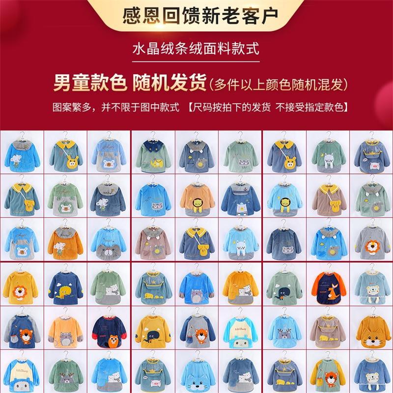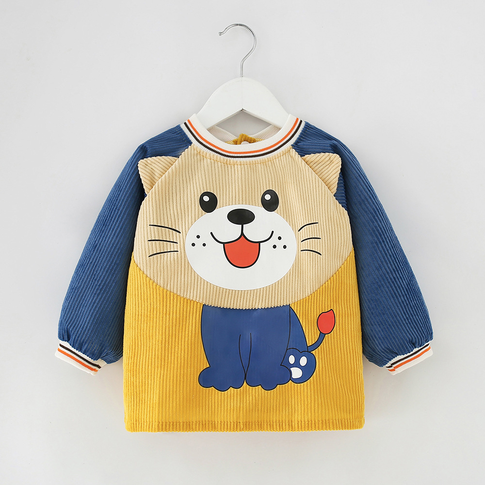 儿童罩衣秋冬长袖灯芯绒防水防脏外穿宝宝护衣婴儿围兜吃饭反穿衣