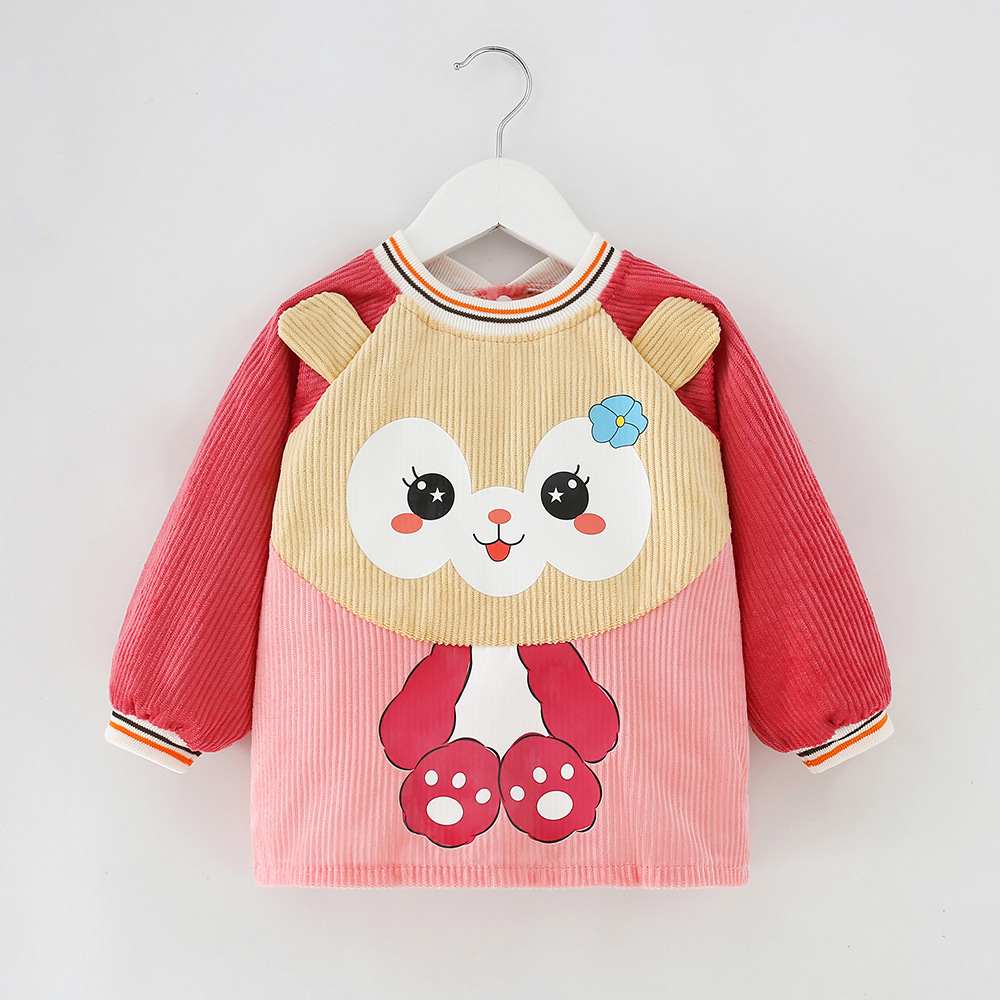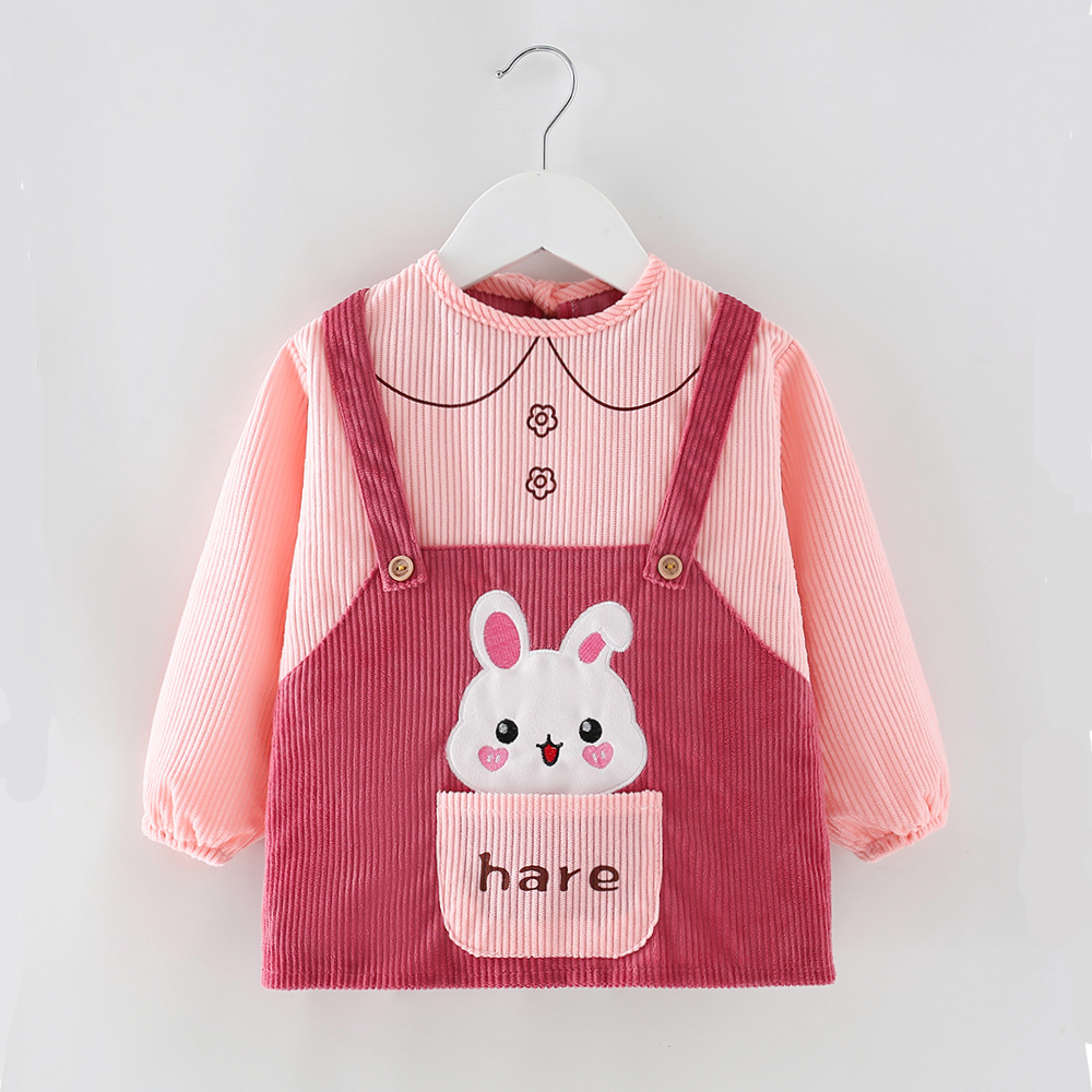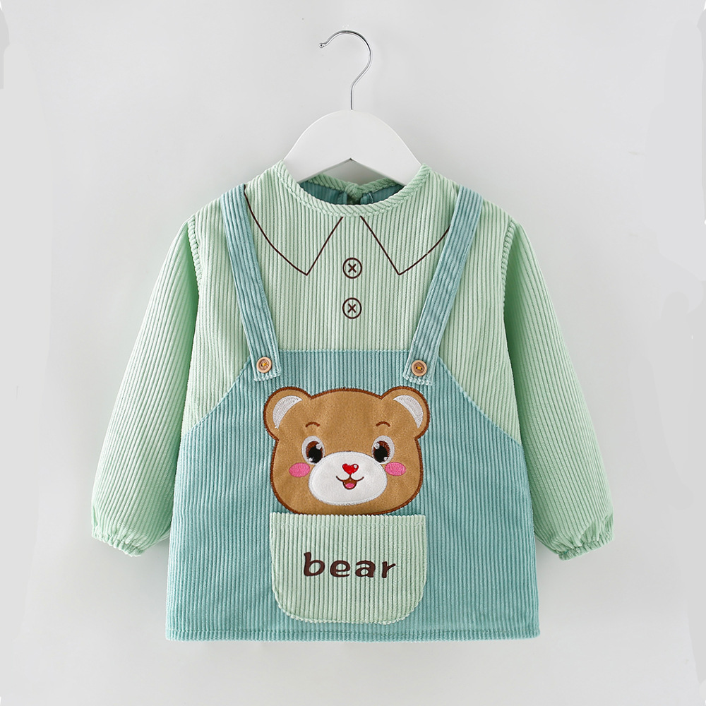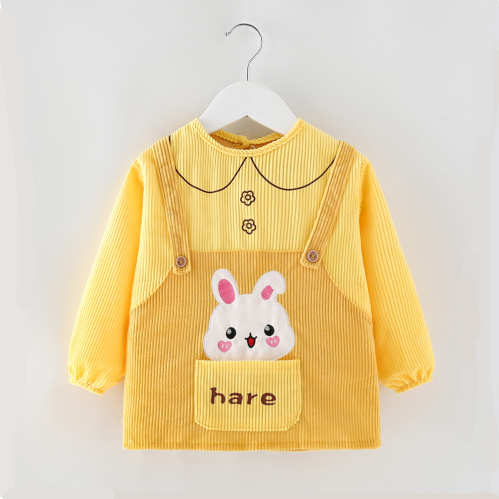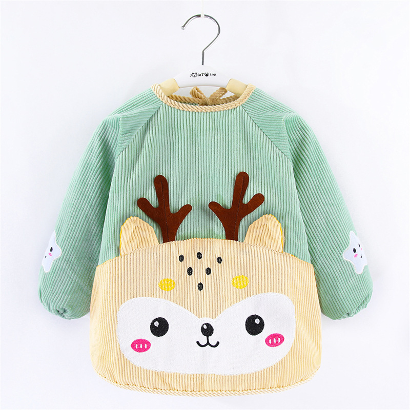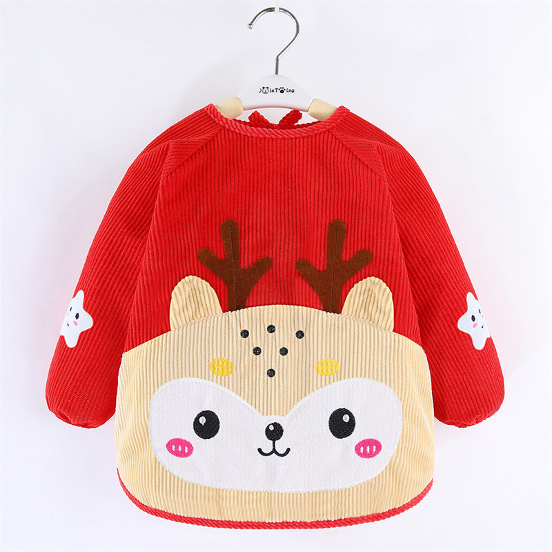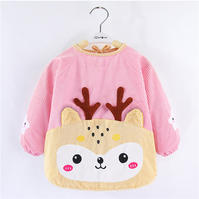 儿童罩衣秋冬长袖灯芯绒防水防脏外穿宝宝护衣婴儿围兜吃饭反穿衣