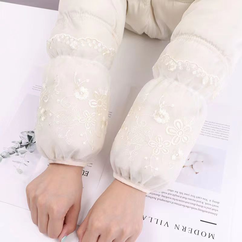 双层网纱蕾丝袖套女秋冬防脏套袖成人学生袖筒黑白米色透明护袖头