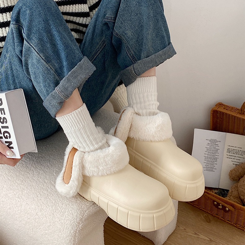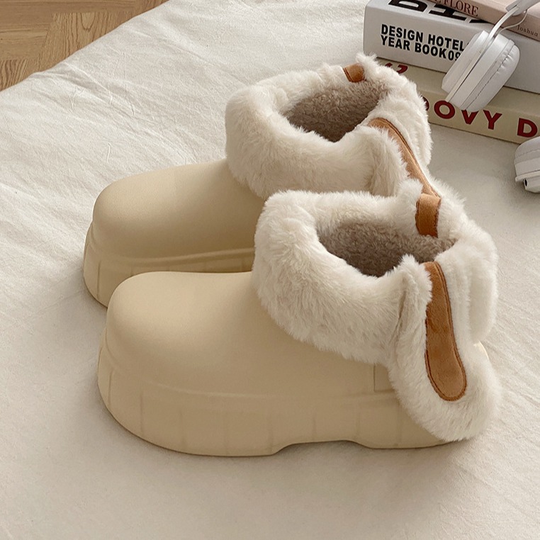 可爱东北防滑厚底雪地靴女款冬季2023新款一脚蹬保暖加绒加厚棉鞋