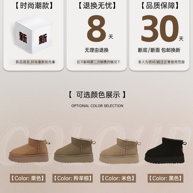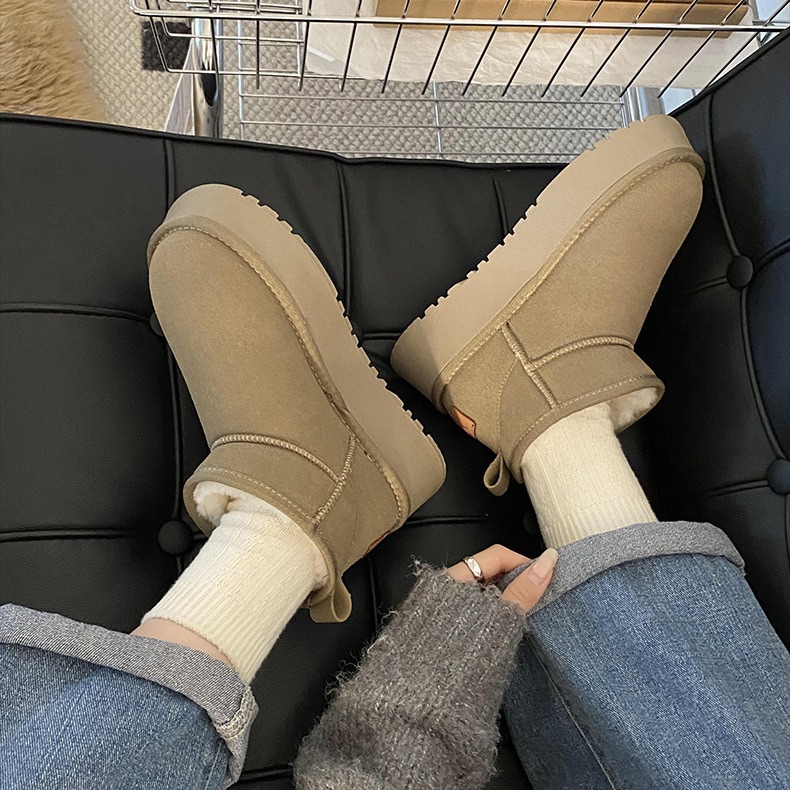 皮毛一体保暖厚底雪地靴女款冬季加绒加厚2023新款一脚蹬东北棉鞋