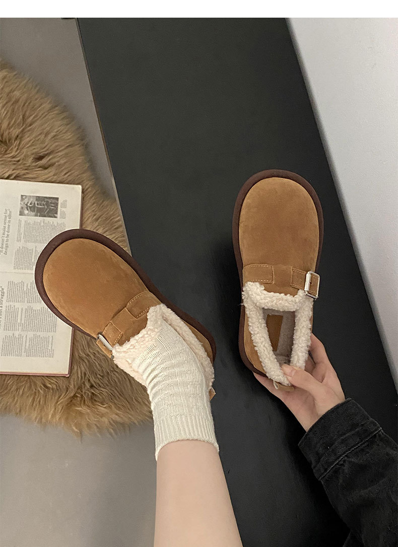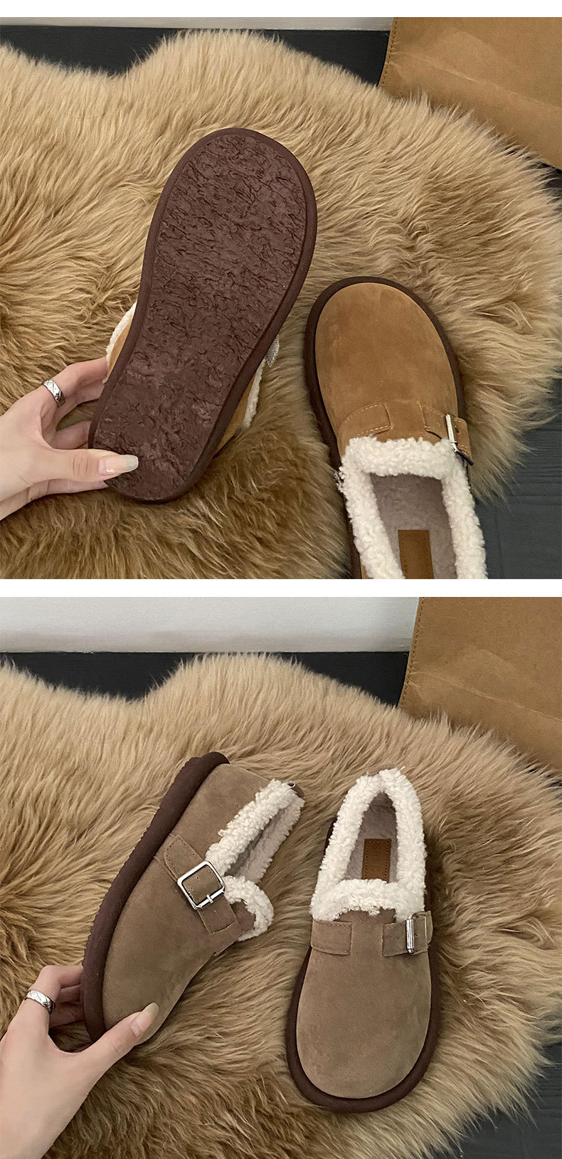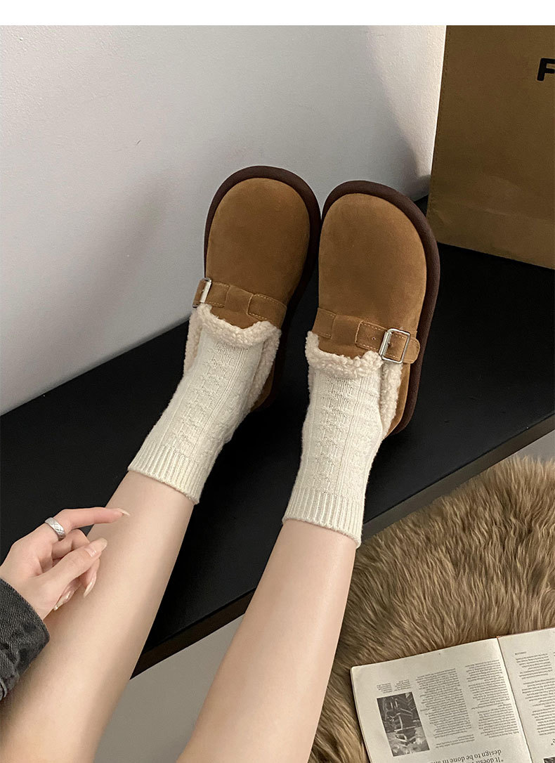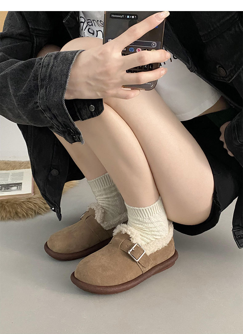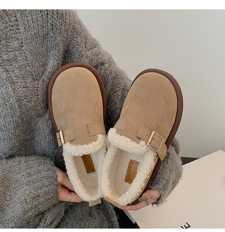 皮毛一体保暖厚底棉鞋女冬加绒加厚2023新款一脚蹬全包复古勃肯鞋