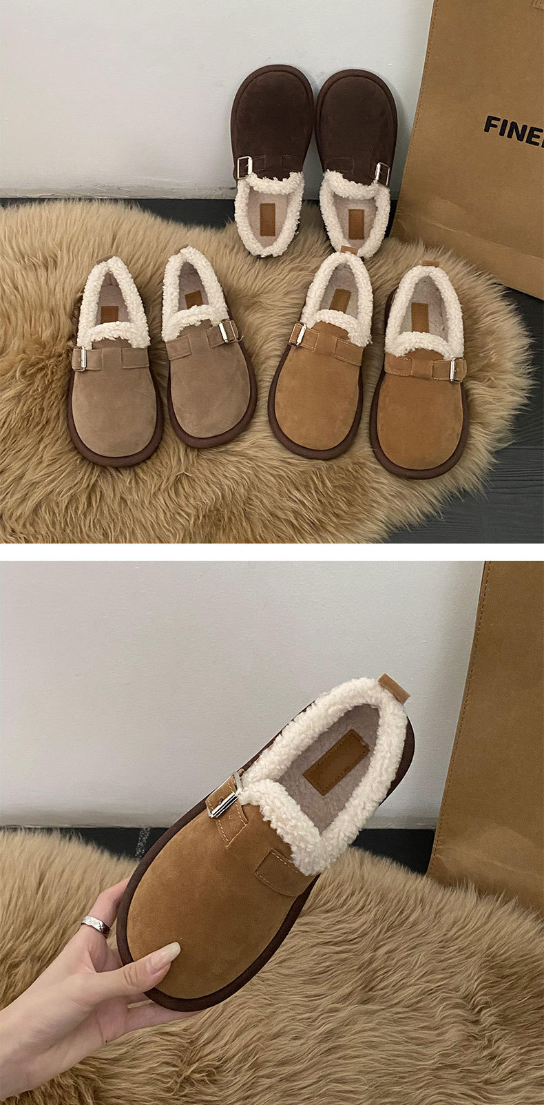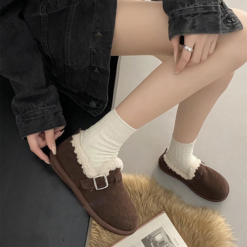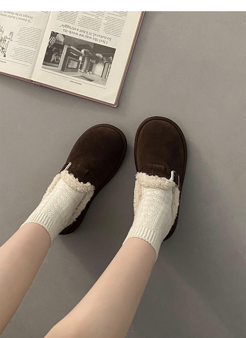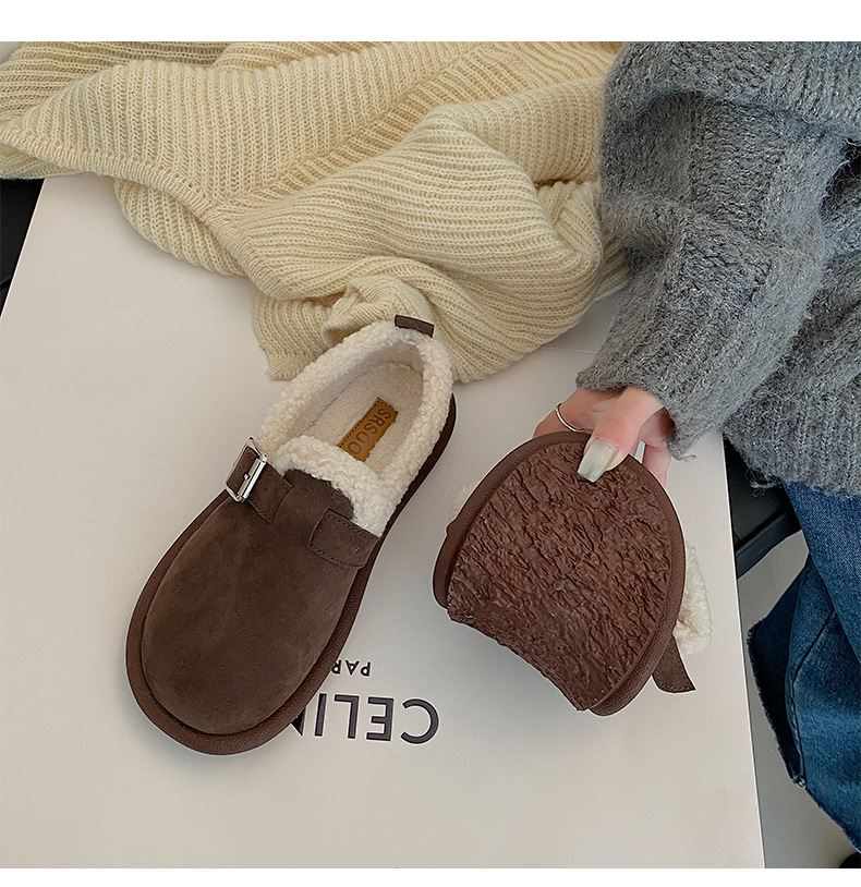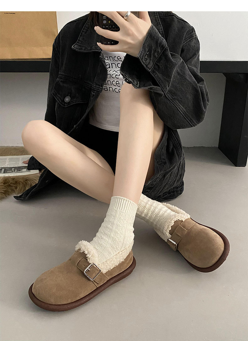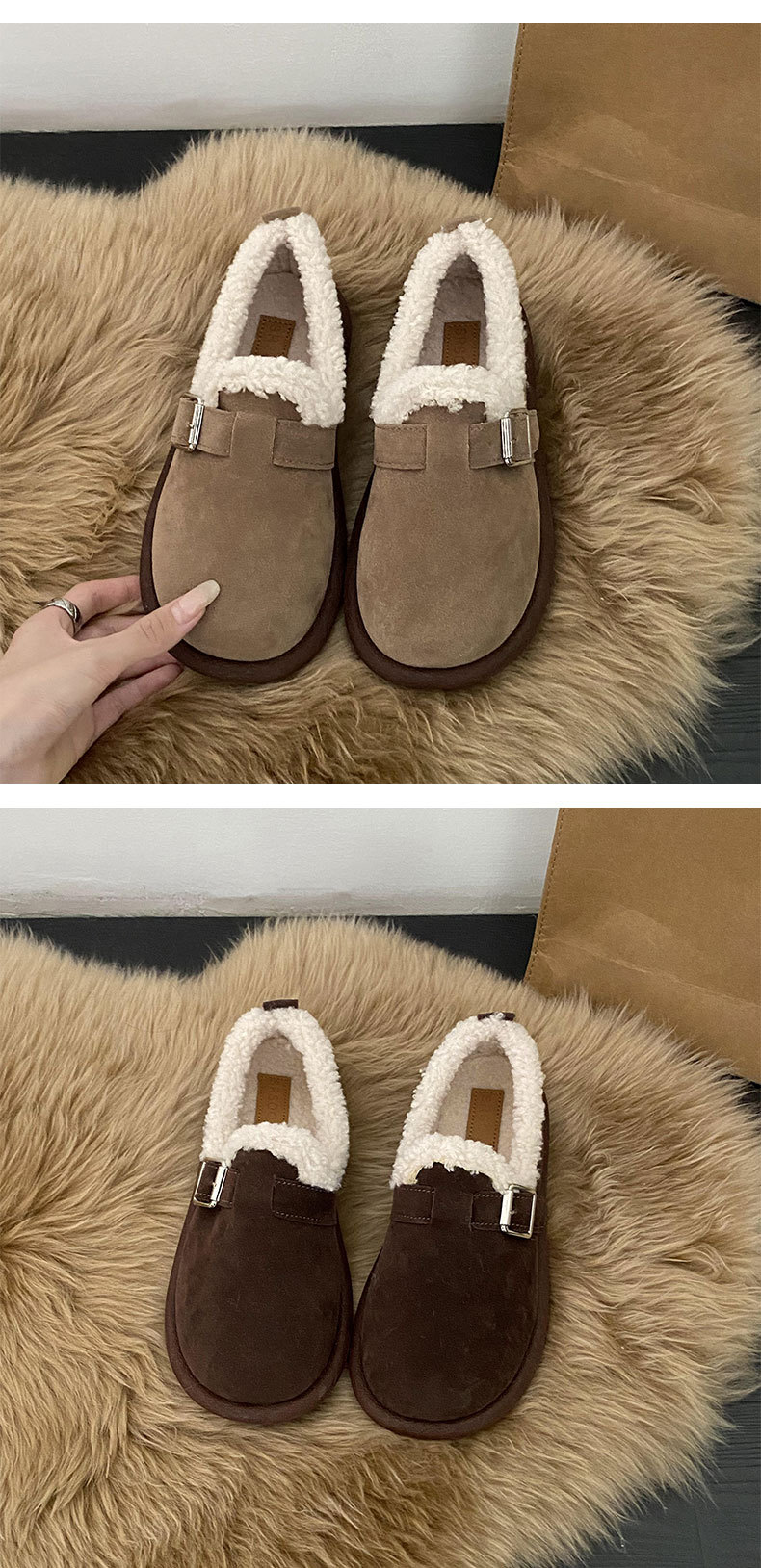 皮毛一体保暖厚底棉鞋女冬加绒加厚2023新款一脚蹬全包复古勃肯鞋