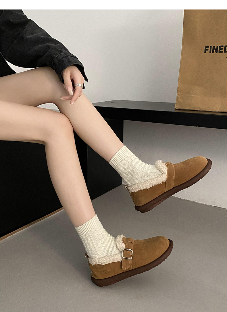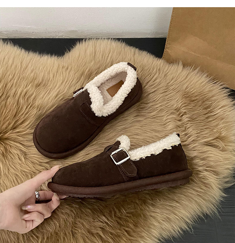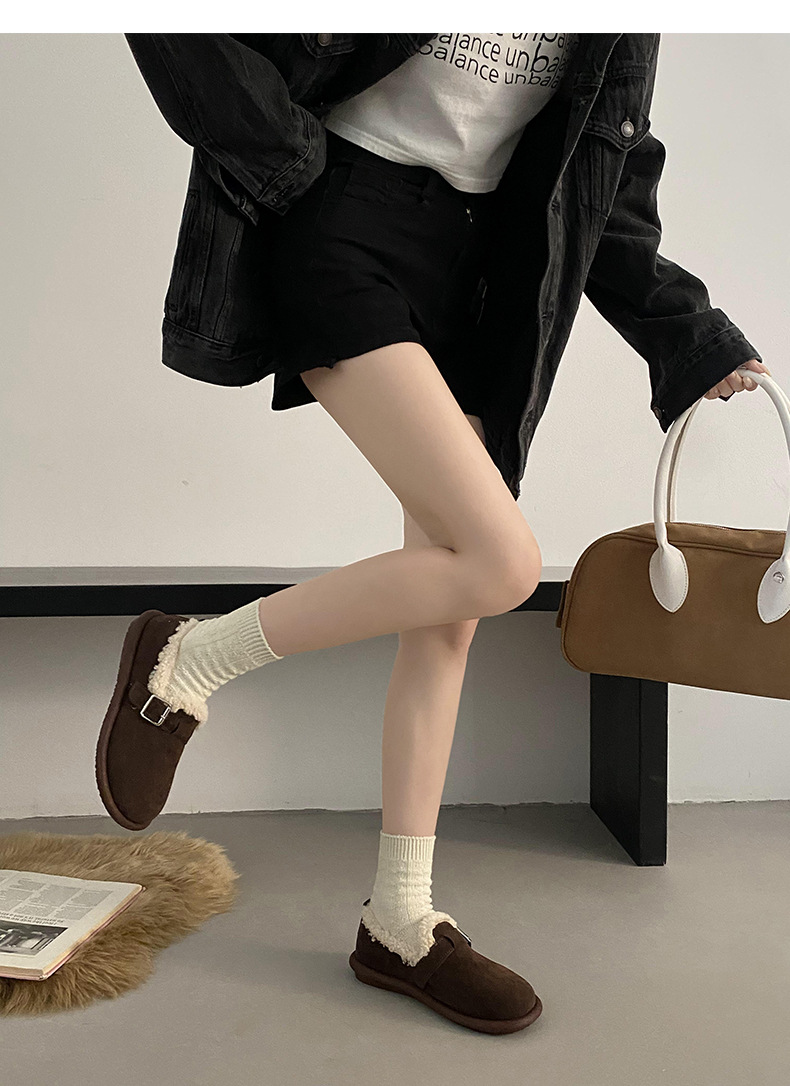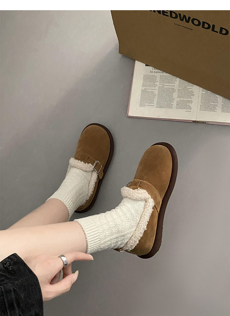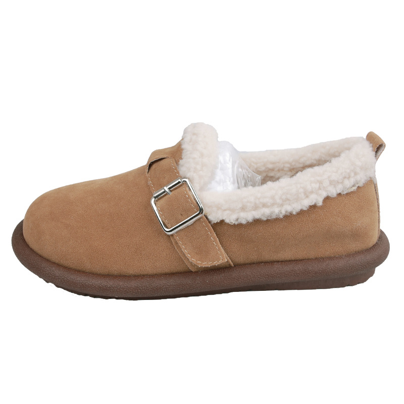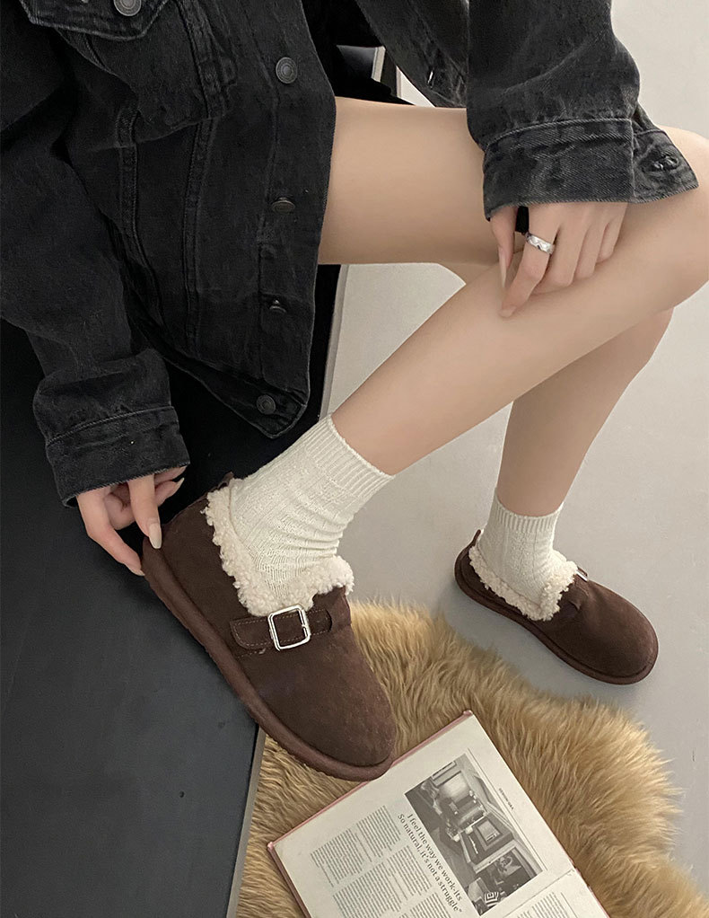 皮毛一体保暖厚底棉鞋女冬加绒加厚2023新款一脚蹬全包复古勃肯鞋