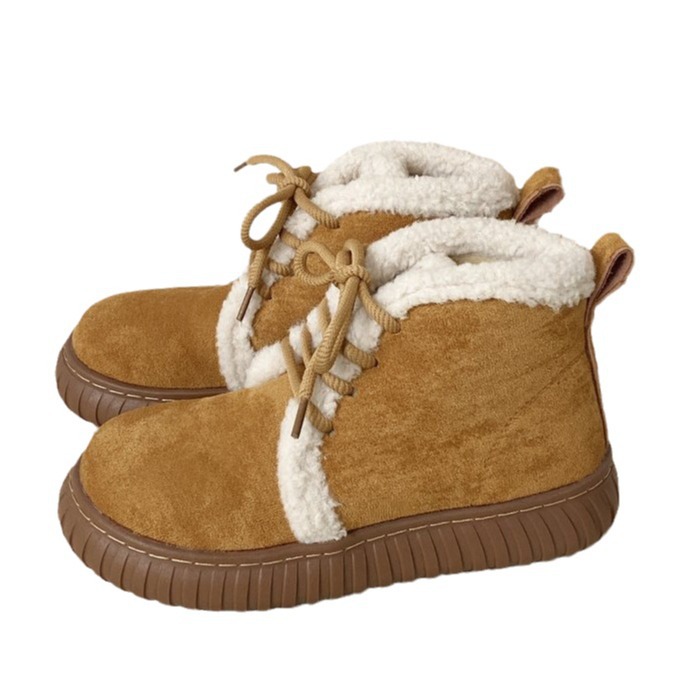 白色系带保暖防滑厚底雪地靴女款冬季加绒加厚2023新款外穿棉鞋子