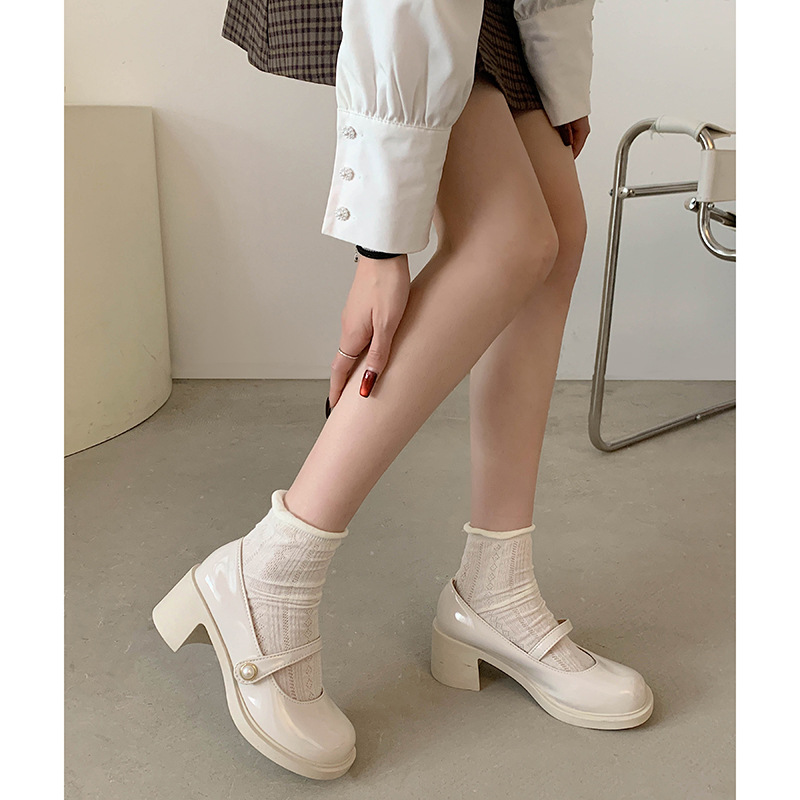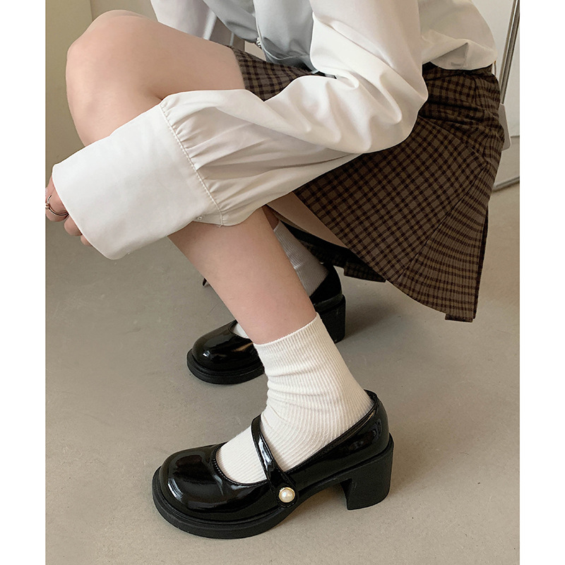 百搭圆头粗跟英伦风复古黑色小皮鞋女2023新款浅口法式玛丽珍单鞋