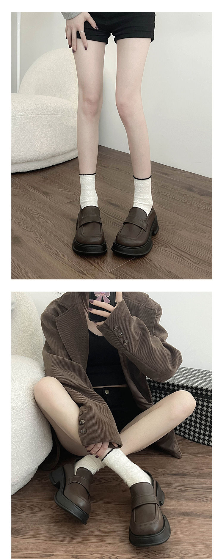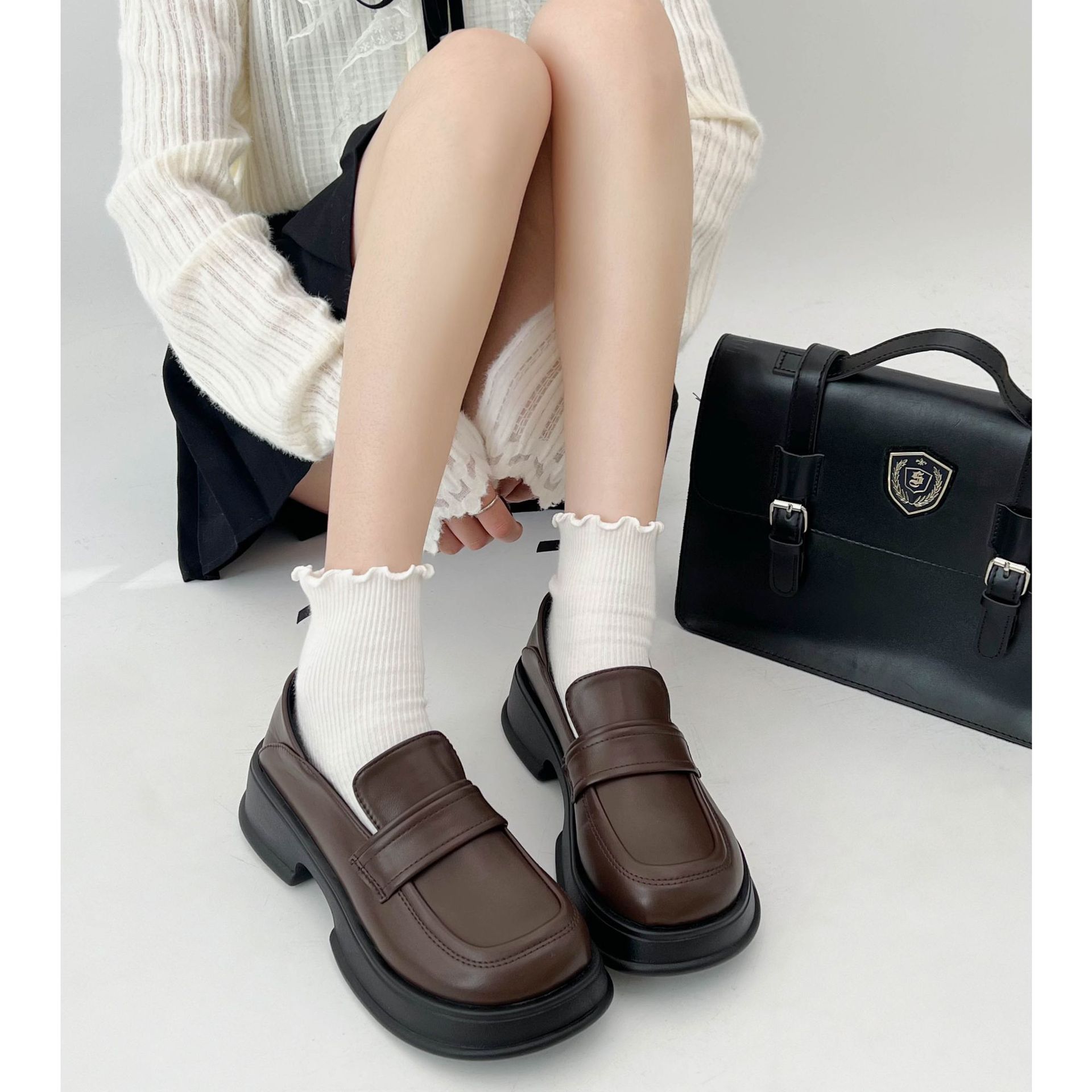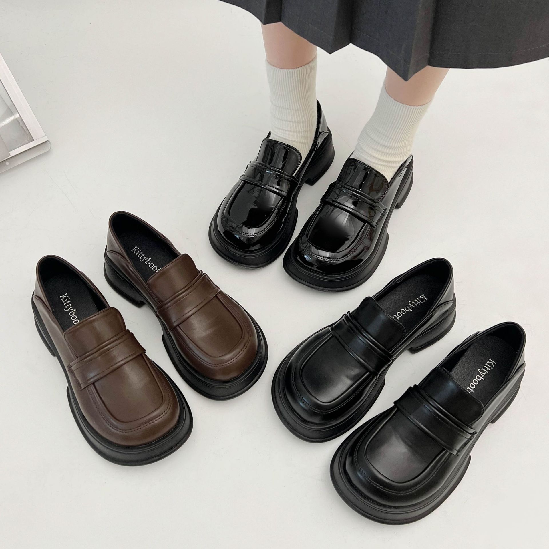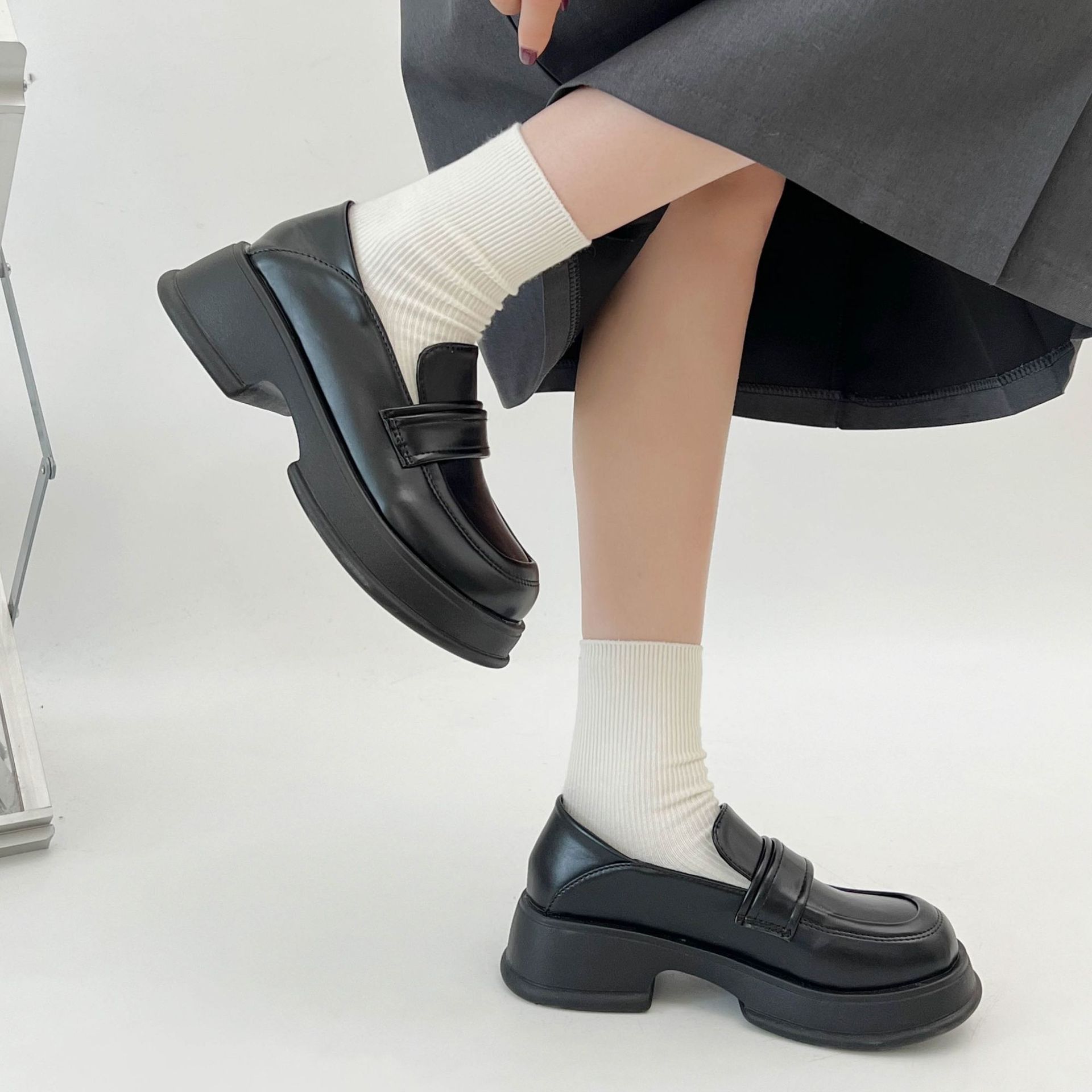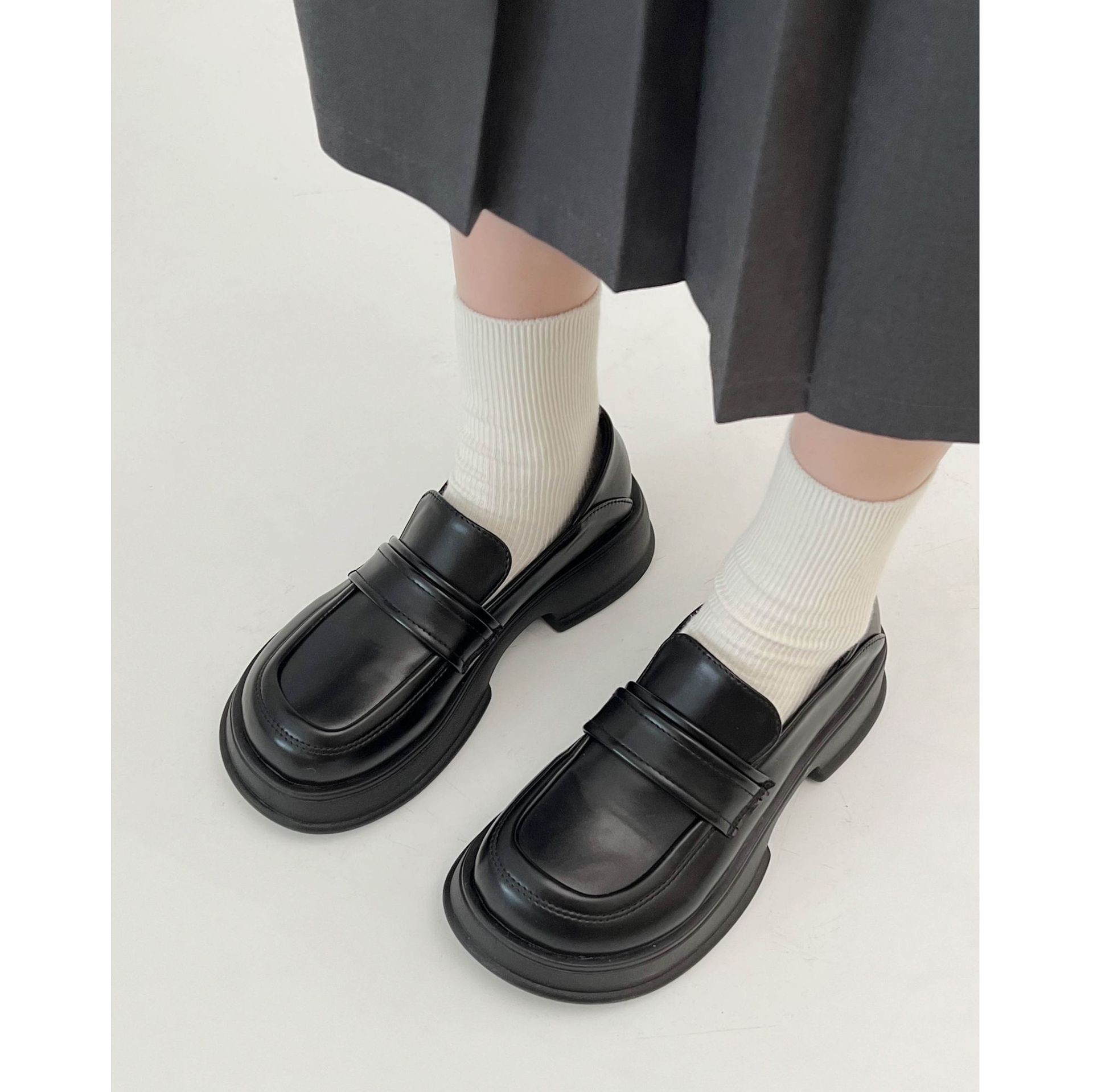 女王范法式厚底乐福鞋女2022新款秋冬百搭粗跟复古英伦风小皮鞋