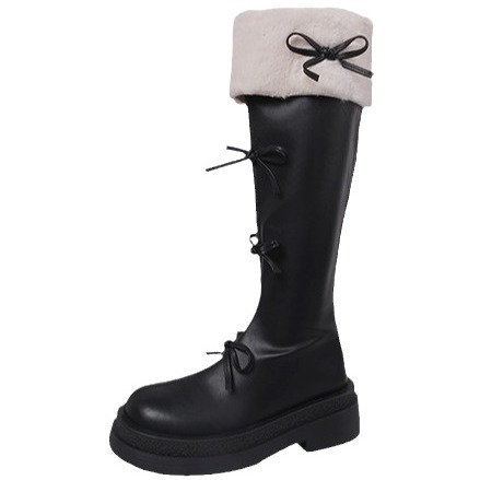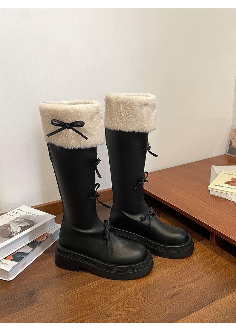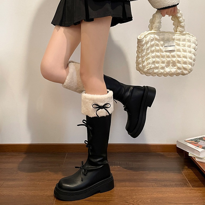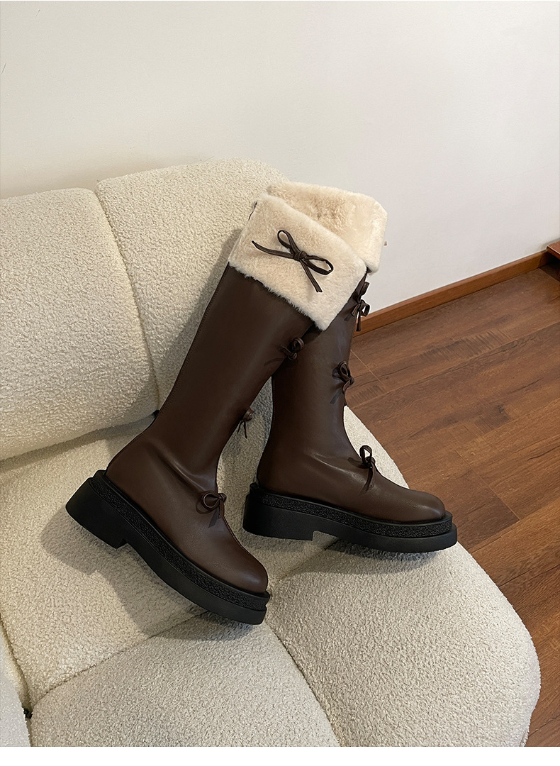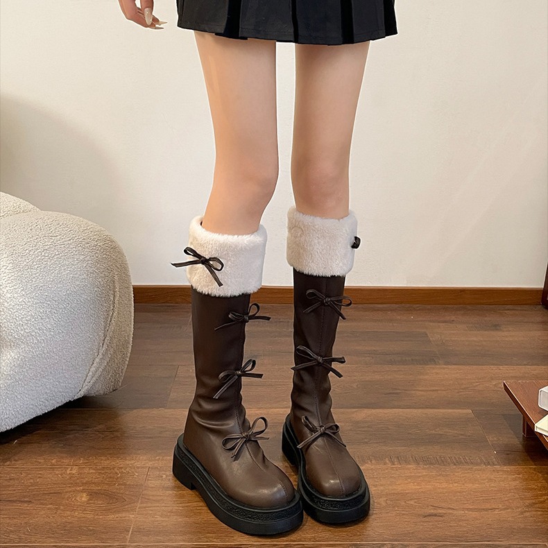 棕色显瘦胖mm法式厚底靴子女长筒靴2023新款秋冬季小个子复古长靴