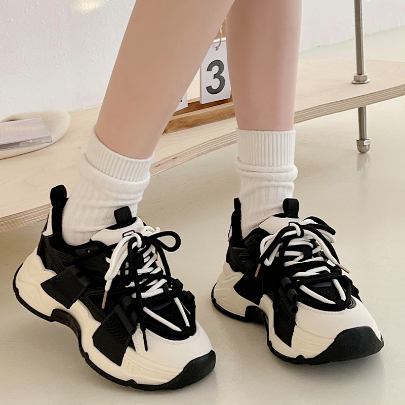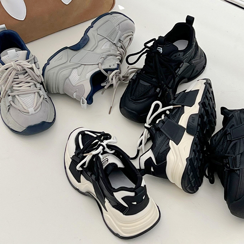 爆款显脚小老爹鞋女款2022新款秋冬高级感厚底复古百搭轻便运动鞋