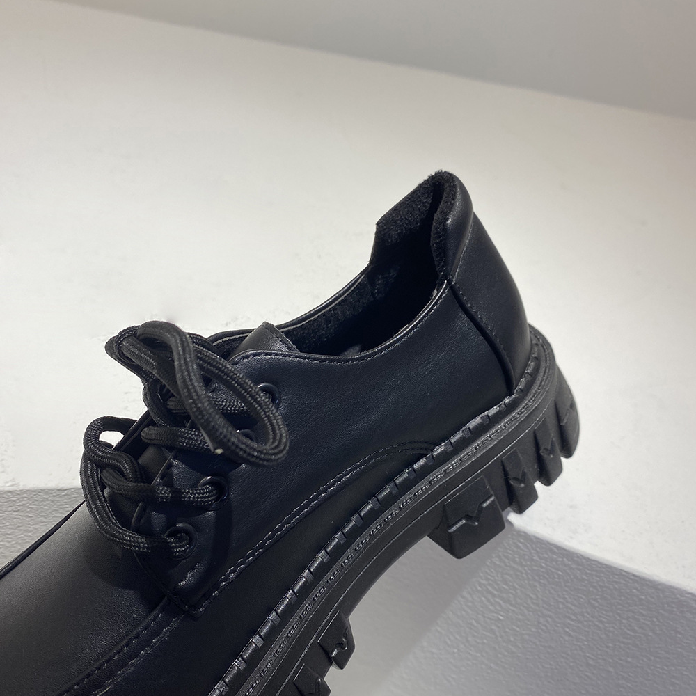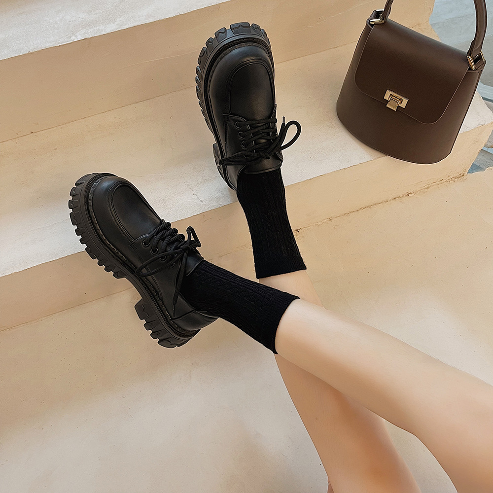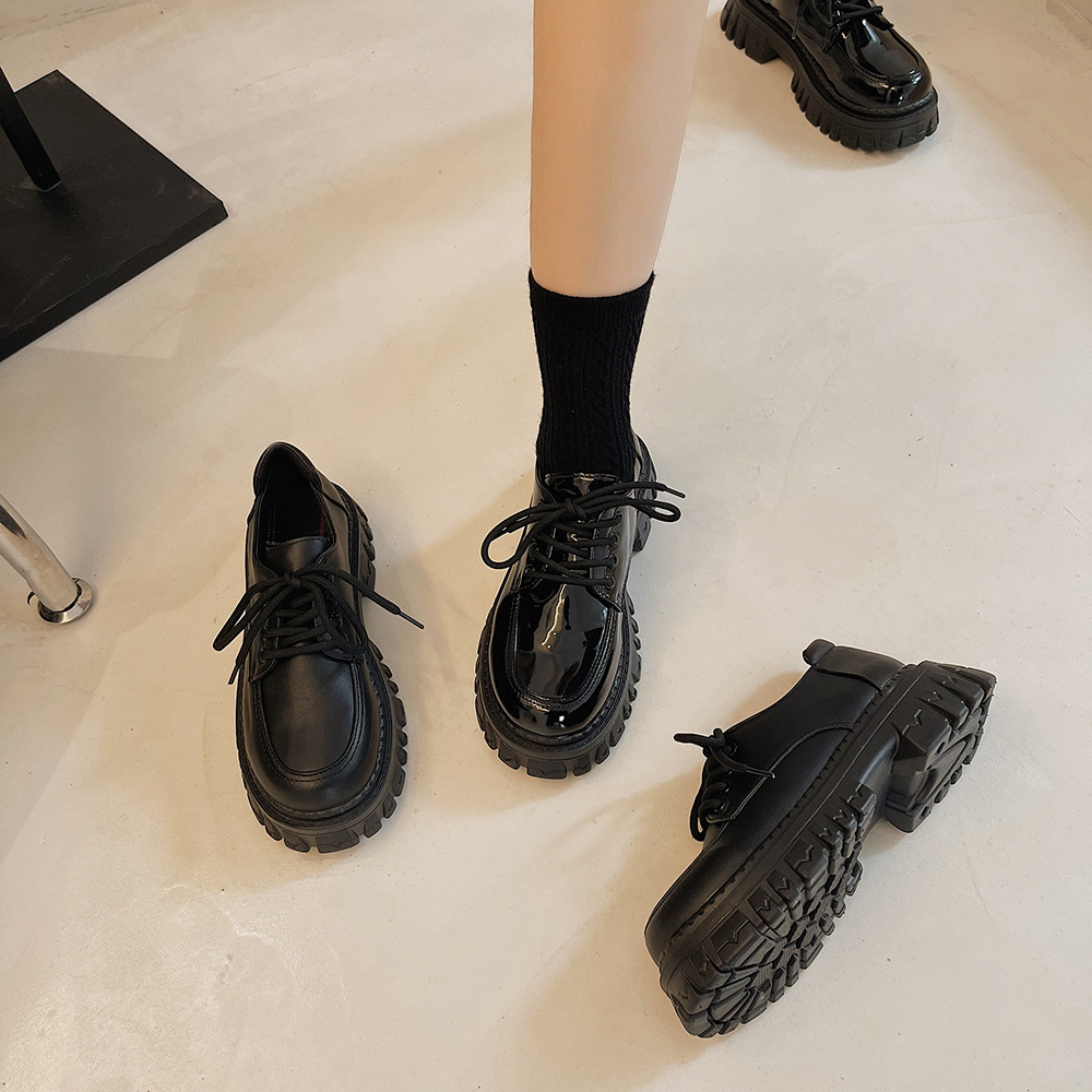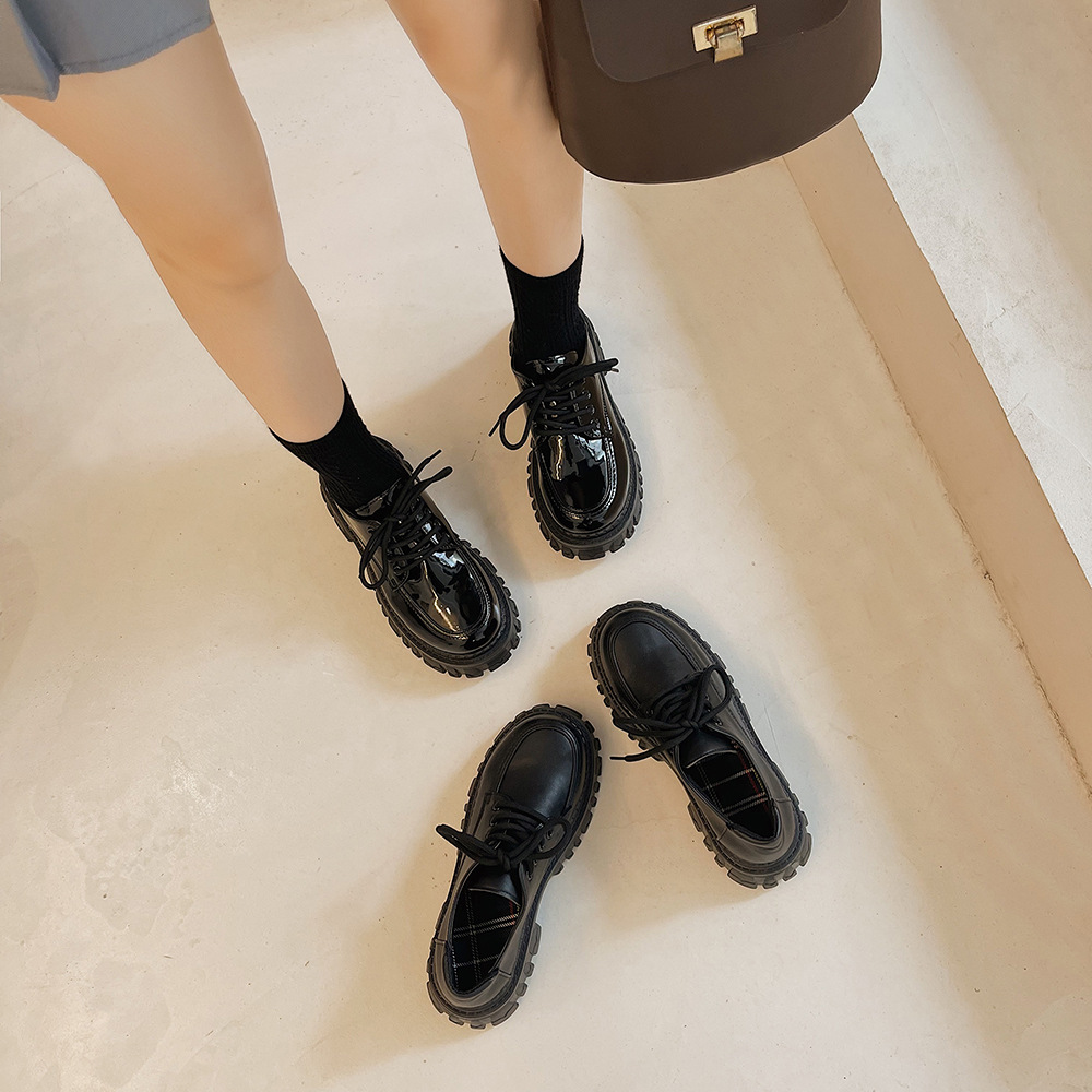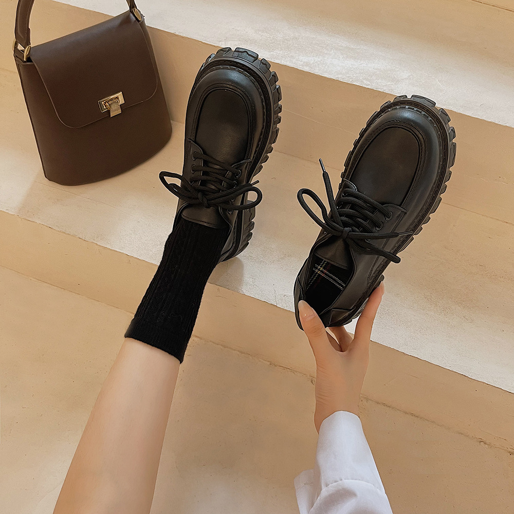 2022夏季新款黑色百搭厚底休闲鞋女复古英伦风时尚系带单鞋jk学院