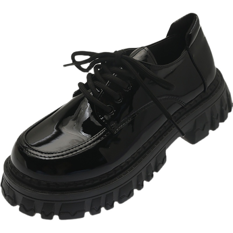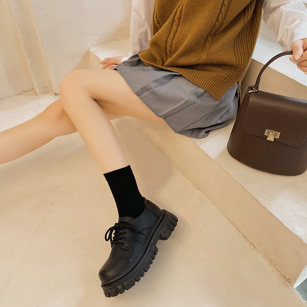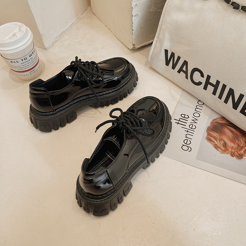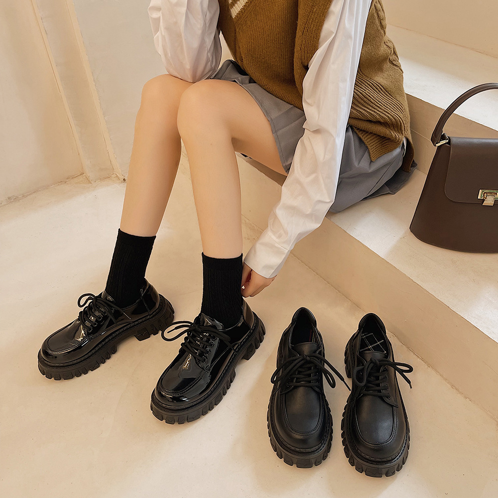 2022夏季新款黑色百搭厚底休闲鞋女复古英伦风时尚系带单鞋jk学院