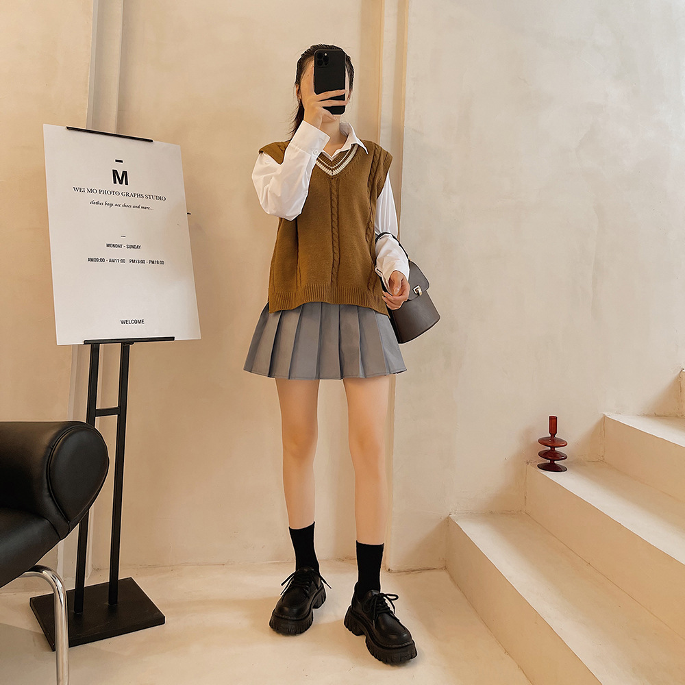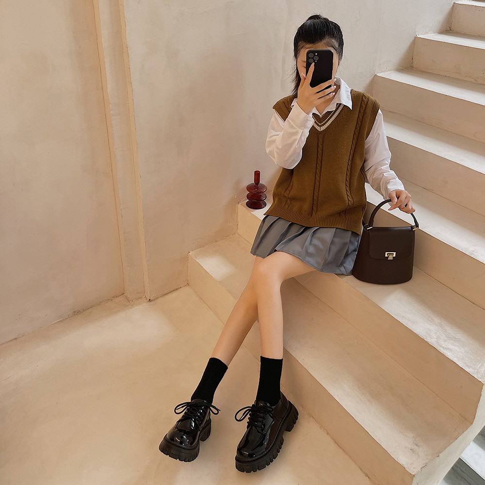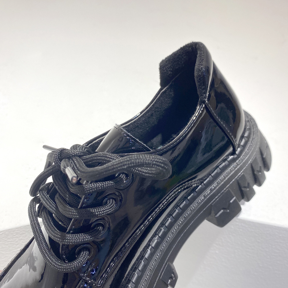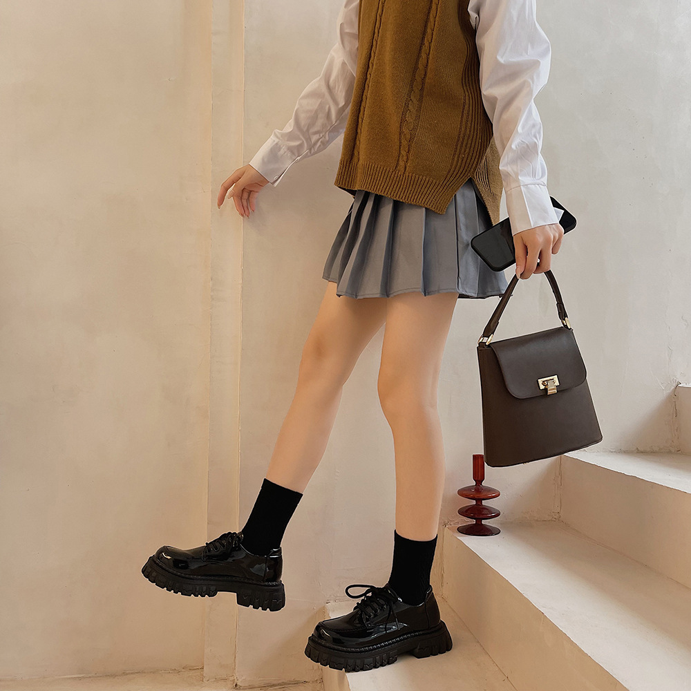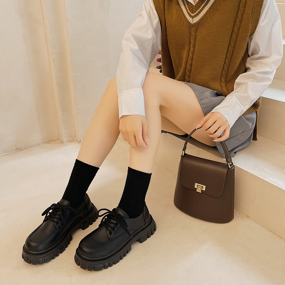 2022夏季新款黑色百搭厚底休闲鞋女复古英伦风时尚系带单鞋jk学院