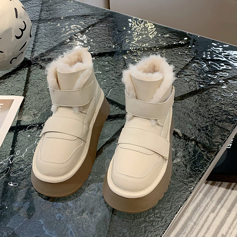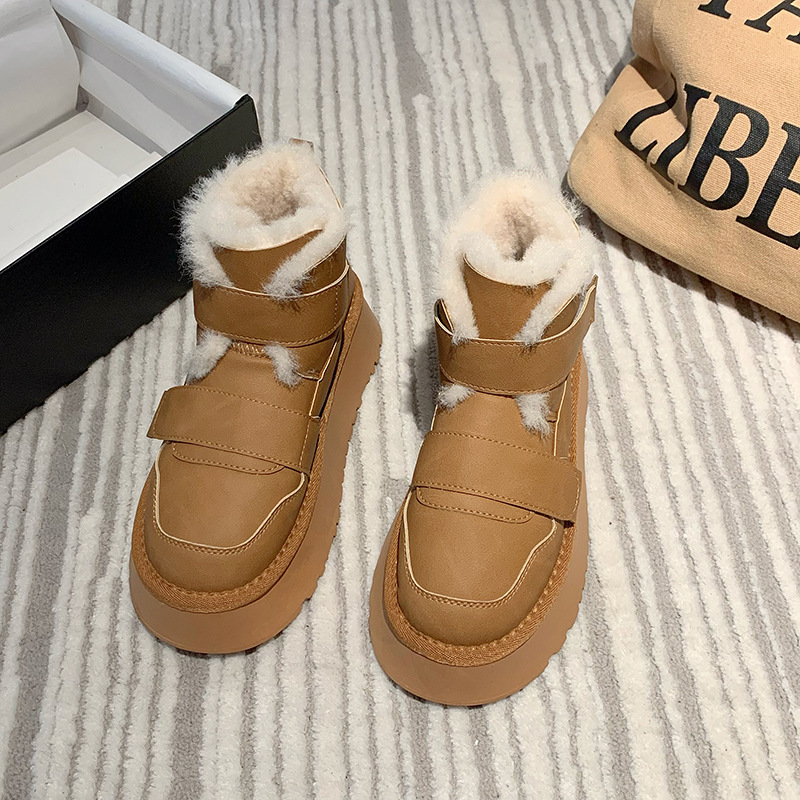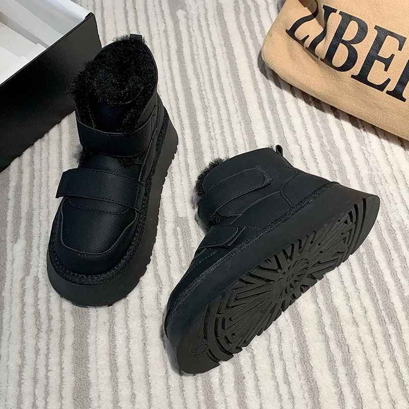 保暖简约防滑厚底雪地靴女款冬季加绒加厚2023新款东北保暖棉鞋子