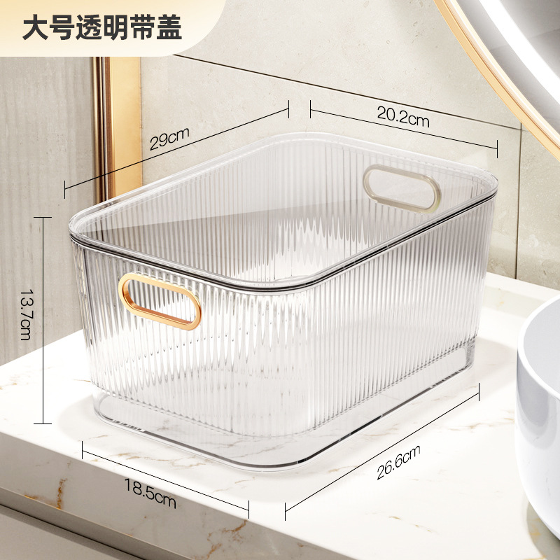 轻奢桌面收纳盒带盖面膜护肤品化妆品整理盒透明亚克力杂物收纳筐