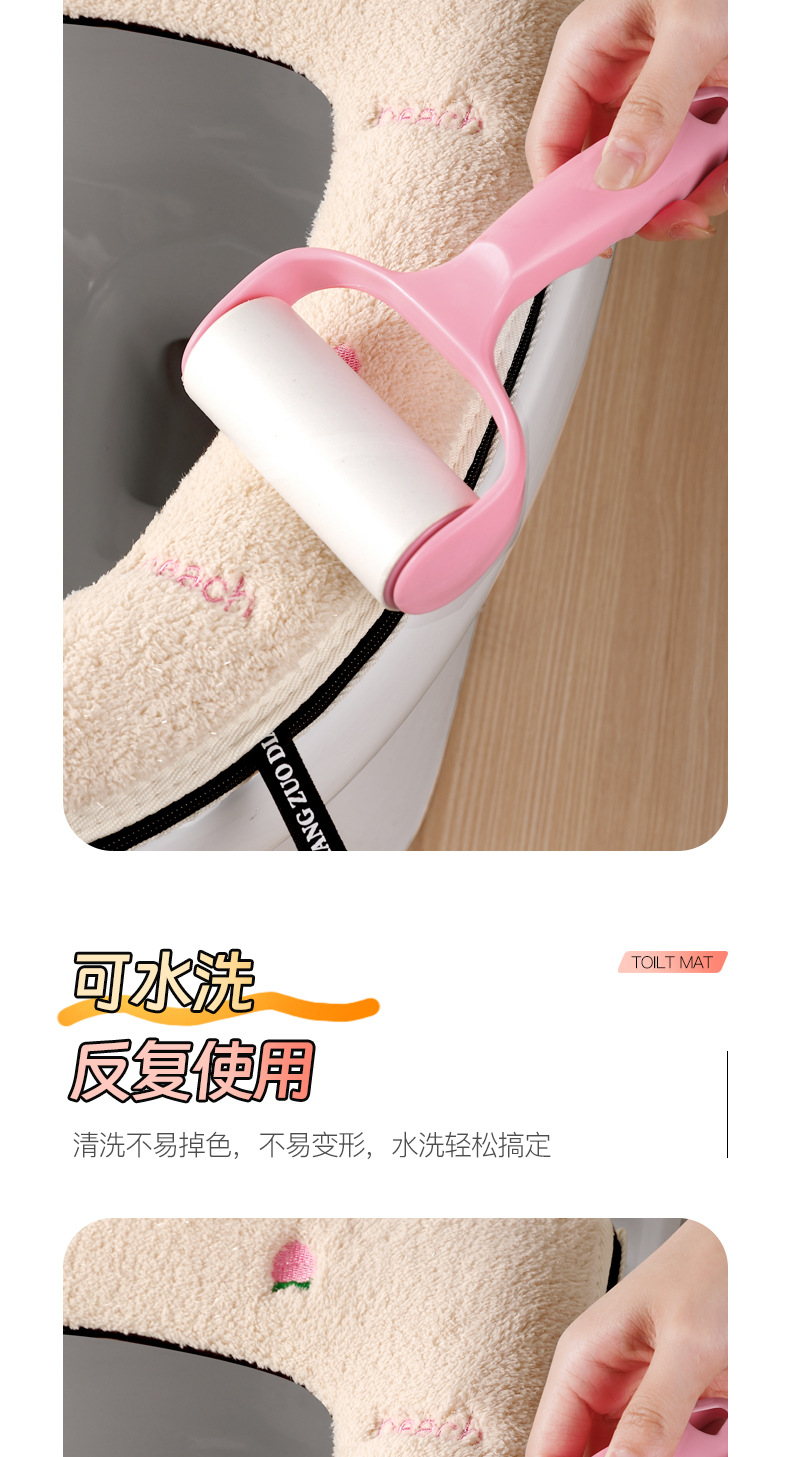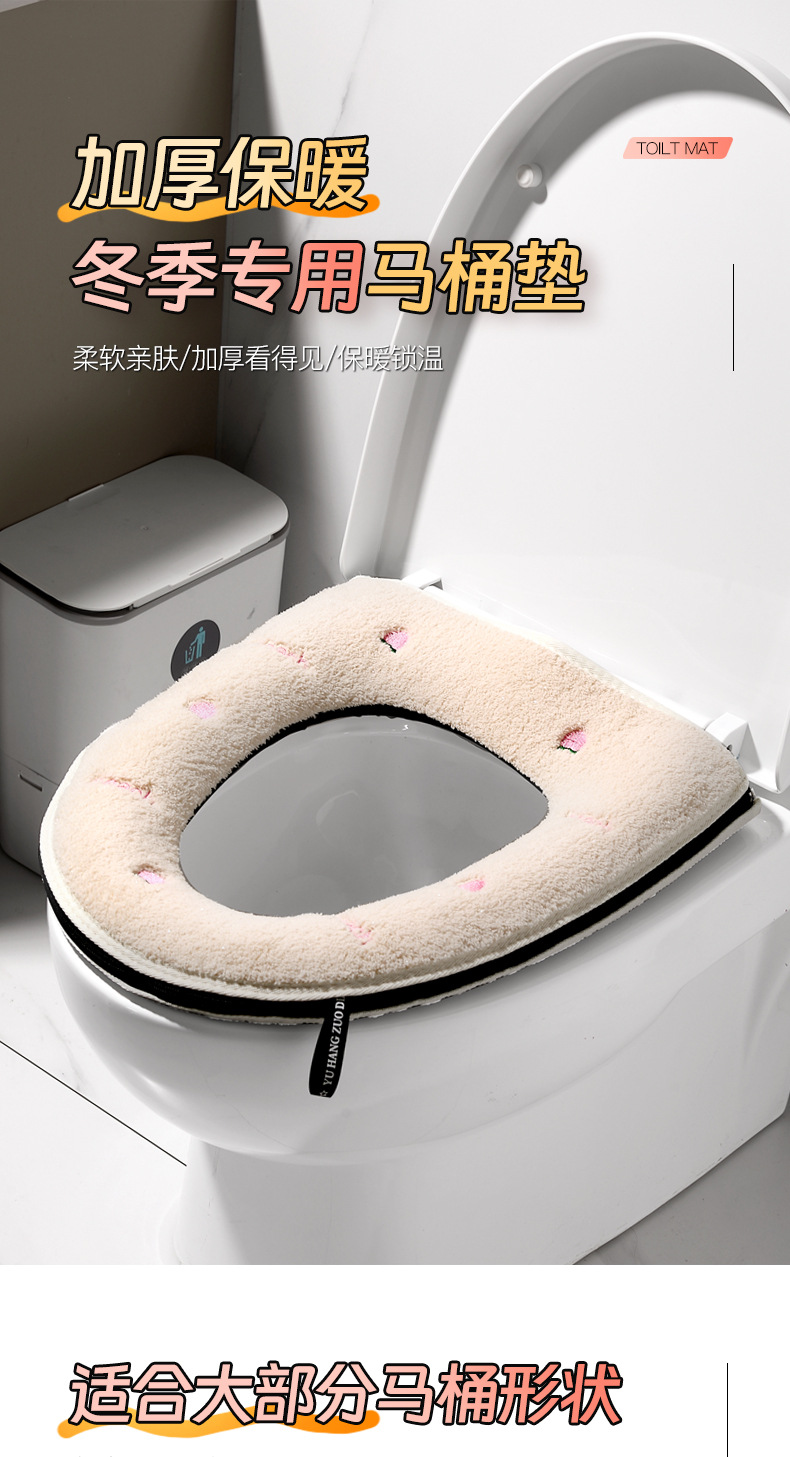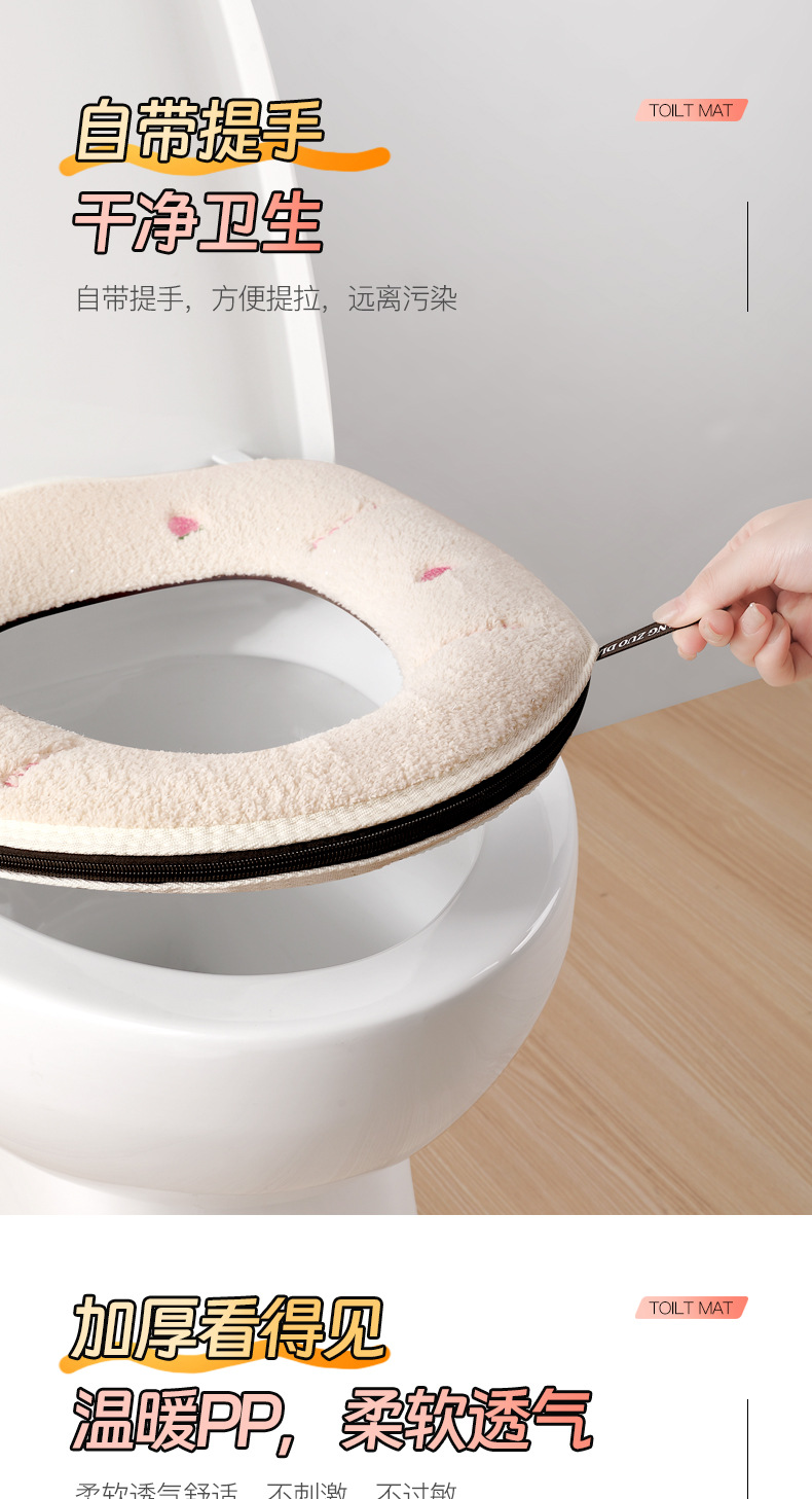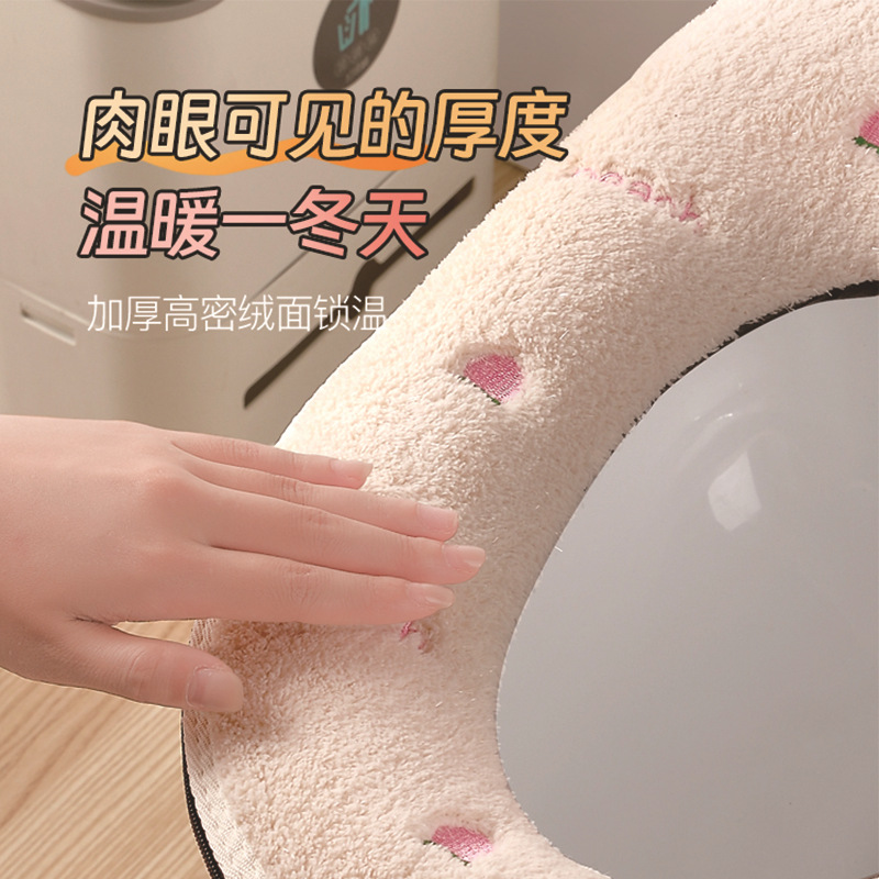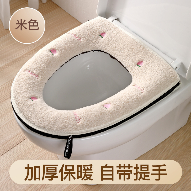 水蜜桃加厚马桶垫秋冬家用拉链式防水亲肤保暖带提手可水洗马桶套