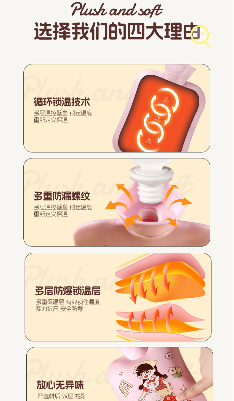 冬季卡通热水袋学生随身迷你便携暖水袋女生防漏锁温无异味暖手宝