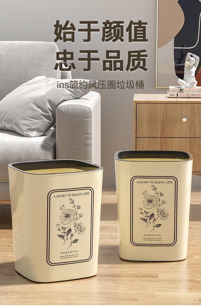 家用高颜值垃圾桶客厅厨房大容量纸篓加厚大敞口无盖垃圾收纳桶