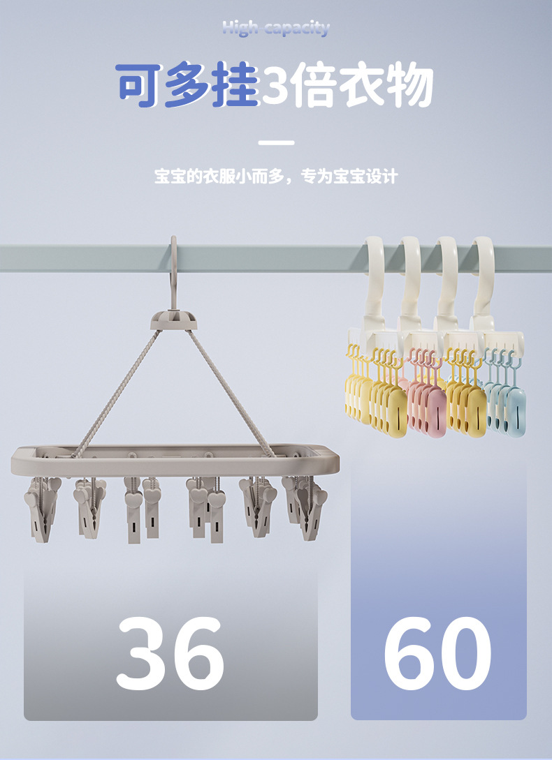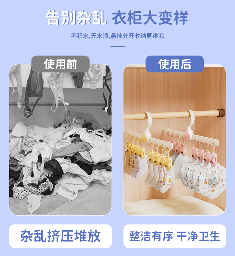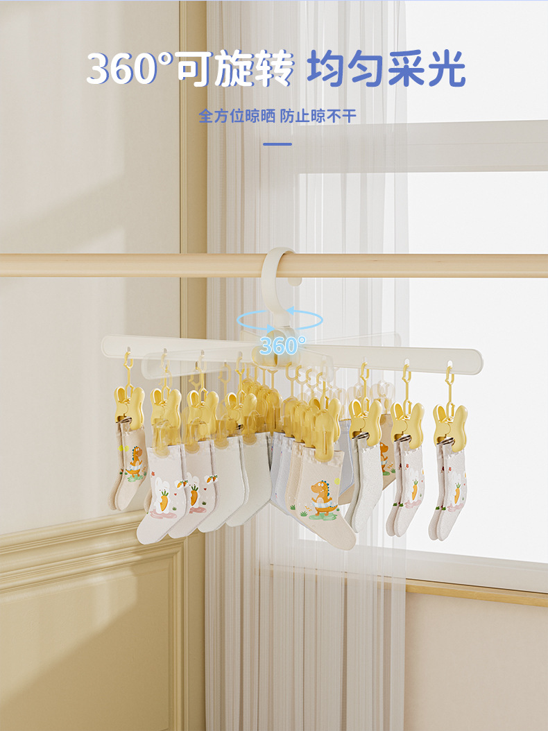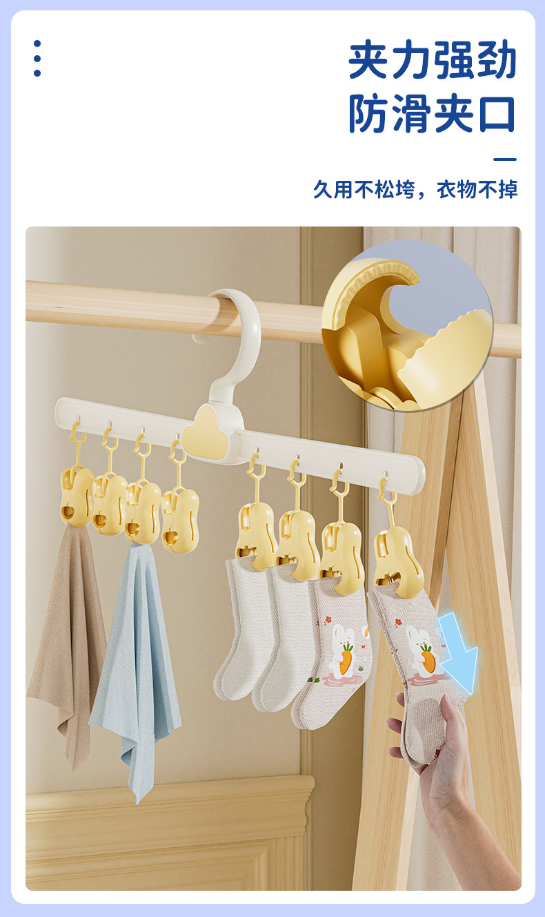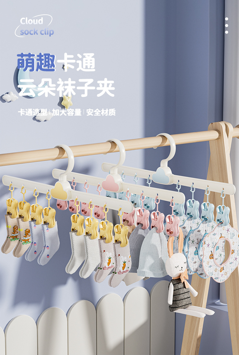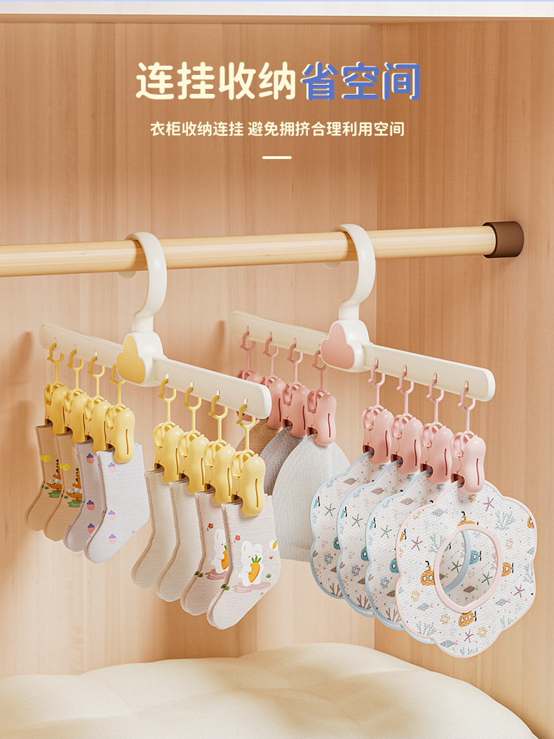云朵儿童衣架可旋转家用婴儿宝宝多夹子内衣内裤袜子防滑晾晒架