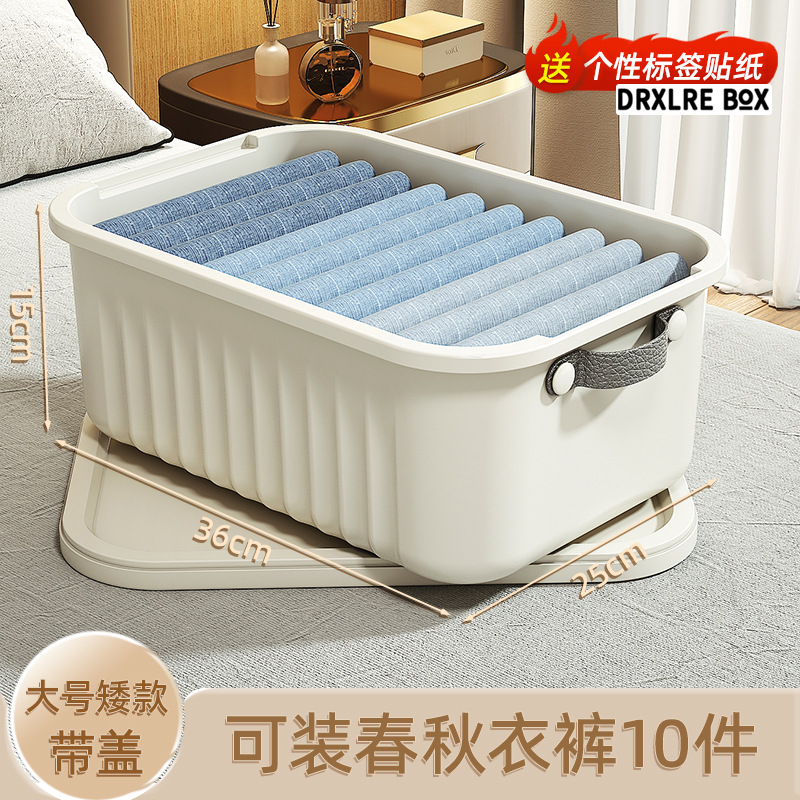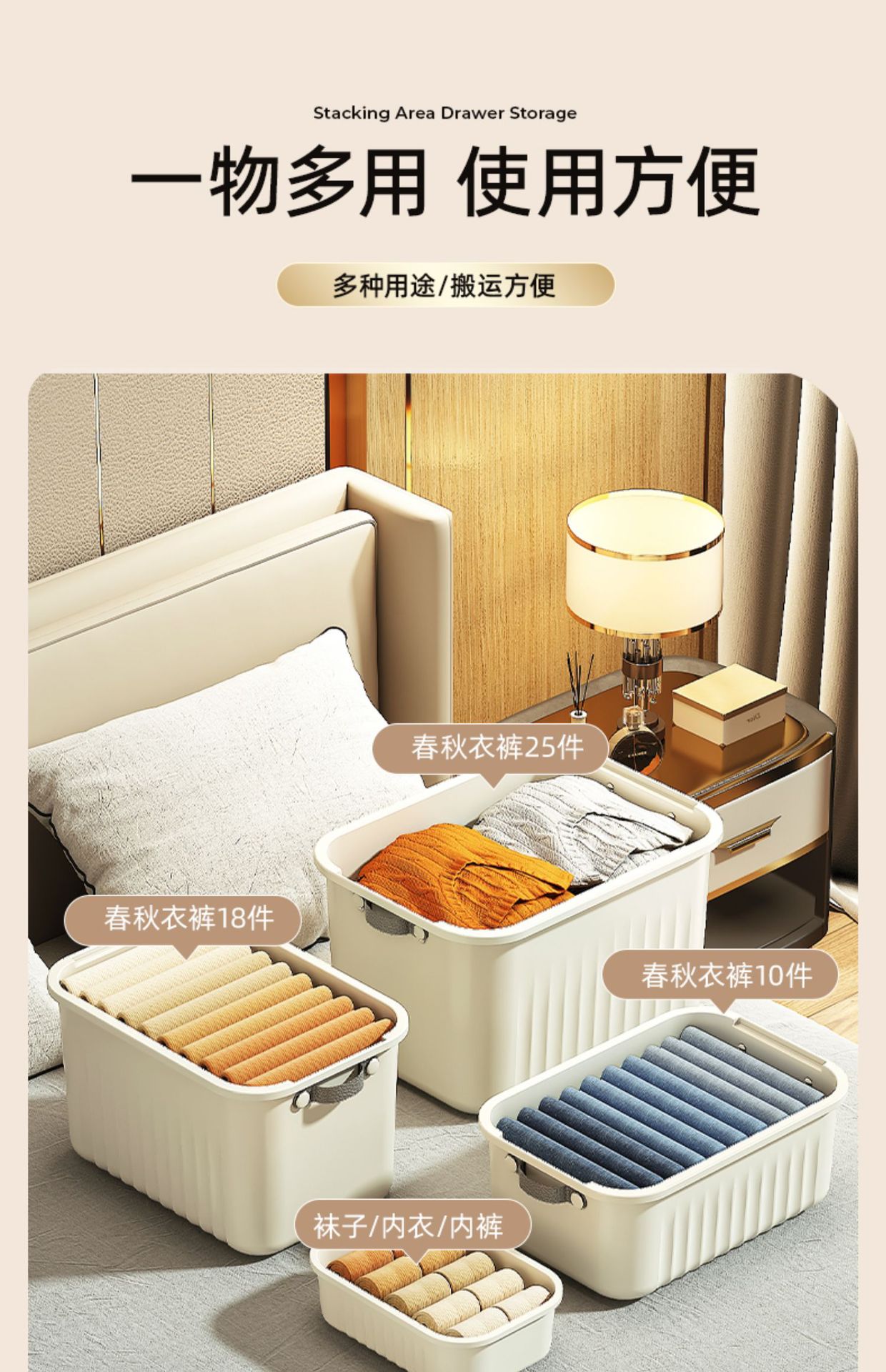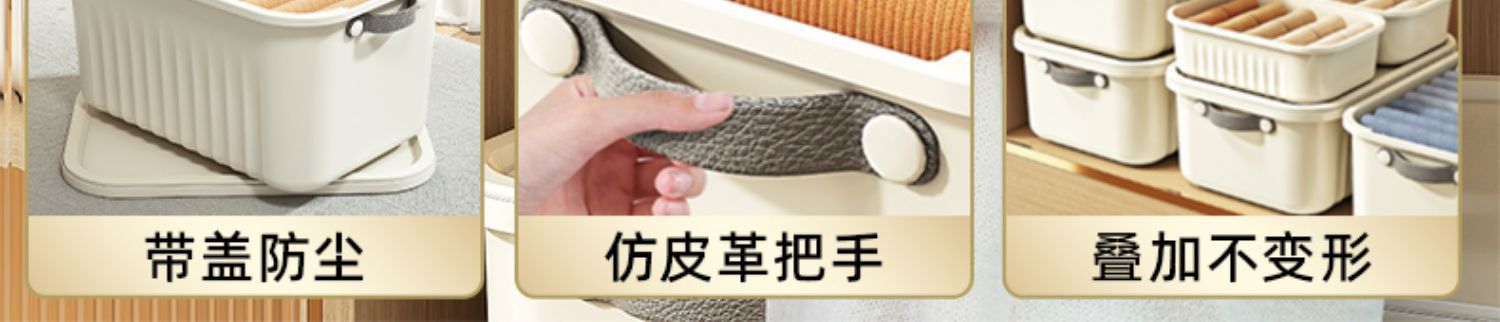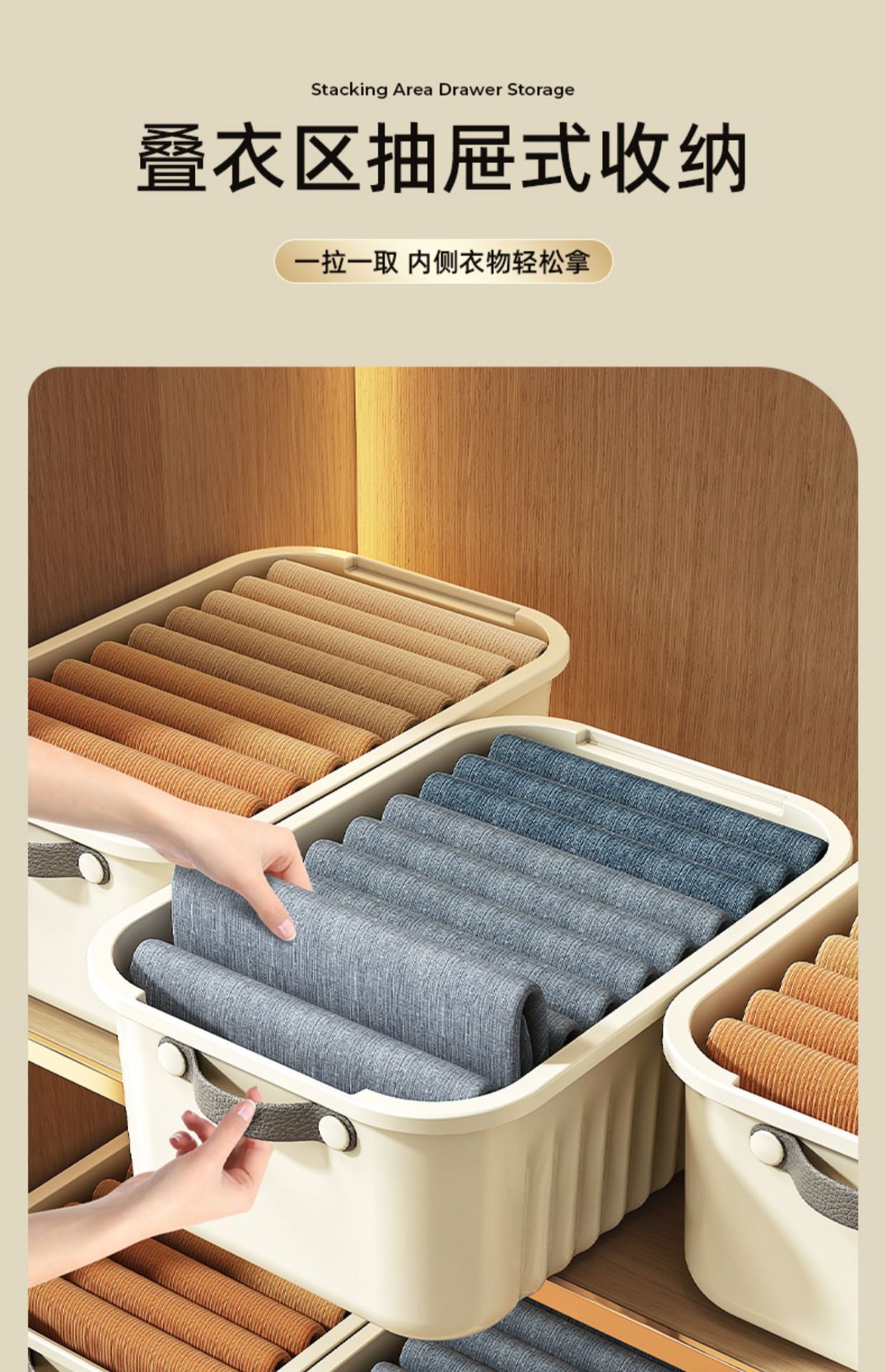 衣服收纳盒裤子抽屉衣柜整理衣物收纳箱塑料带盖家用储物整理盒