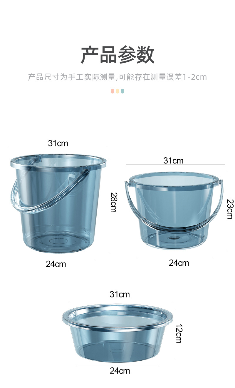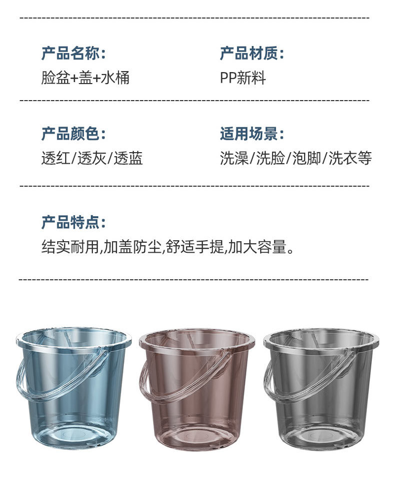 新款透明水桶家用卫生间浴室大容量加厚手提带盖学生宿舍脸盆套装