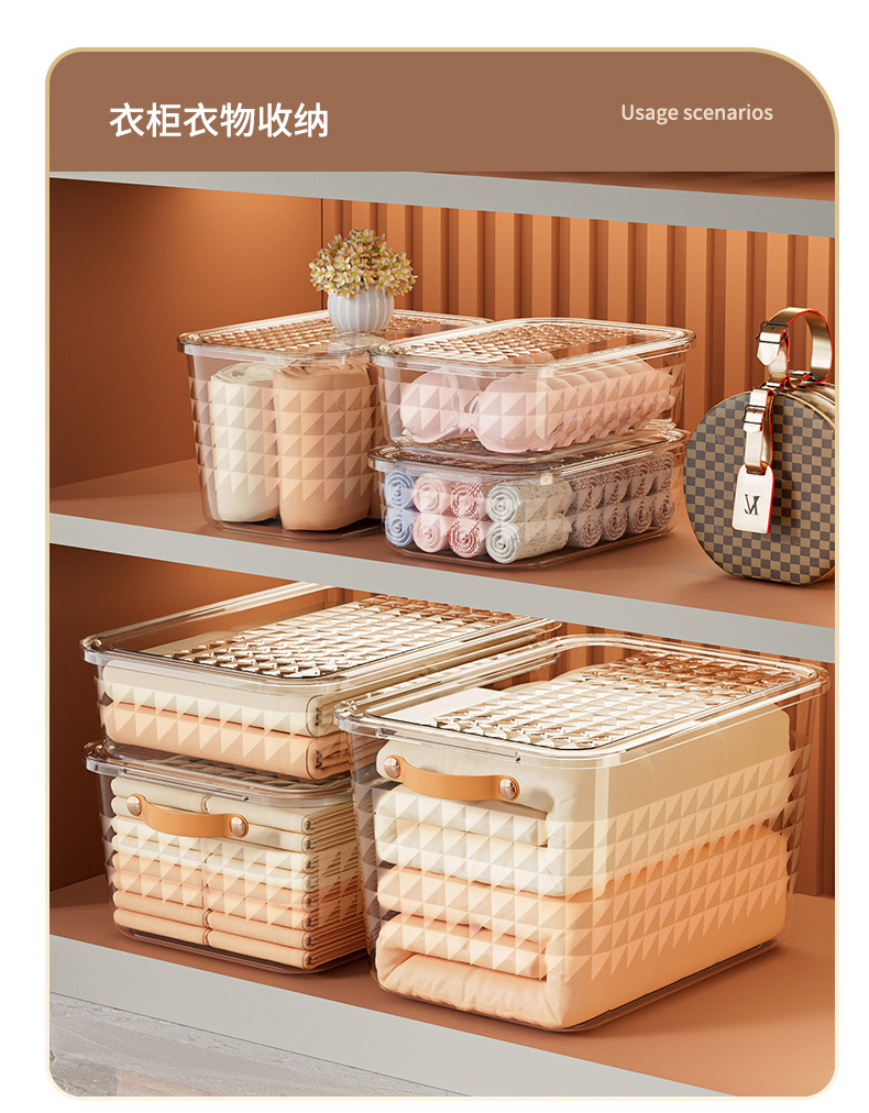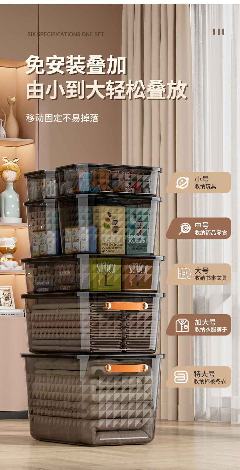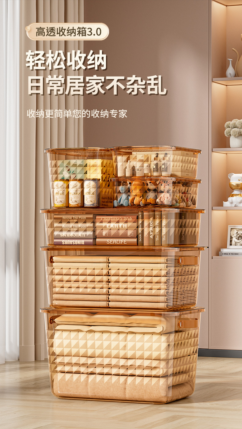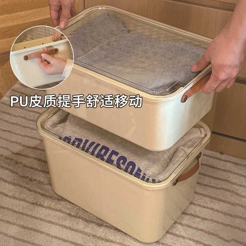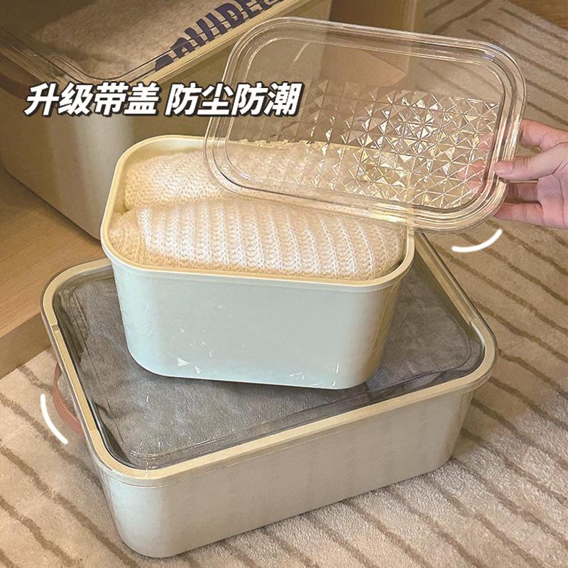 PET衣服收纳盒家用衣柜桌面大容量带盖防尘玩具零食整理收纳箱