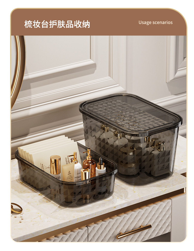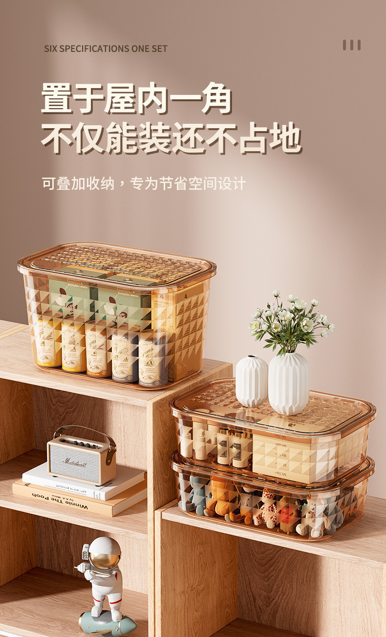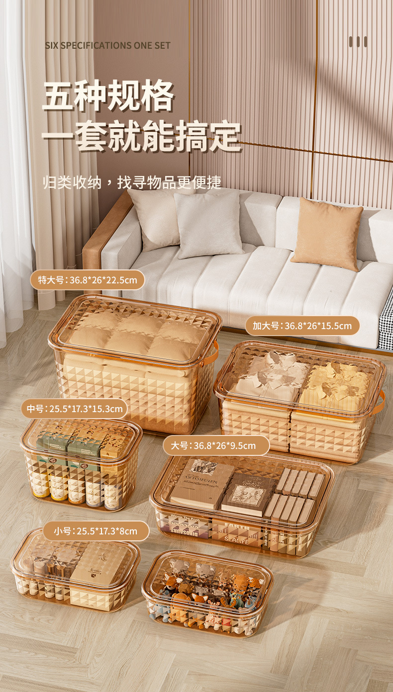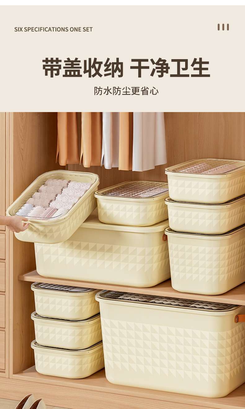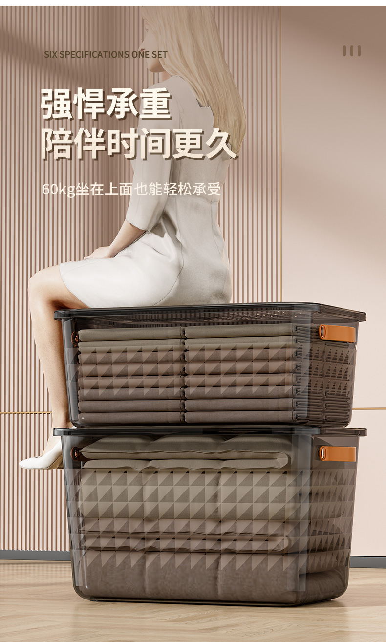 PET衣服收纳盒家用衣柜桌面大容量带盖防尘玩具零食整理收纳箱