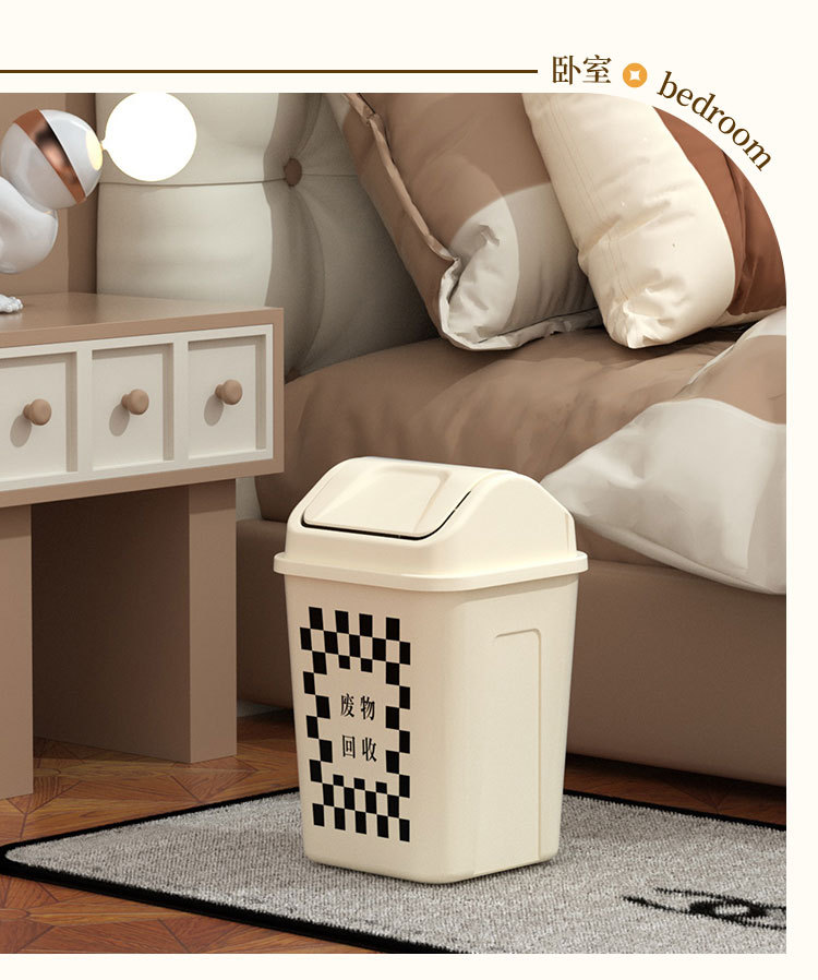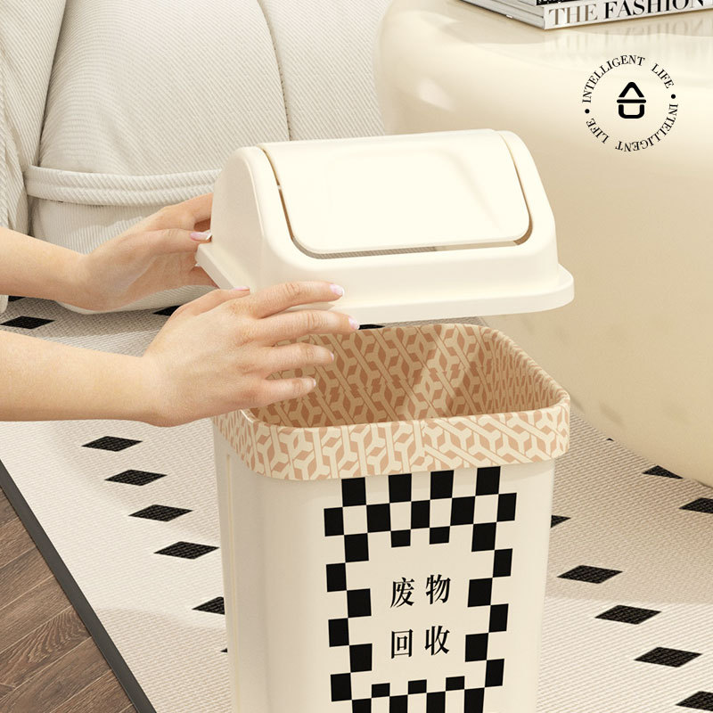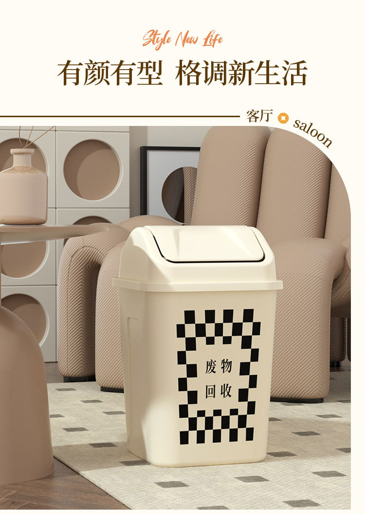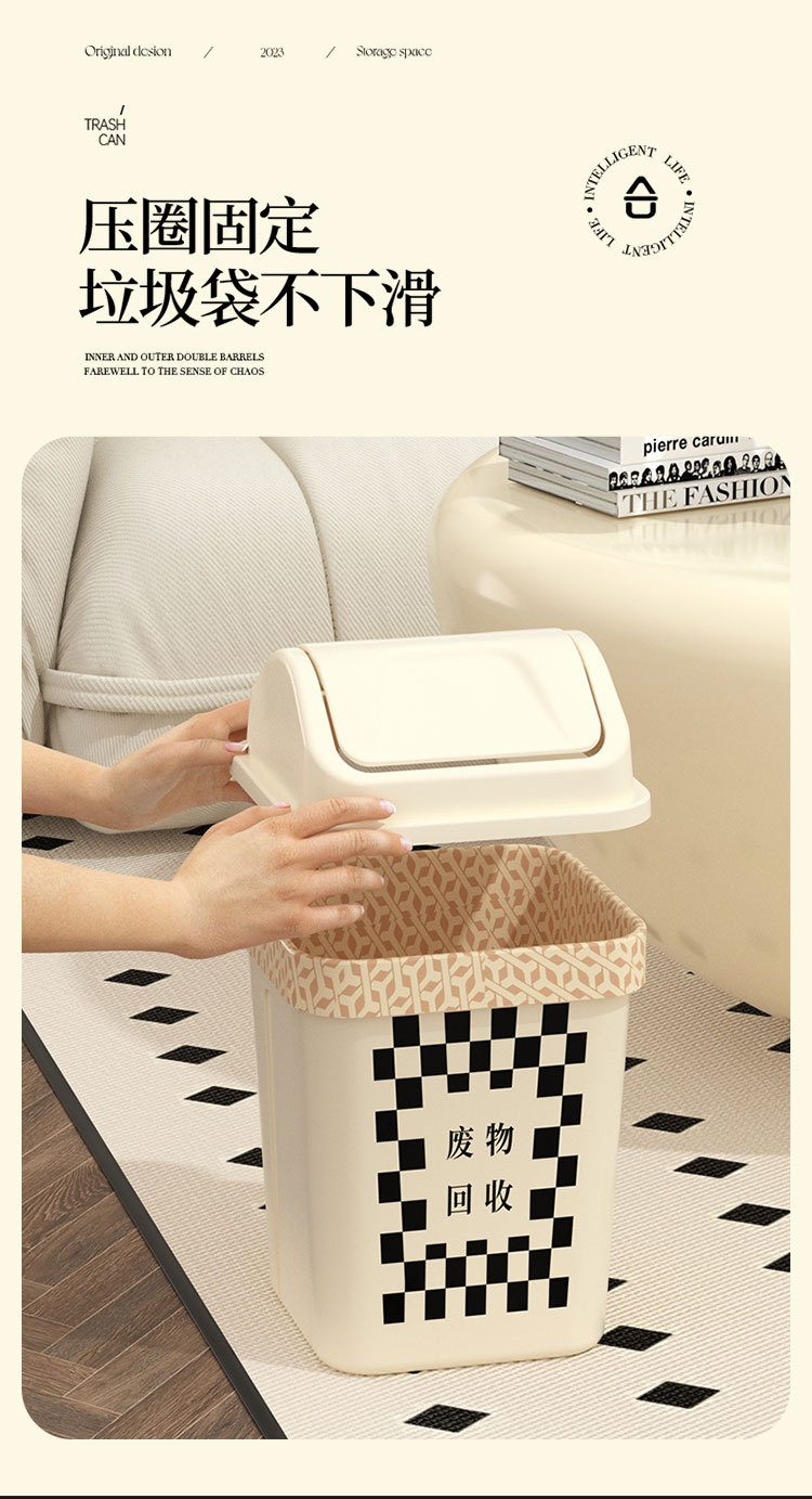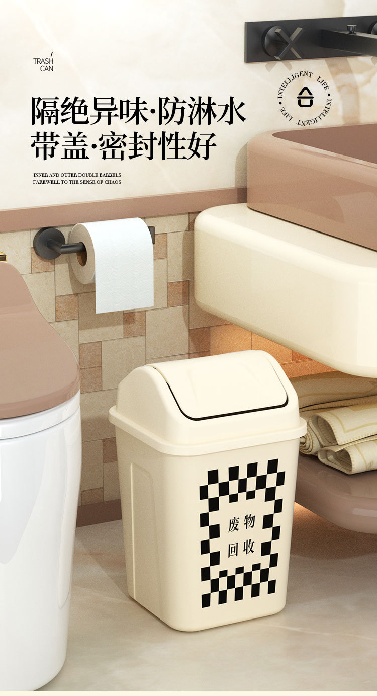 奶油风摇盖式垃圾桶高颜值家用厨房卫生间大容量压圈加厚防水纸篓