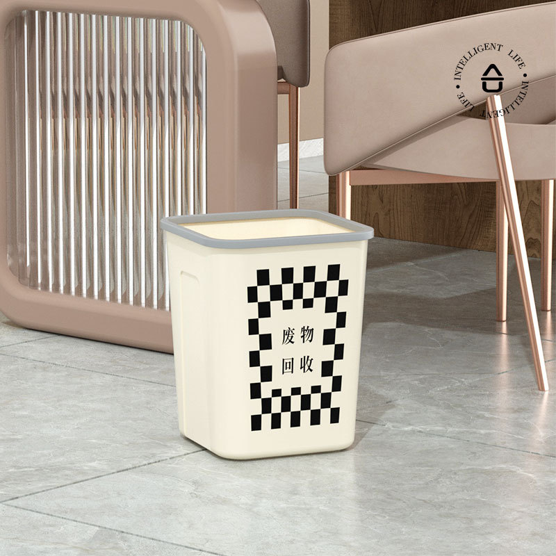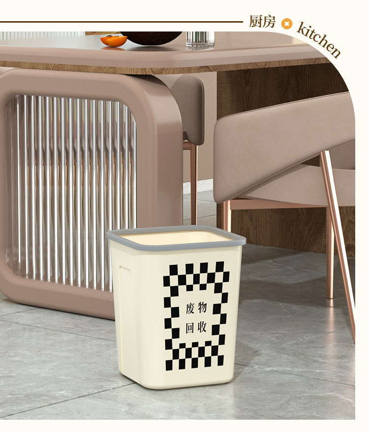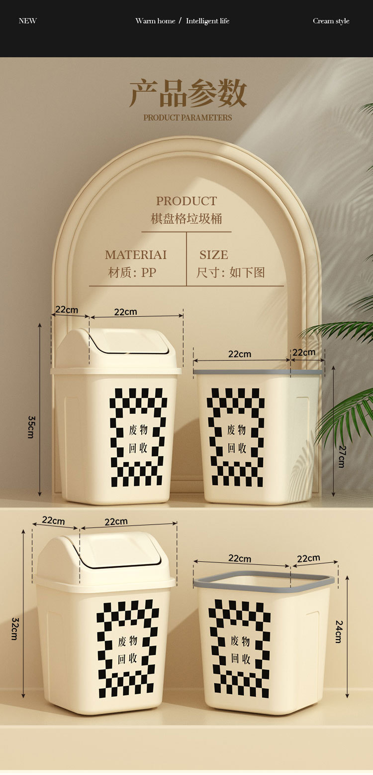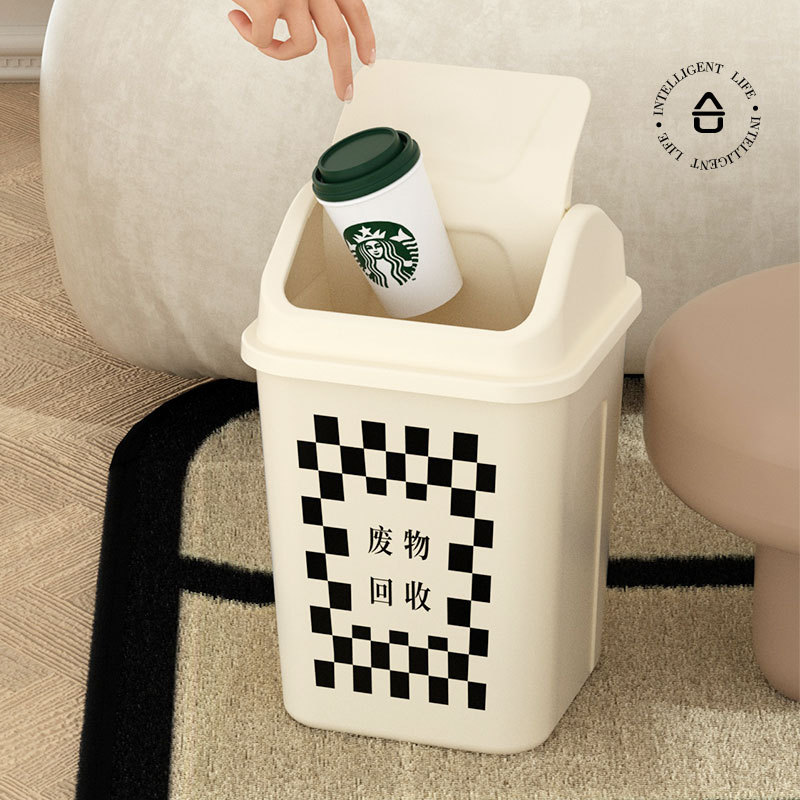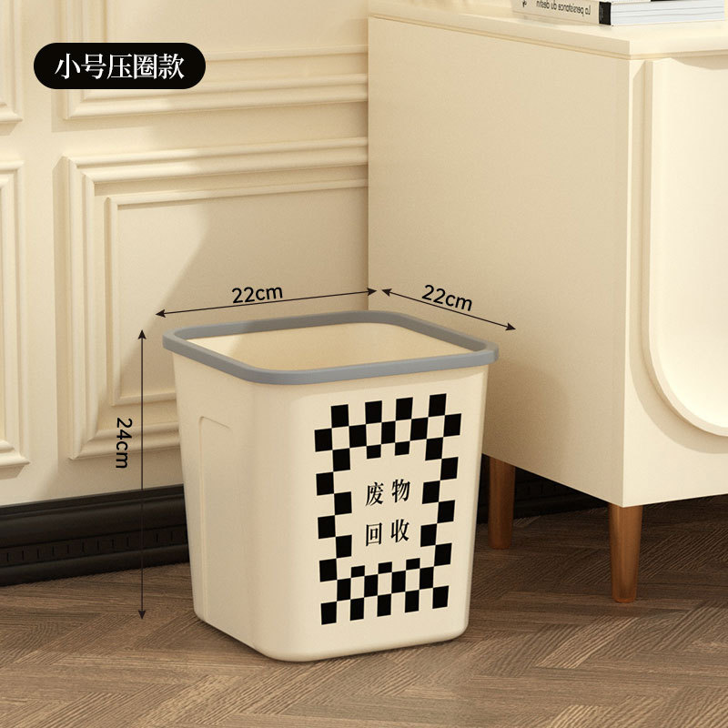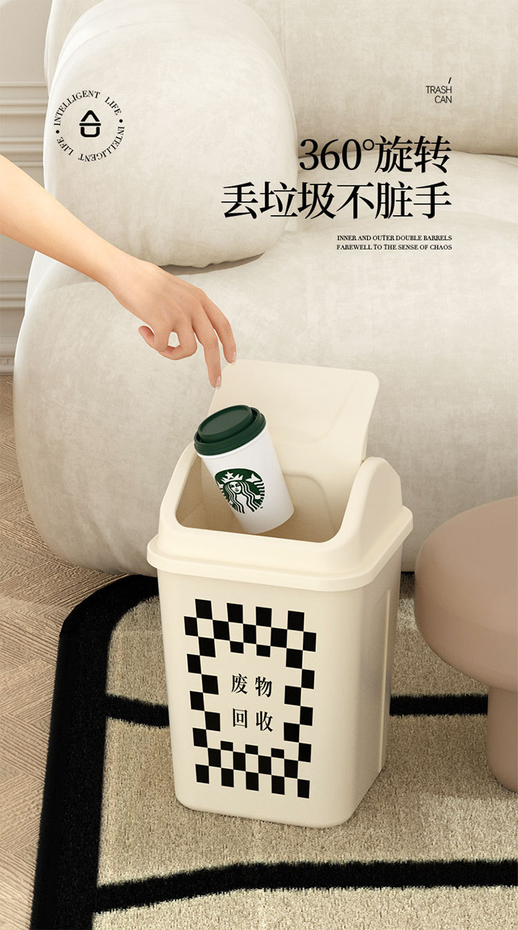 奶油风摇盖式垃圾桶高颜值家用厨房卫生间大容量压圈加厚防水纸篓
