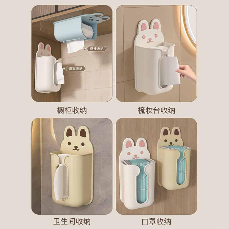 创意卡通纸巾盒免打孔壁挂式抽取式多功能洗脸巾加厚塑料抽纸盒