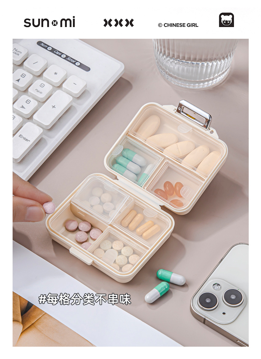 奶油风多巴胺药盒高颜值户外旅行便携药丸分格收纳防潮迷你收纳盒