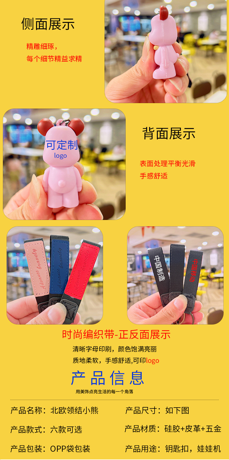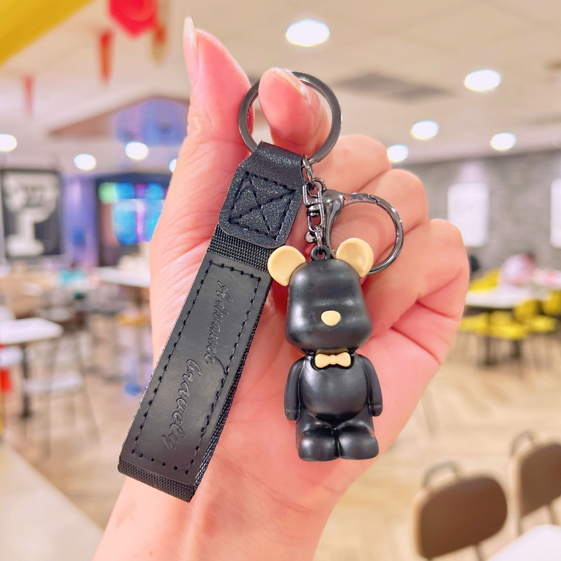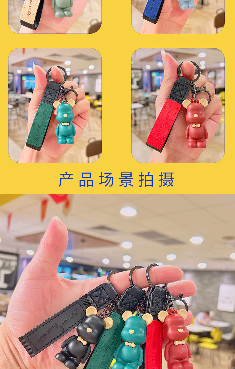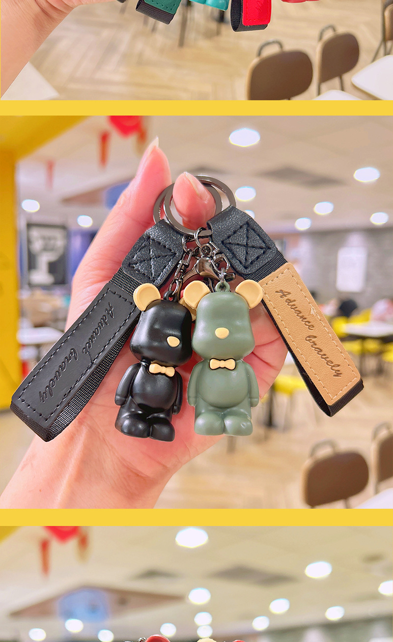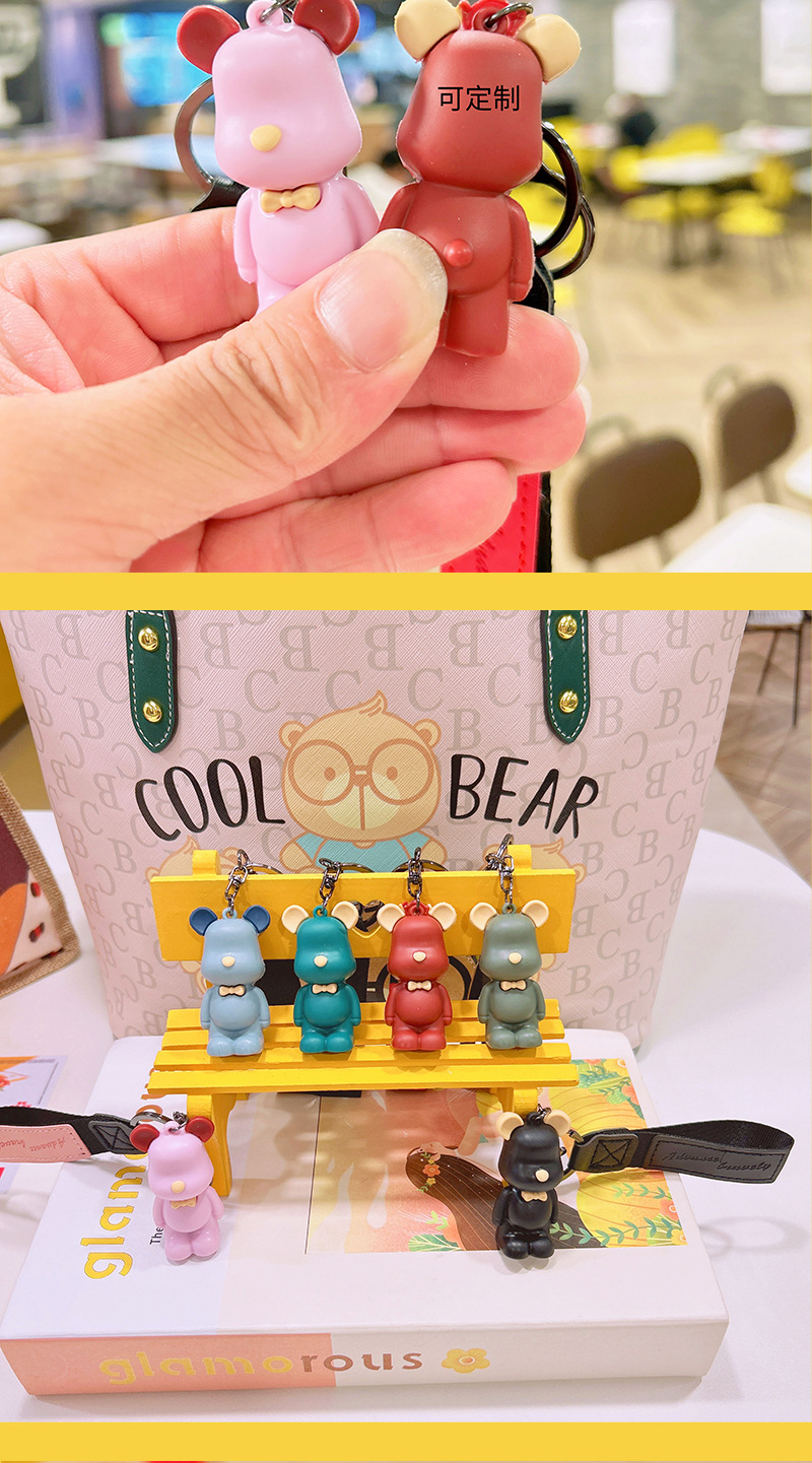 滴胶北欧领结熊钥匙扣创意可爱暴力熊挂件情侣包包钥匙链挂饰批发