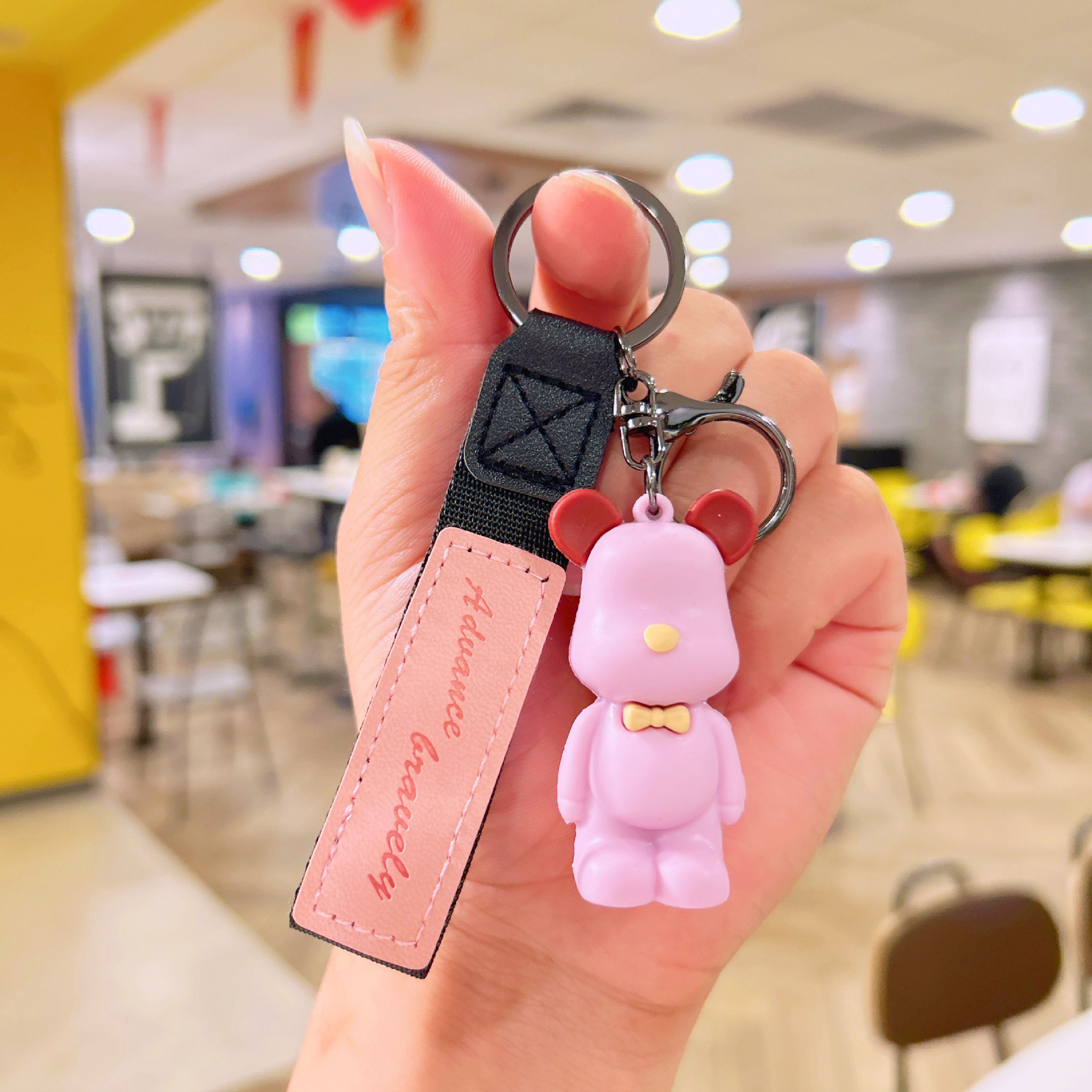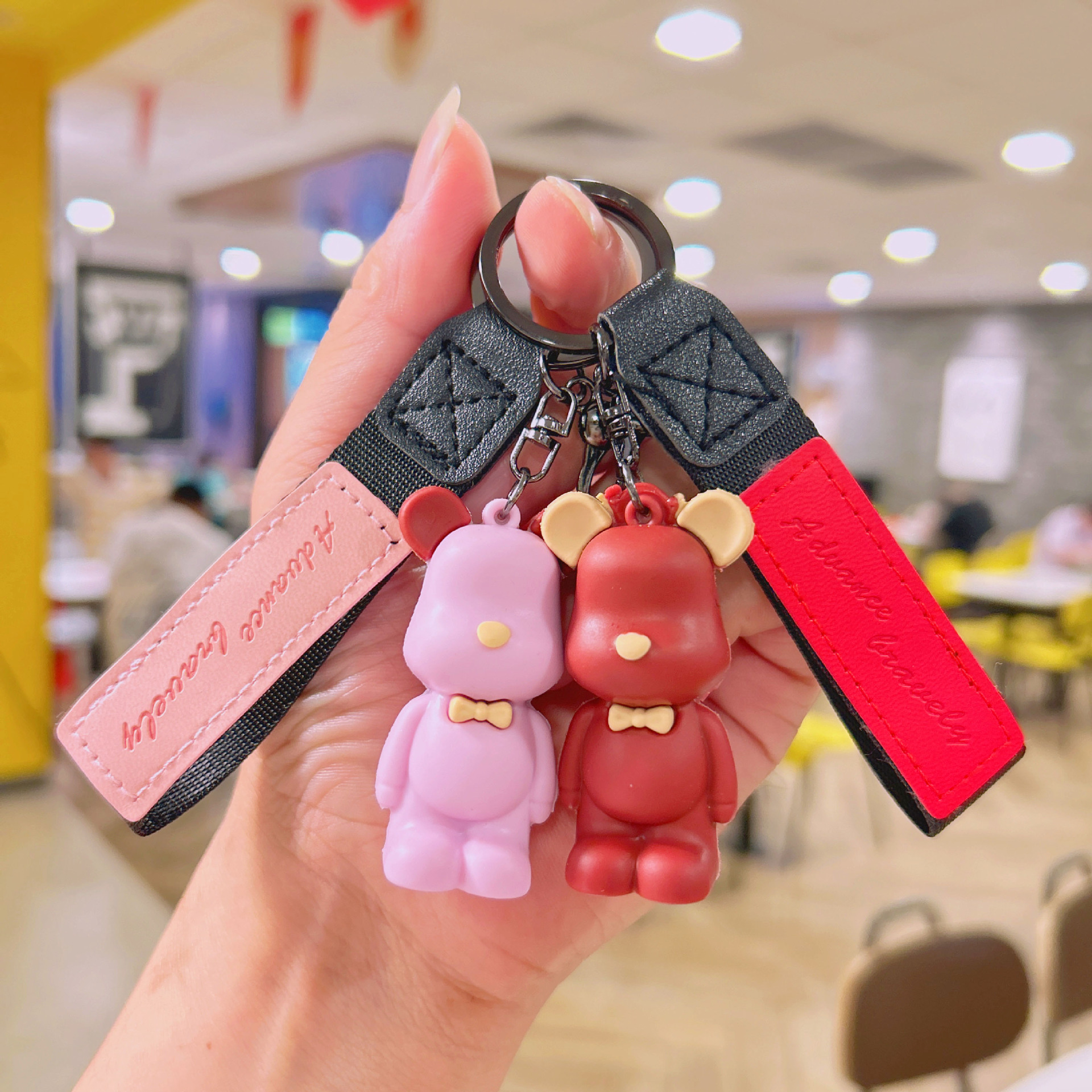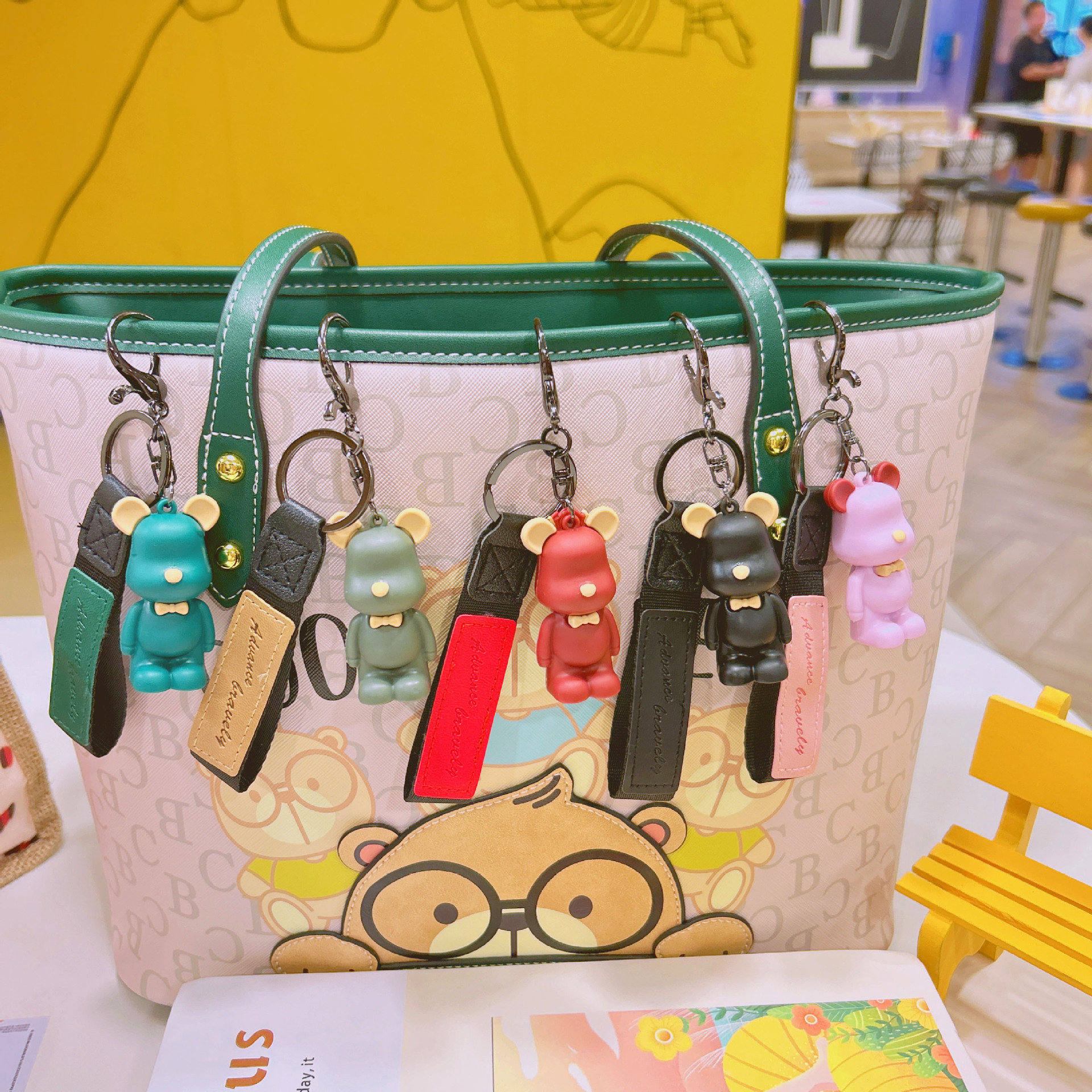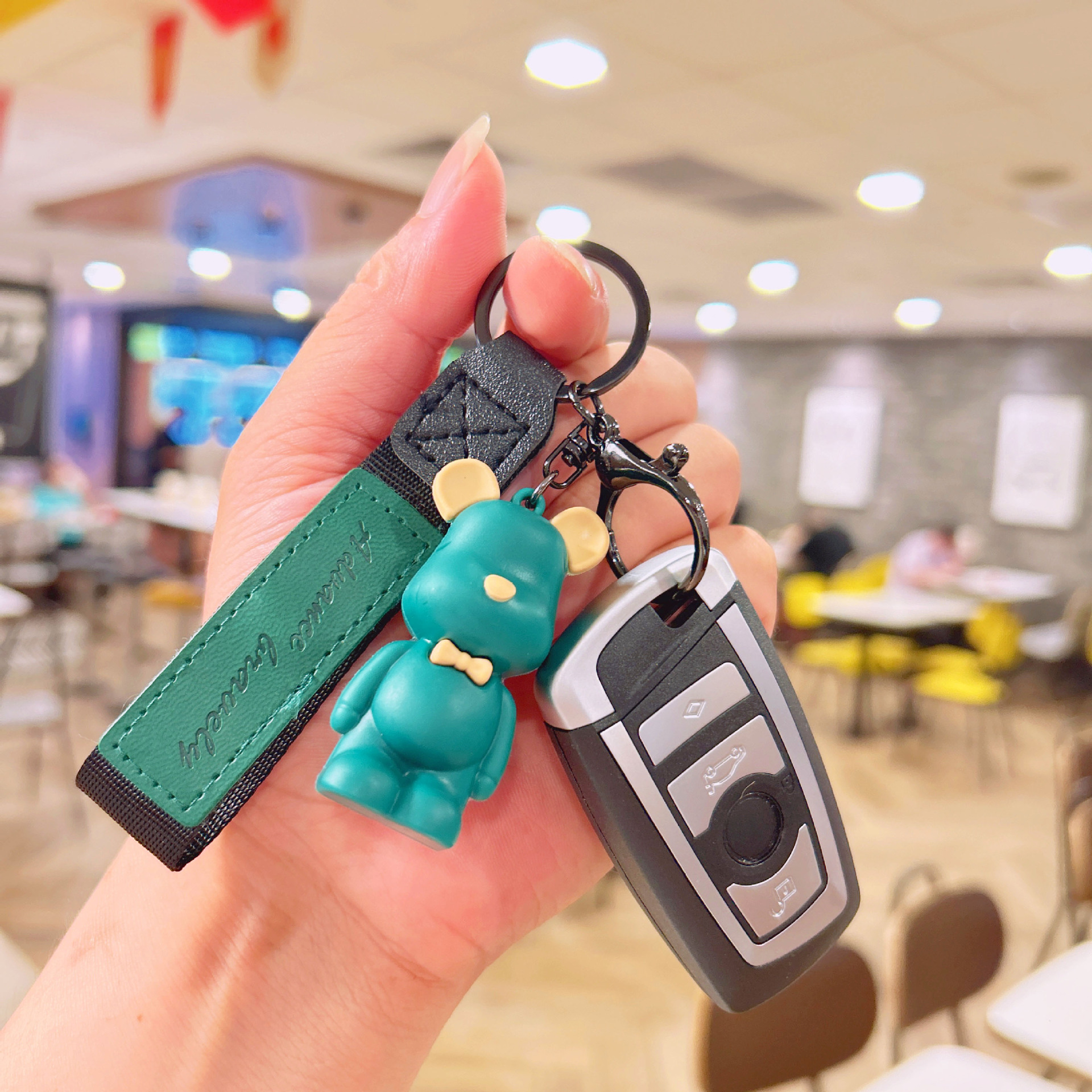 滴胶北欧领结熊钥匙扣创意可爱暴力熊挂件情侣包包钥匙链挂饰批发