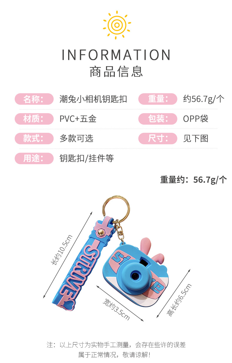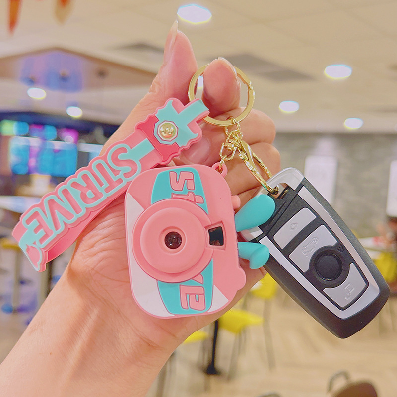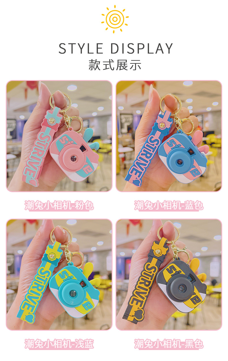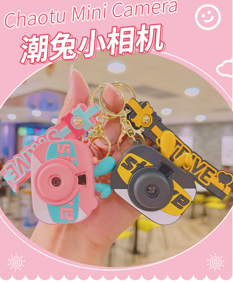 新款潮兔小相机发光钥匙扣挂饰小公仔玩偶配饰钥匙链挂件礼品批发