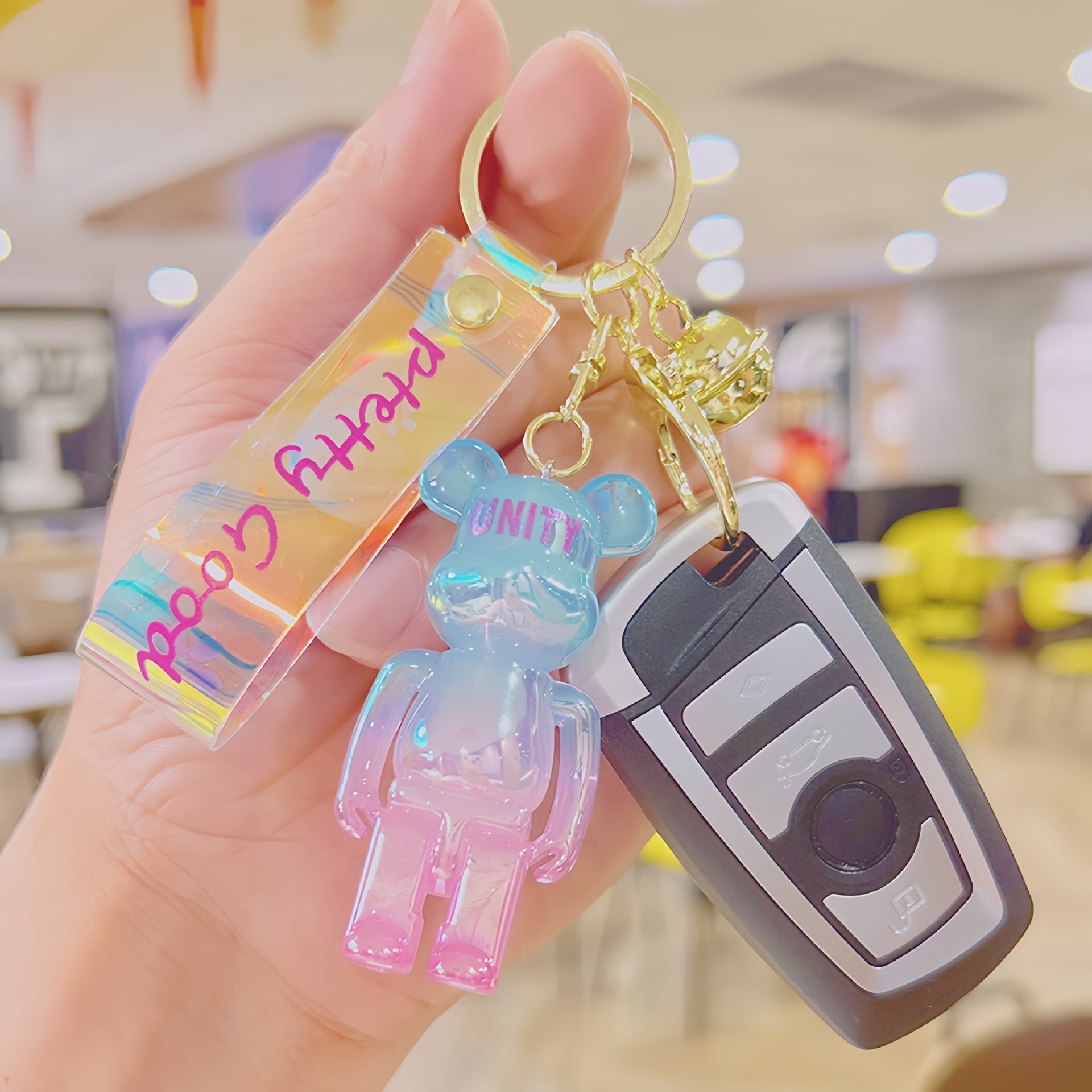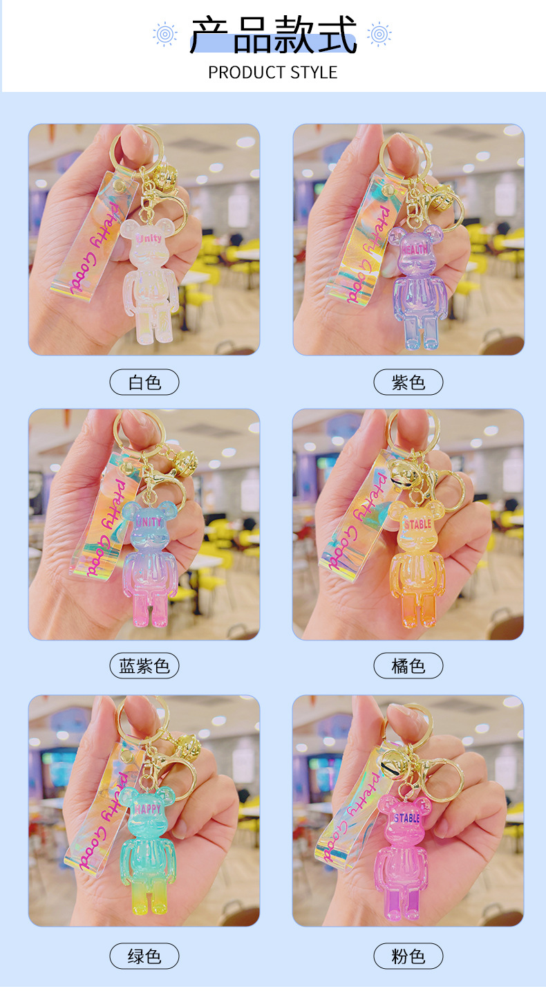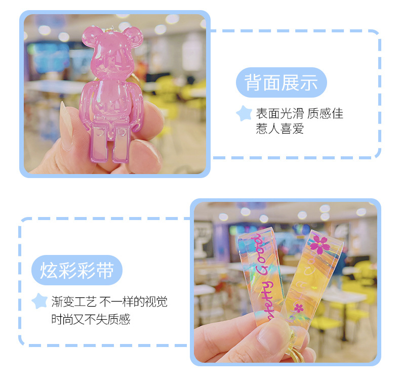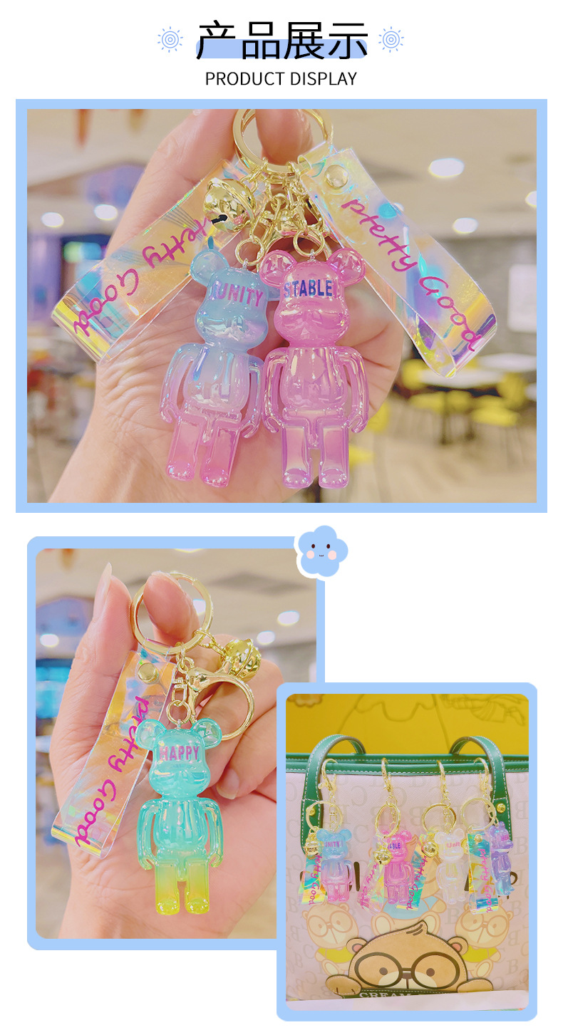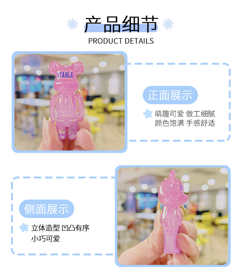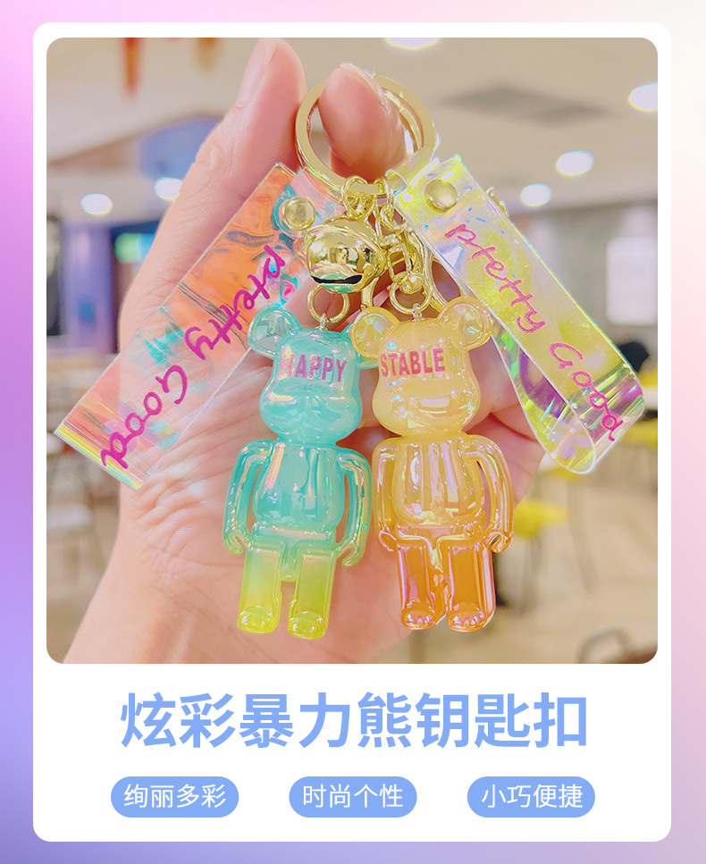 创意卡通夜光透明暴力熊钥匙扣情侣可爱时尚包包公仔钥匙链精致挂