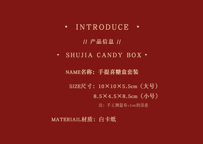 | small size 8.4*8.4*4.5 (can contain 6 candies)(小号8.4*8.4*4.5(可装6颗糖)) | USD $0.09 | 98830 piece available |