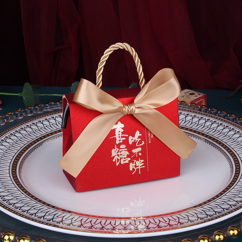 结婚喜糖盒新款糖盒中式手提喜糖袋高级感婚礼糖果包装空盒子
