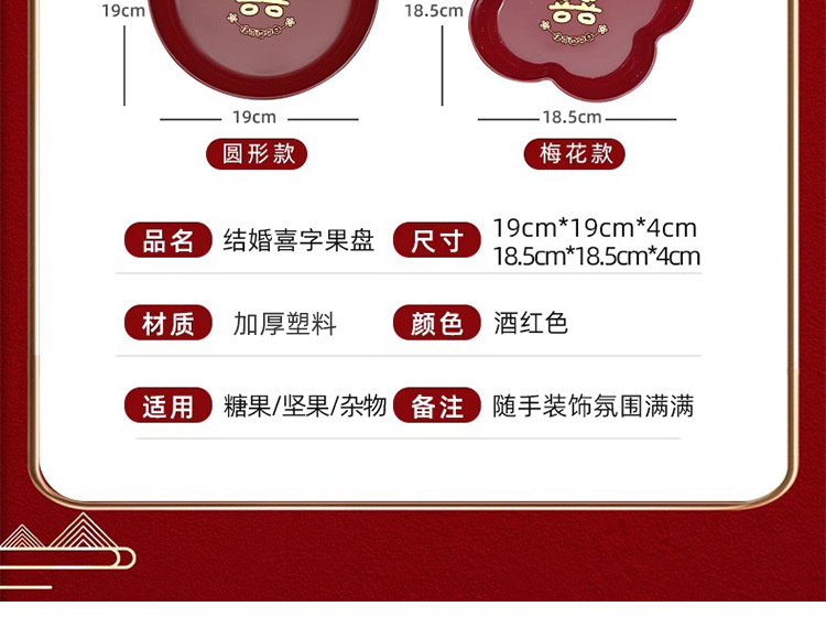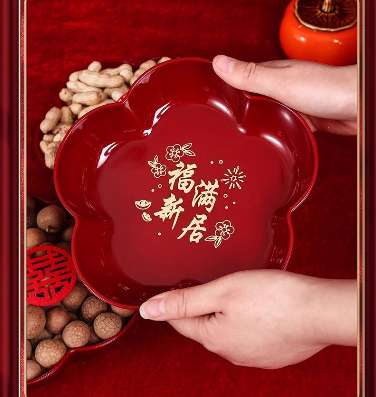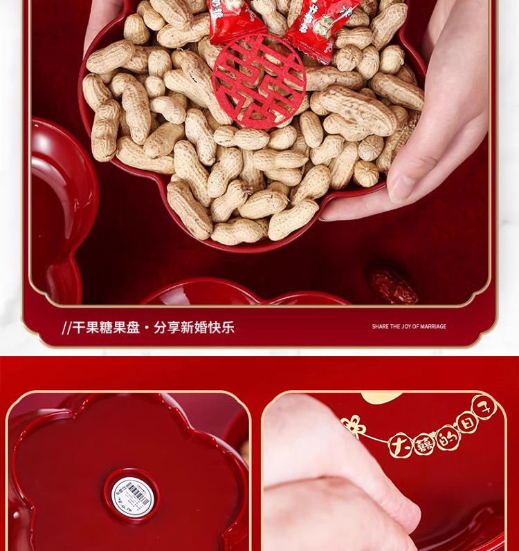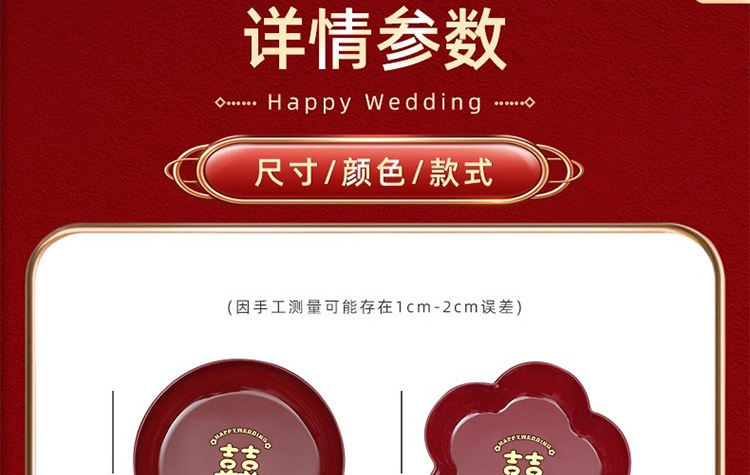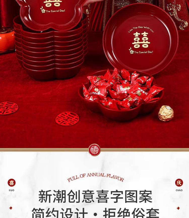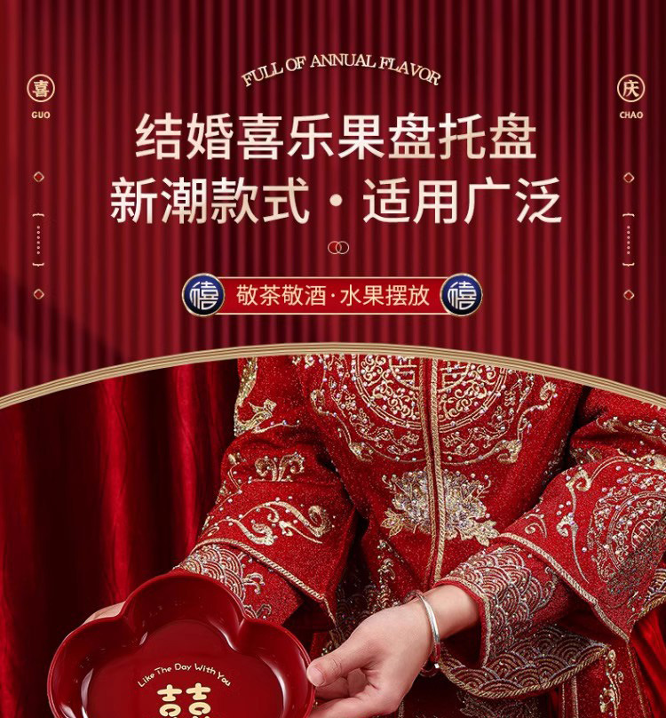 结婚红色网红喜糖盘订婚摆件喜盘子干果盘婚庆用品大全乔迁果盘