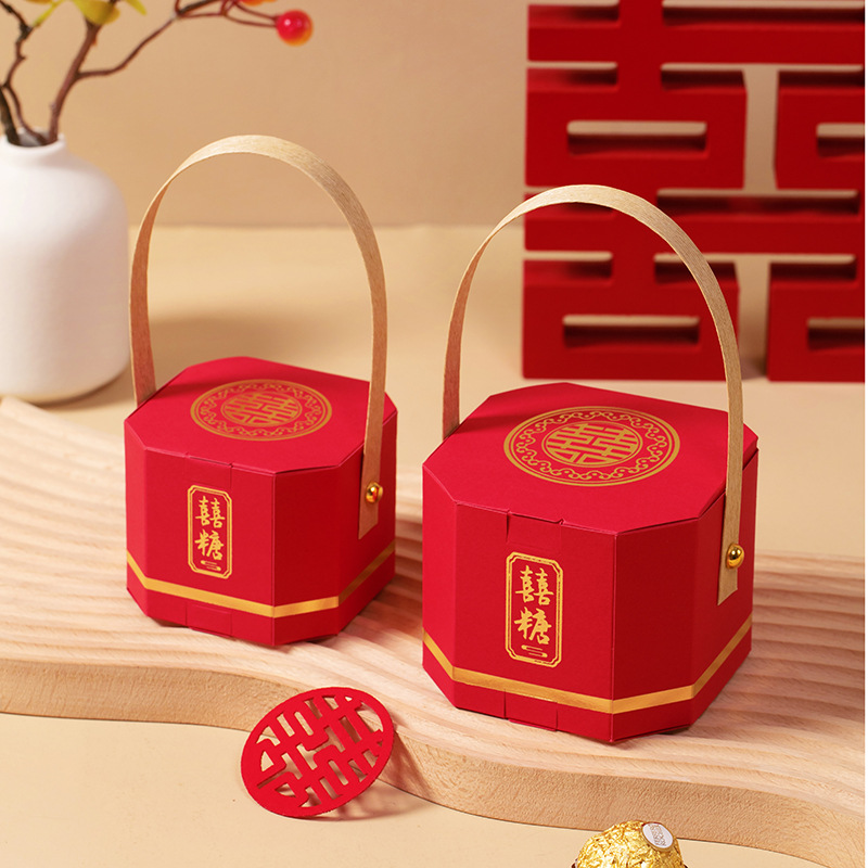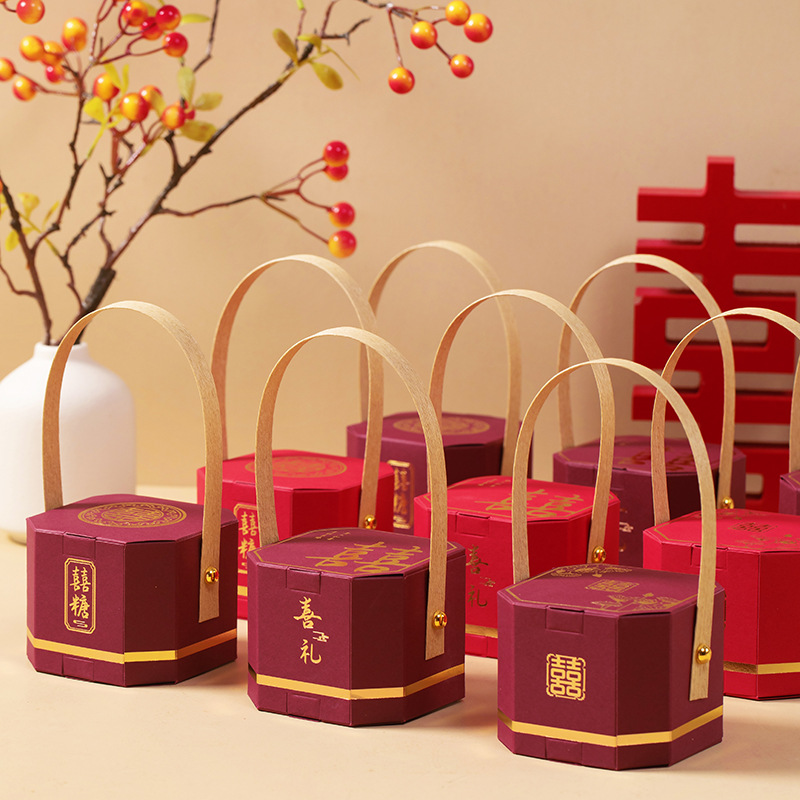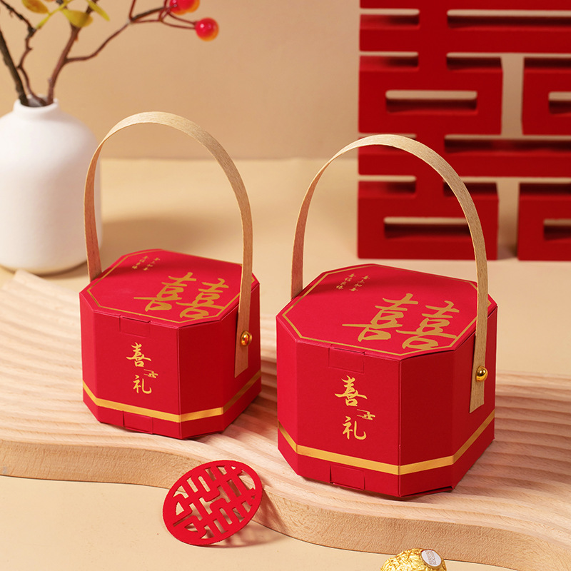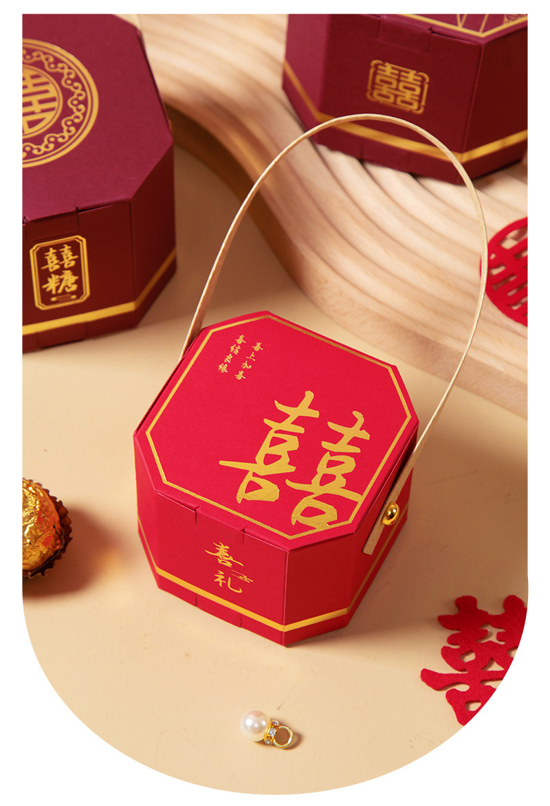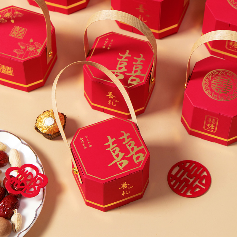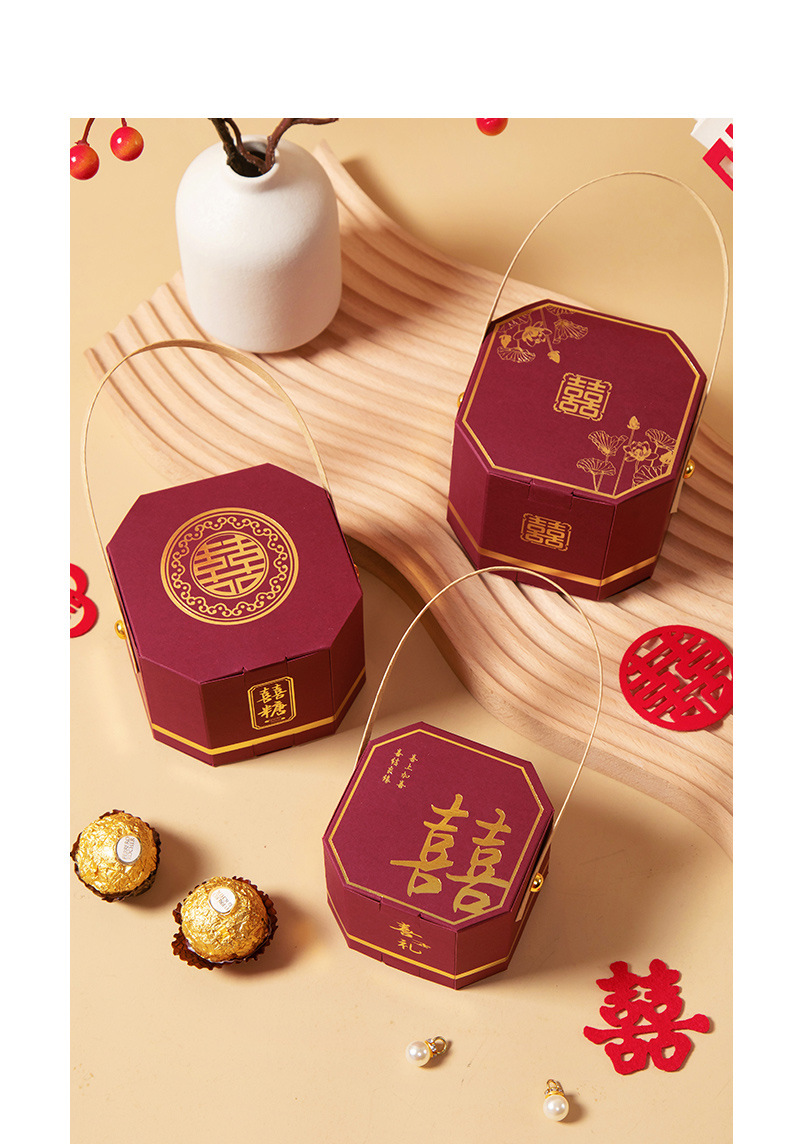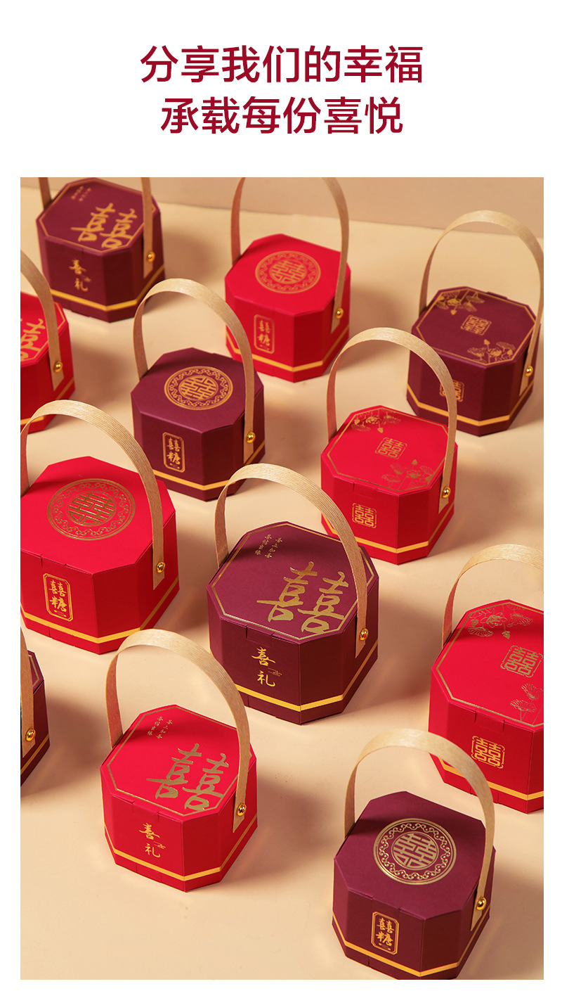 结婚用喜糖盒手提创意喜糖礼盒中式婚礼专用喜糖包装袋八角糖盒