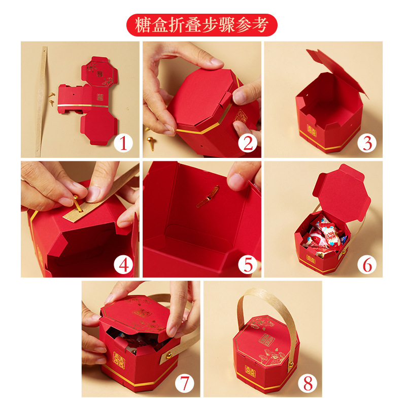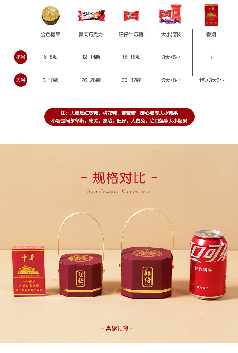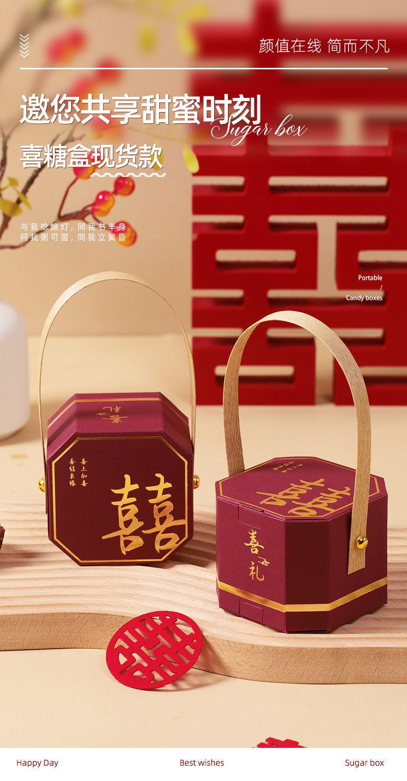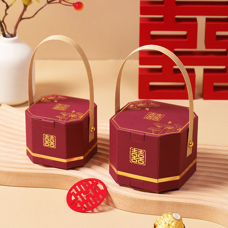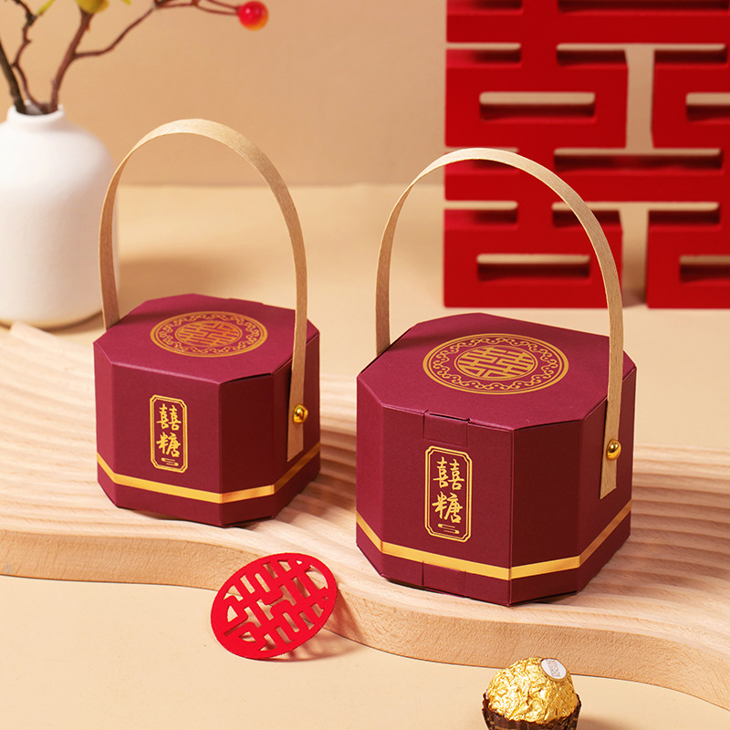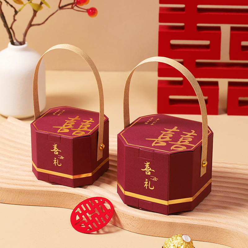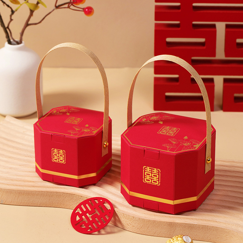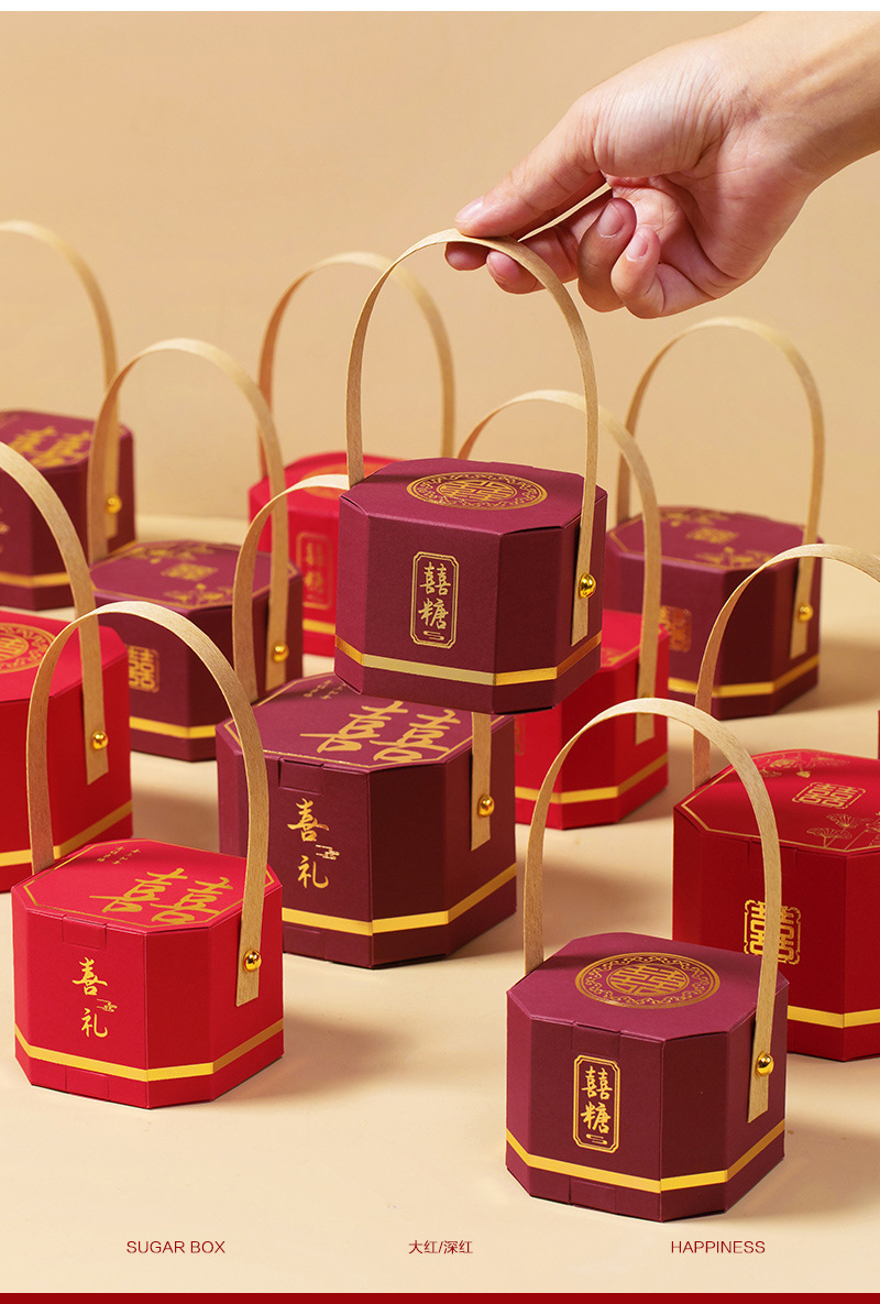 结婚用喜糖盒手提创意喜糖礼盒中式婚礼专用喜糖包装袋八角糖盒
