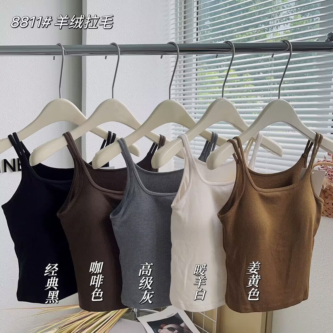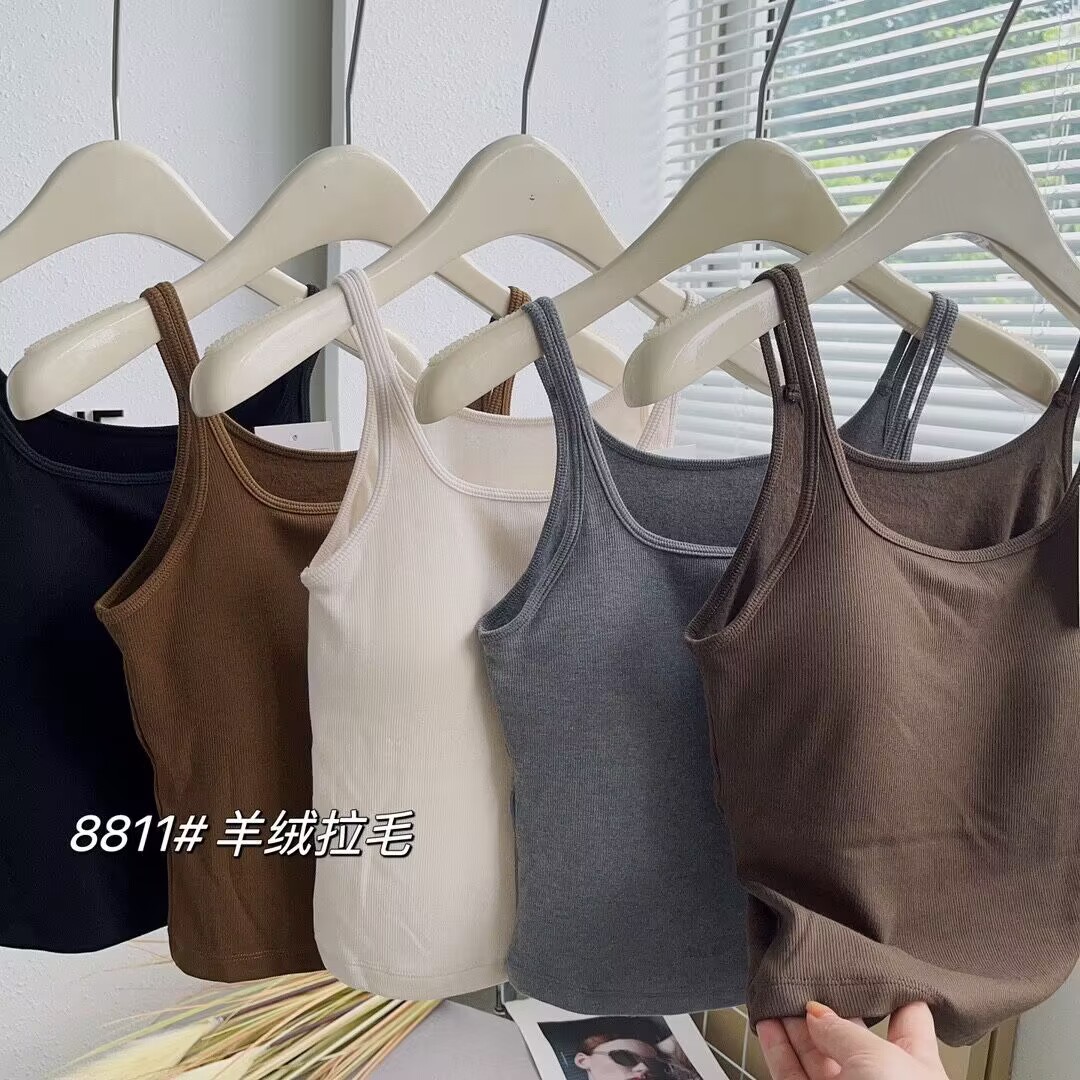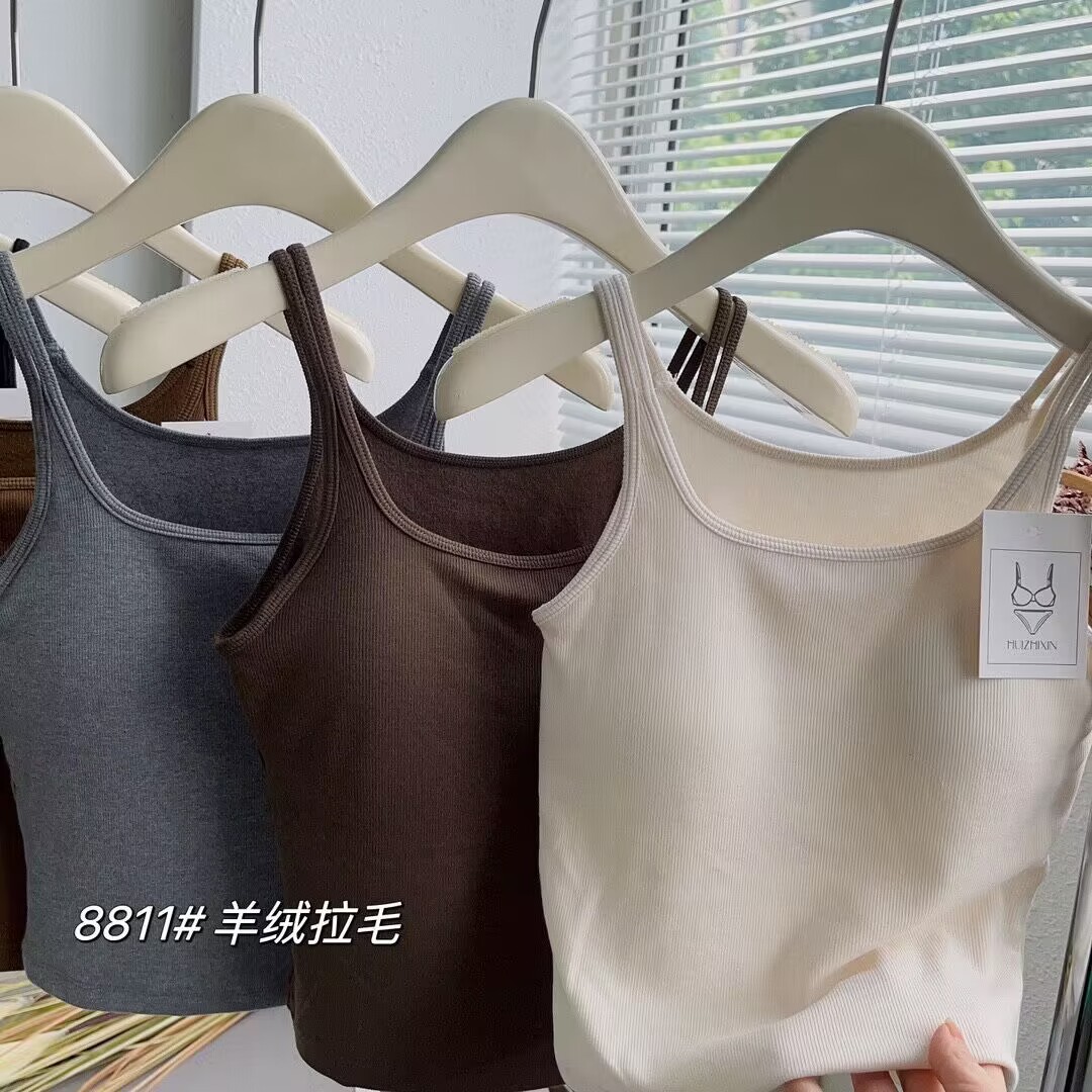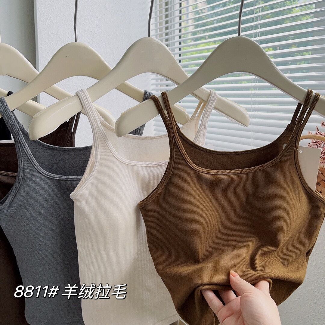 秋季女装吊带背心带胸垫亲肤保暖吊带背心可外穿时尚圆领纯色吊带
